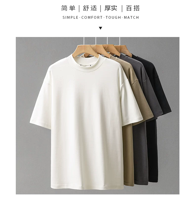 - Áo thun cổ tròn kiểu Mỹ dành cho nam, áo thun cổ tròn cao cấp chống nhăn mùa hè tay ngắn nặng 300G, nửa tay màu trắng tinh khiết.