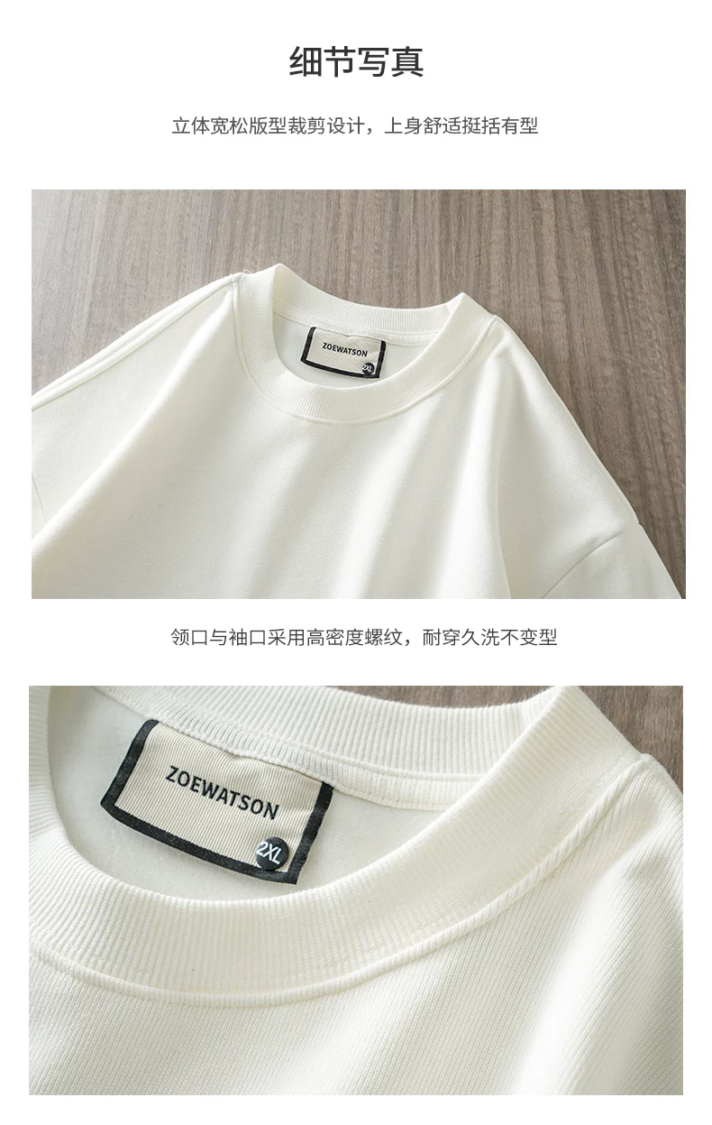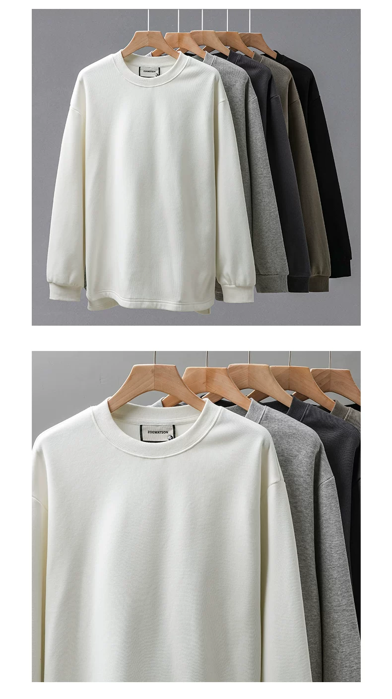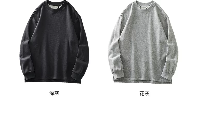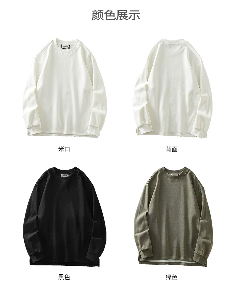 Áo thun cổ tròn lót lông cừu dành cho nam, áo lót màu trắng dày dặn mùa đông, dáng rộng, áo thun dài tay nặng 400G.