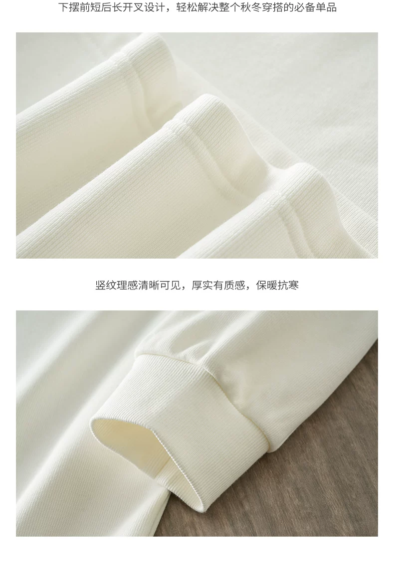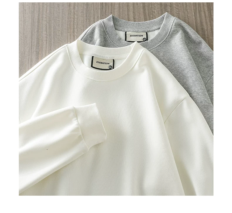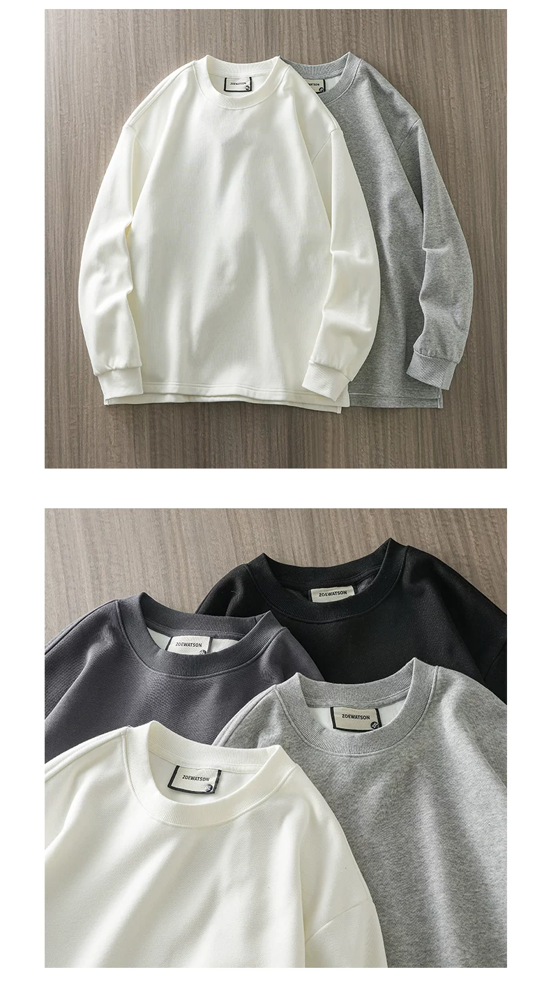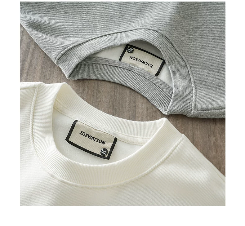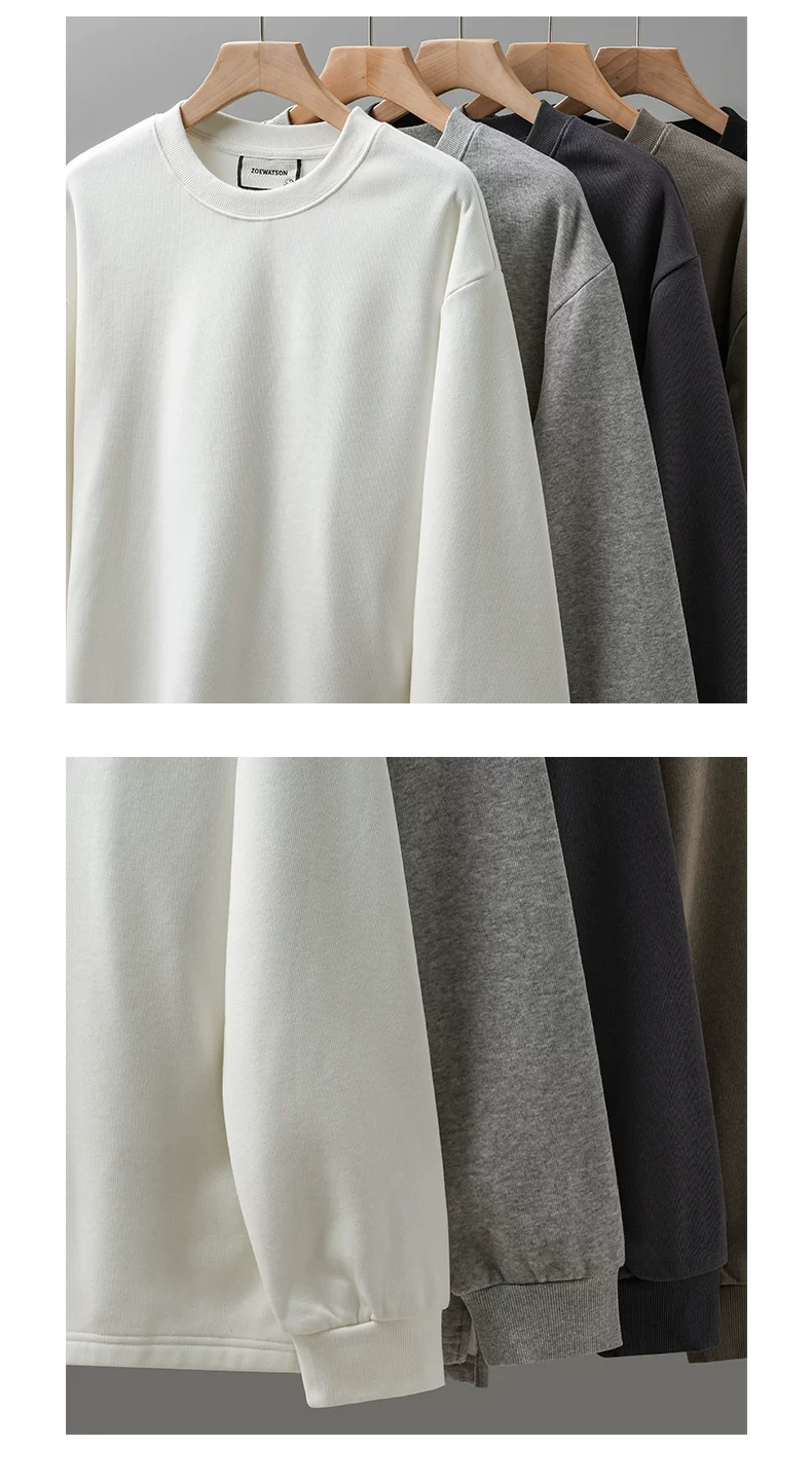 Áo thun cổ tròn lót lông cừu dành cho nam, áo lót màu trắng dày dặn mùa đông, dáng rộng, áo thun dài tay nặng 400G.