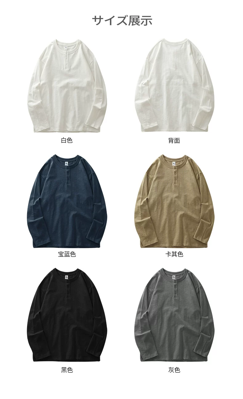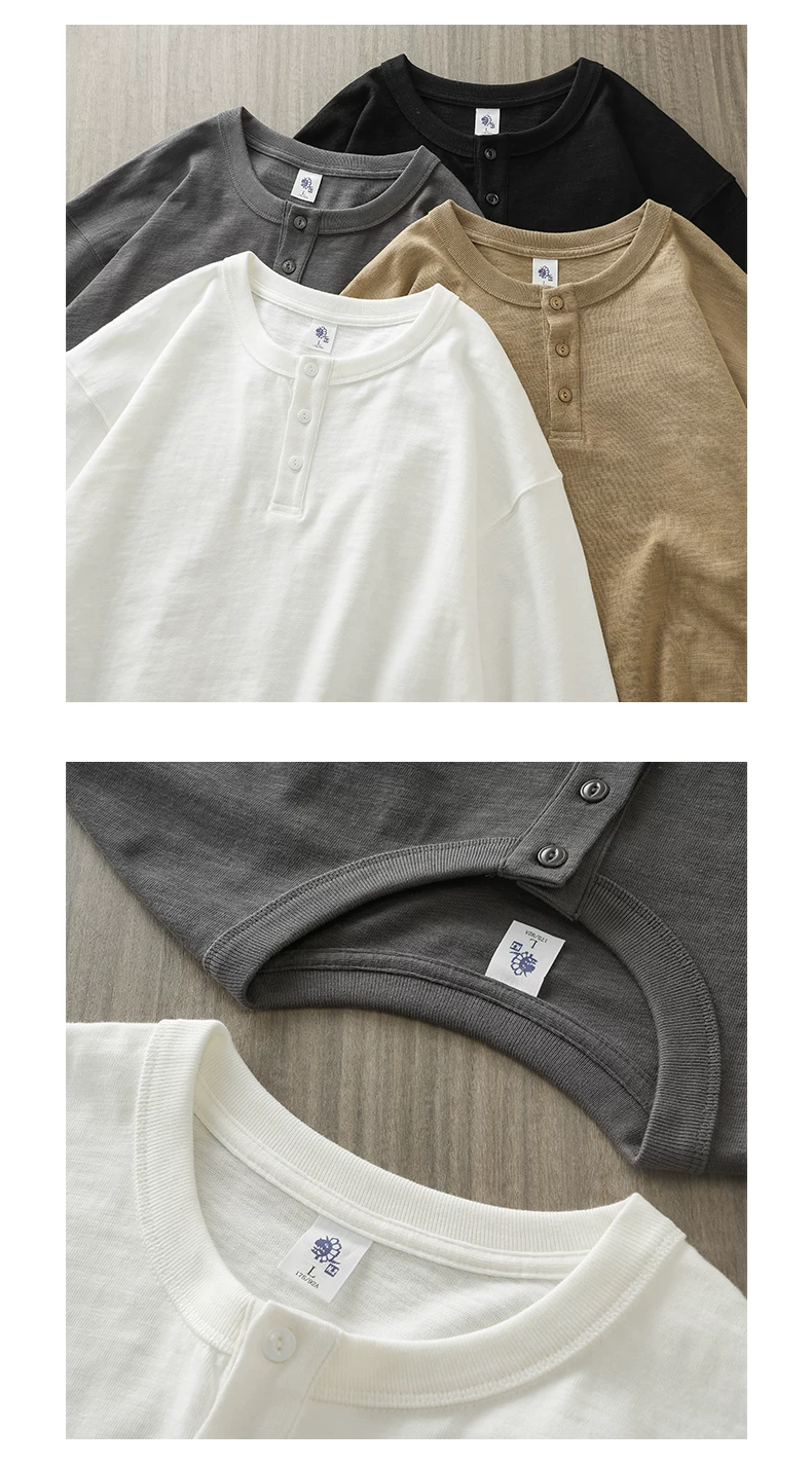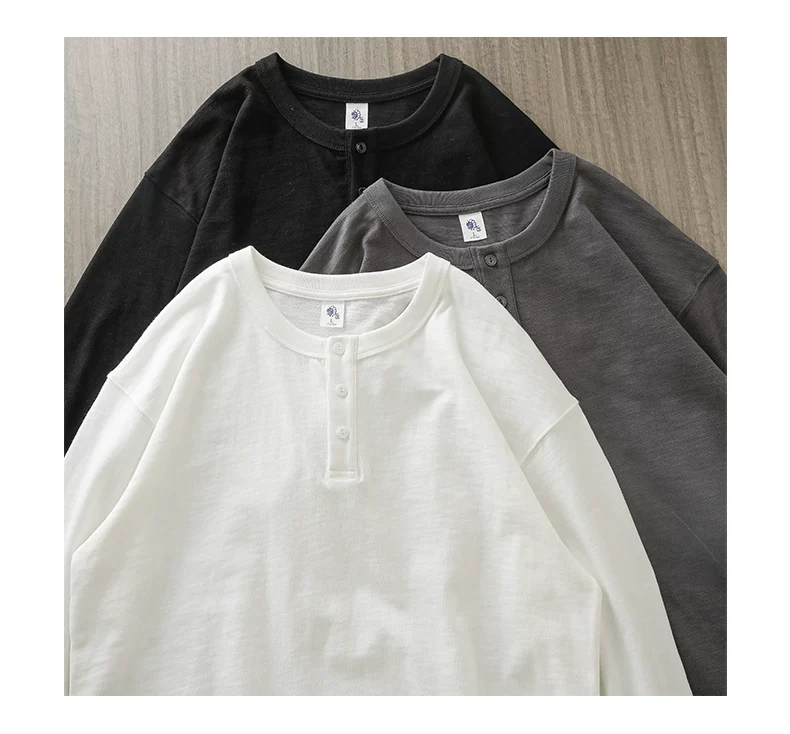 - Áo thun cổ trụ Henry 400g dành cho nam, tay dài, kiểu dáng thu đông Mỹ, chất liệu cotton nguyên chất, áo thun trơn màu trắng ba kim.