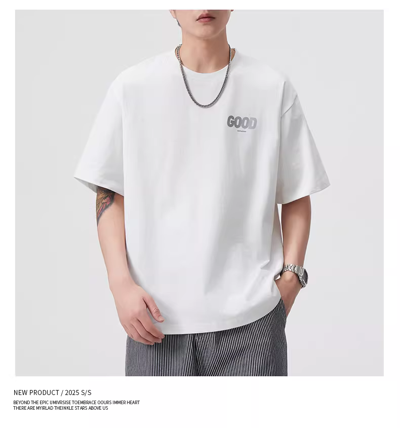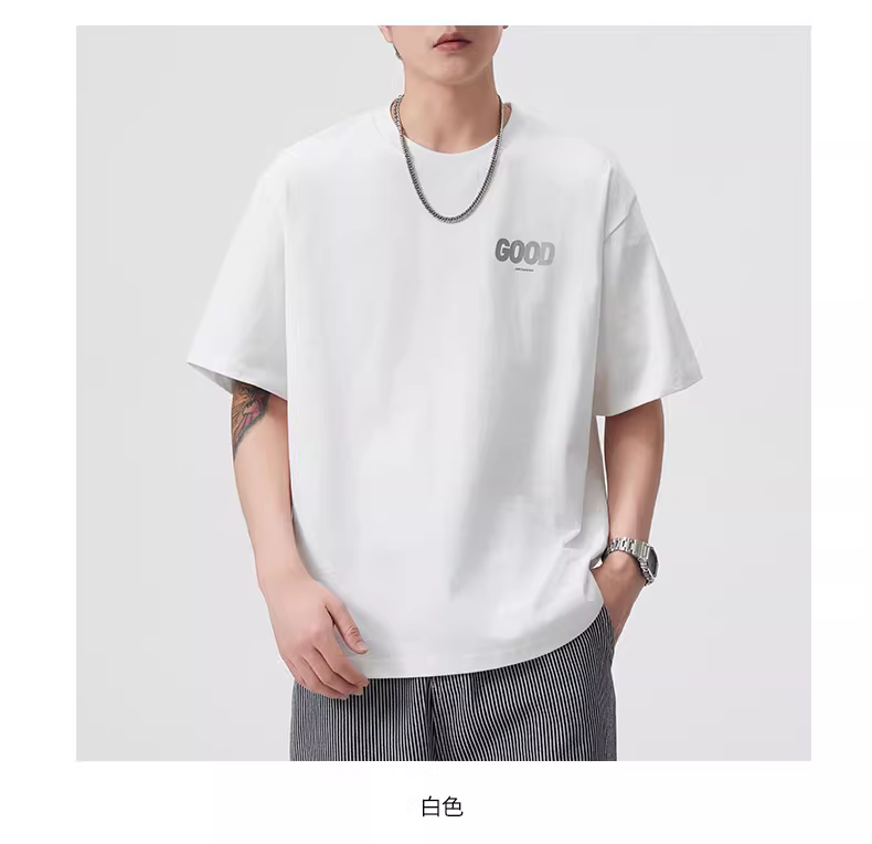 - Áo thun cotton 100% in họa tiết, chất liệu dày dặn 280G, tay ngắn, kiểu dáng rộng, cổ tròn, in chữ, phong cách Mỹ, dành cho nam, mùa hè, mang lại cảm giác mát mẻ.