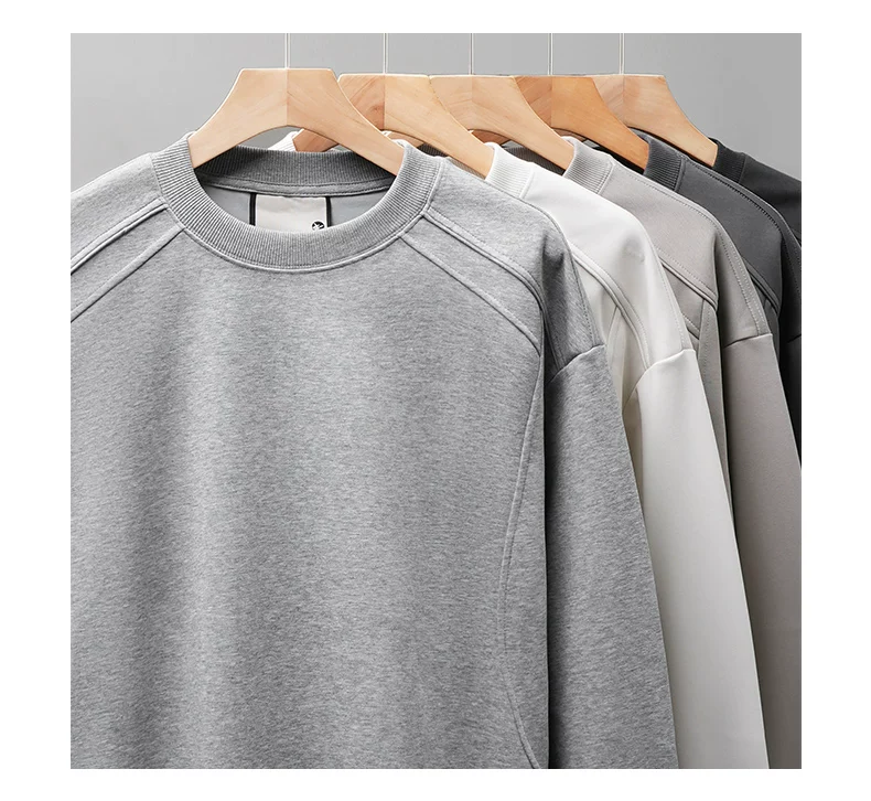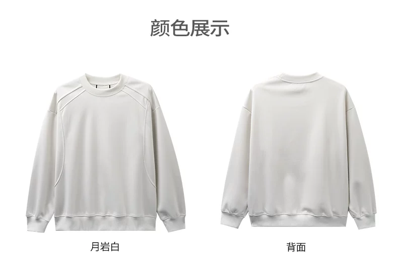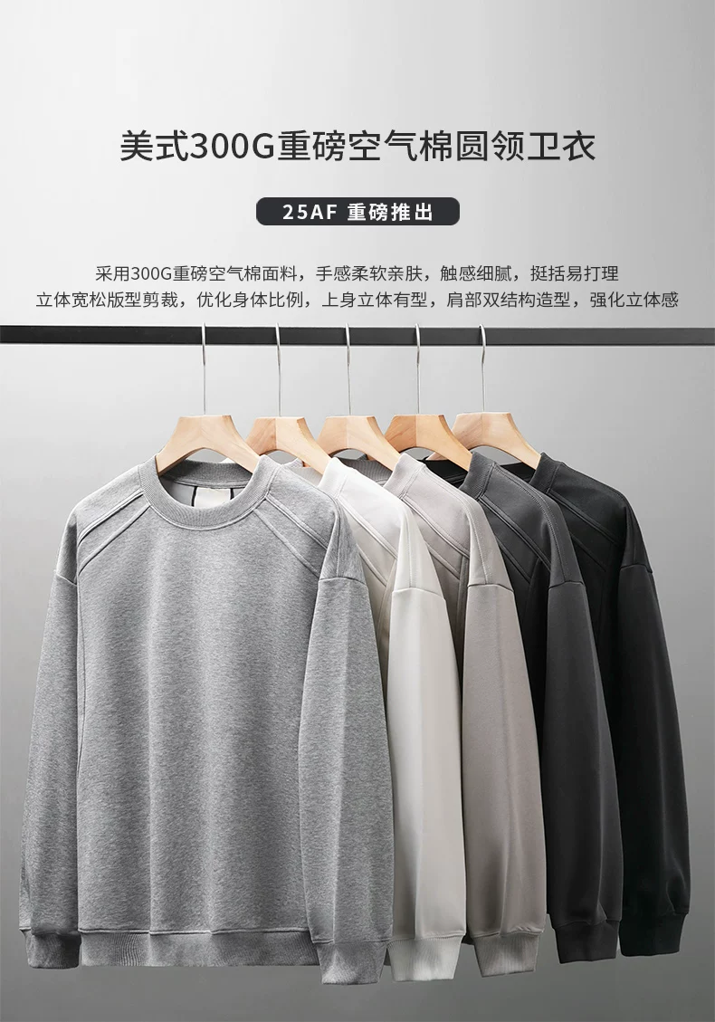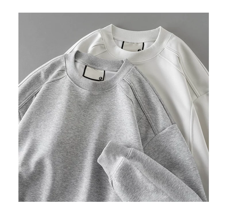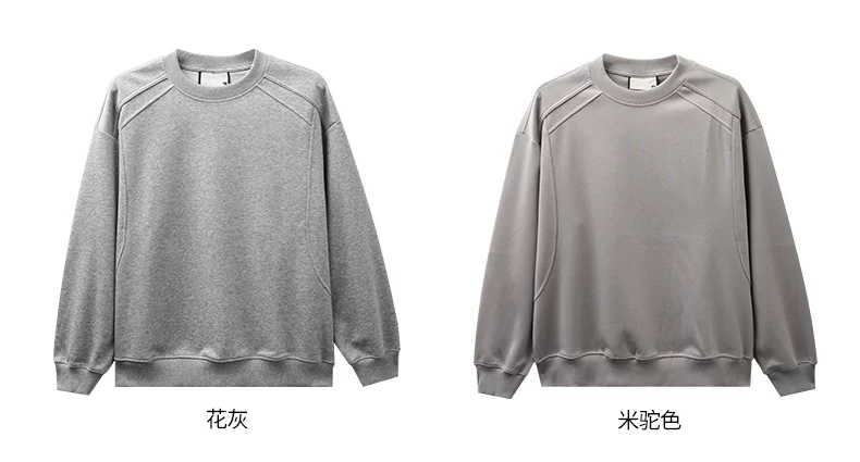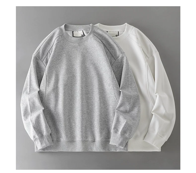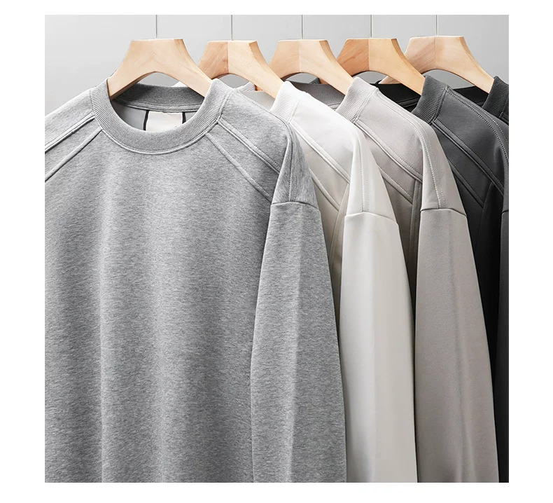 - Áo thun cotton hạng nặng OMZM300G dành cho nam, áo sơ mi dài tay chắp vá phong cách Mỹ mùa thu, áo sơ mi mùa thu cổ tròn lớp trong