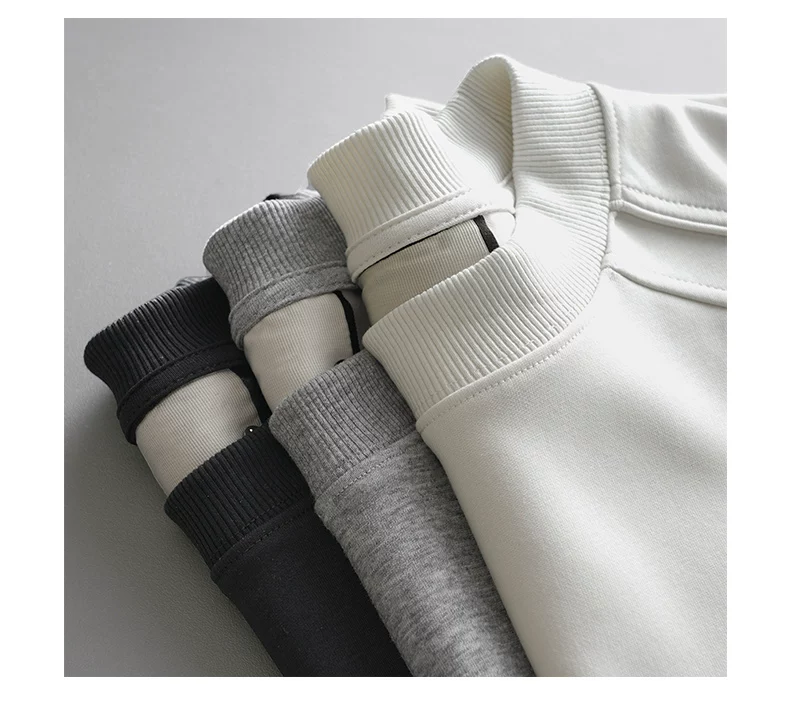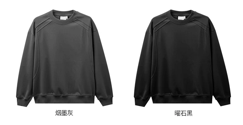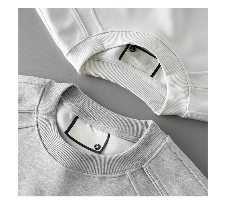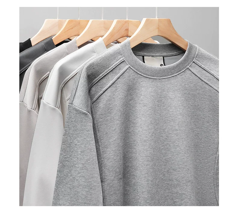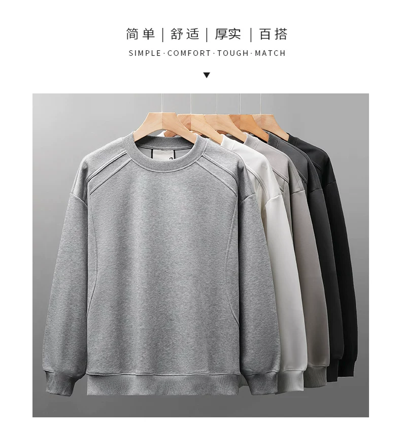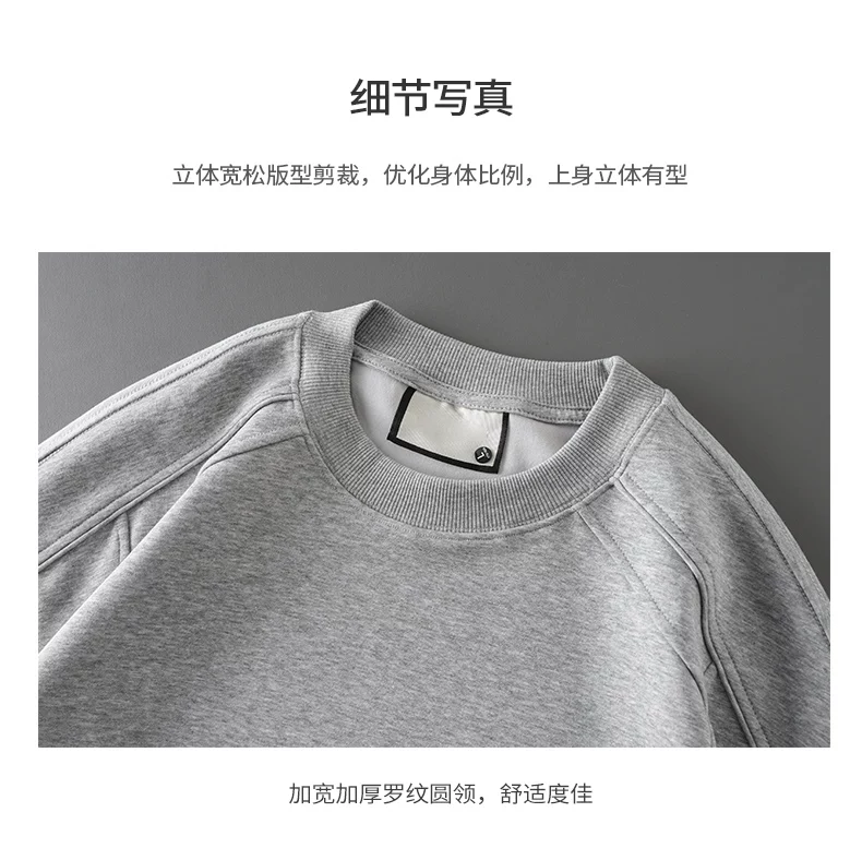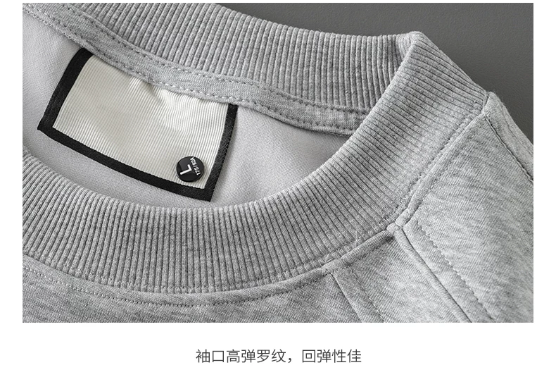 - Áo thun cotton hạng nặng OMZM300G dành cho nam, áo sơ mi dài tay chắp vá phong cách Mỹ mùa thu, áo sơ mi mùa thu cổ tròn lớp trong