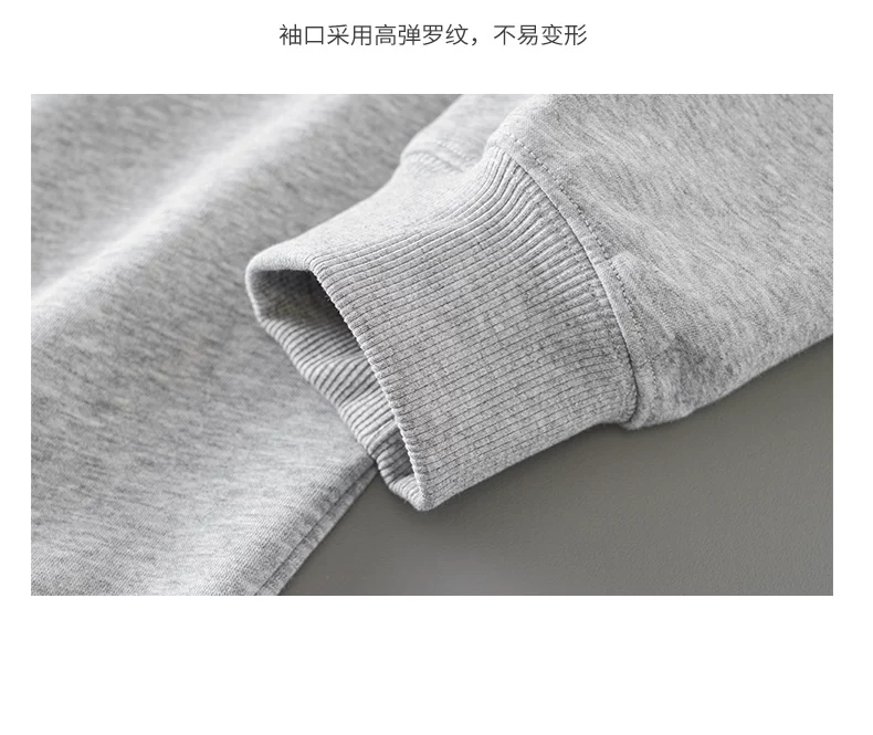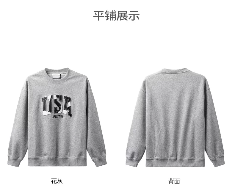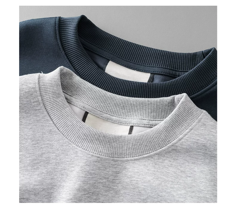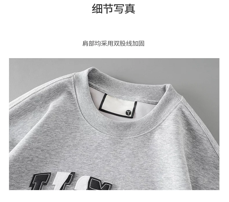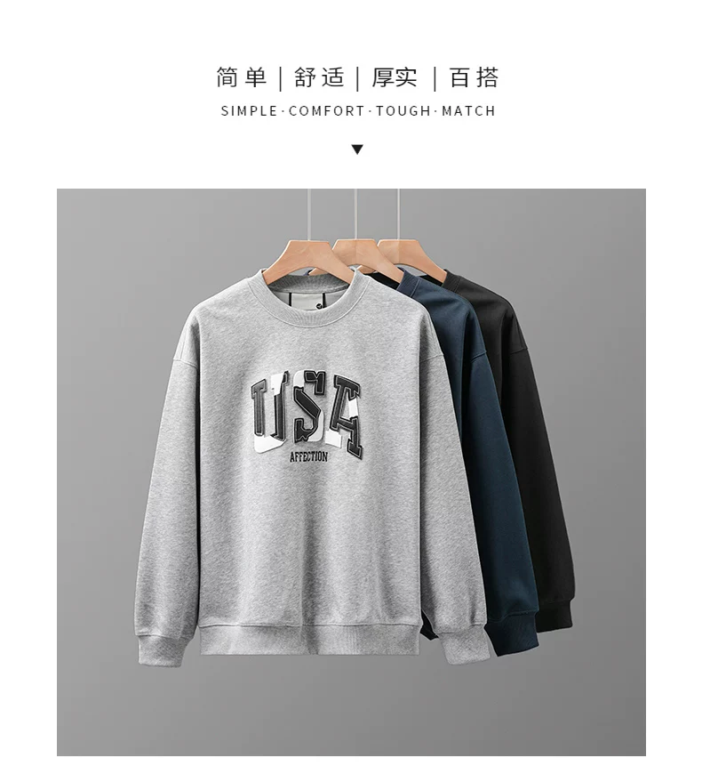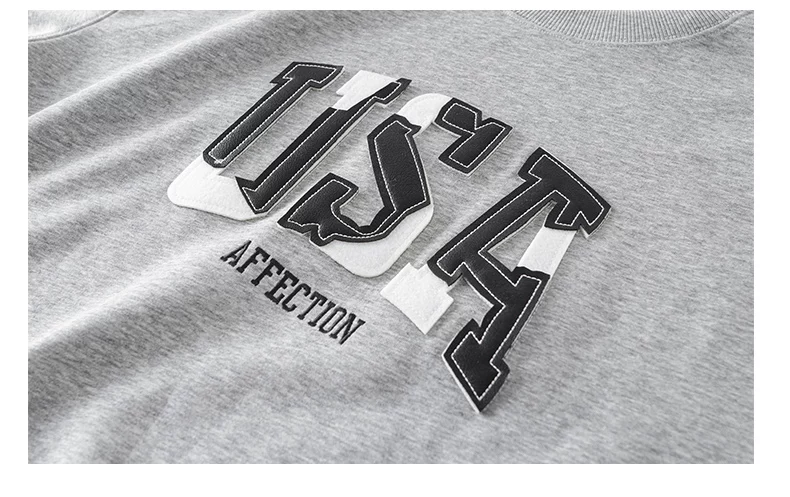 - Áo thun cotton hạng nặng OMZM300G dành cho nam, áo thun dài tay cổ tròn thêu phong cách Mỹ mùa thu kiểu dáng rộng vai