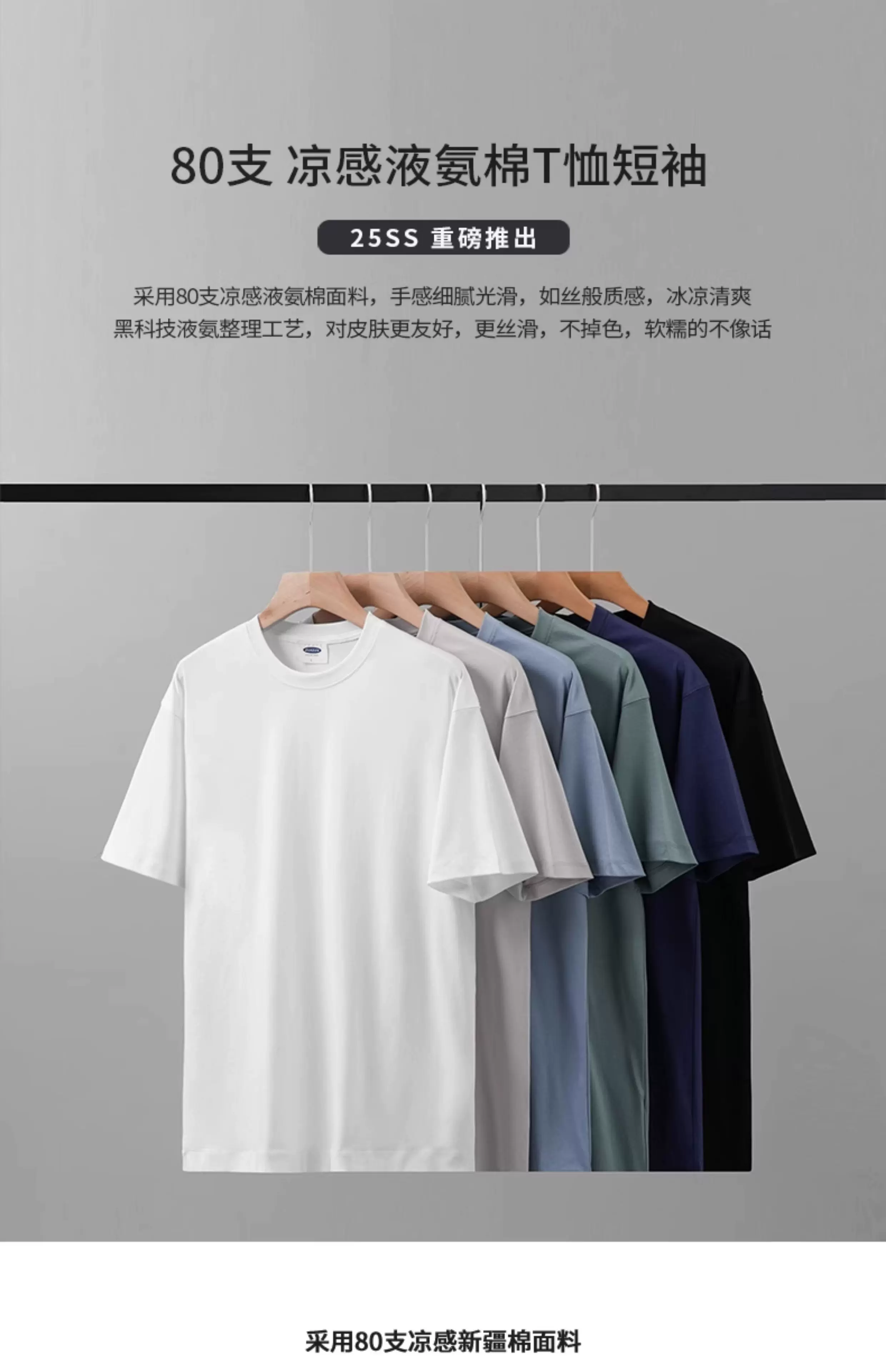 Áo thun cotton làm mềm bằng amoniac lỏng OMZM80 dành cho nam, tay ngắn, lụa băng mùa hè, mát mẻ và nhanh khô, nửa tay co giãn thể thao
