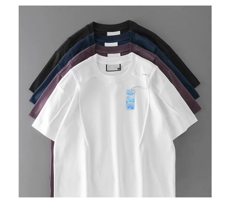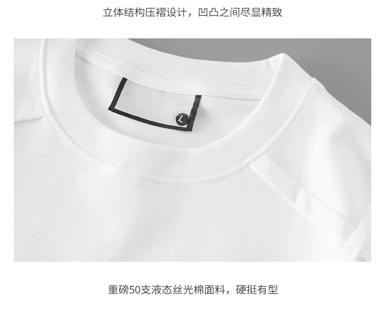 Áo thun cotton mercerized chất liệu lỏng 50 chiếc dành cho nam, tay ngắn, thiết kế mùa hè kiểu Mỹ, chất liệu mát lạnh, tay lửng màu trắng tinh khiết, kiểu dáng regular shoulder.