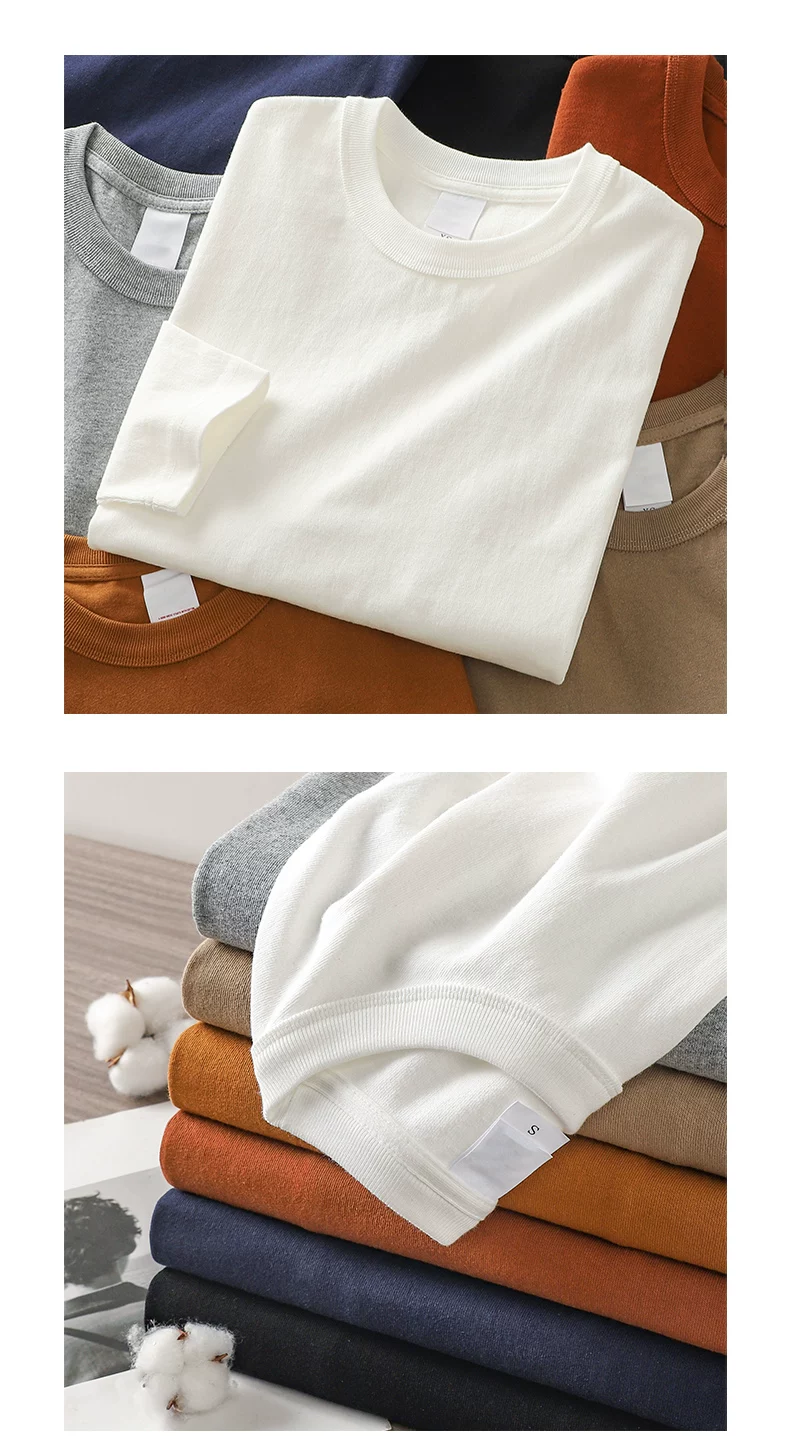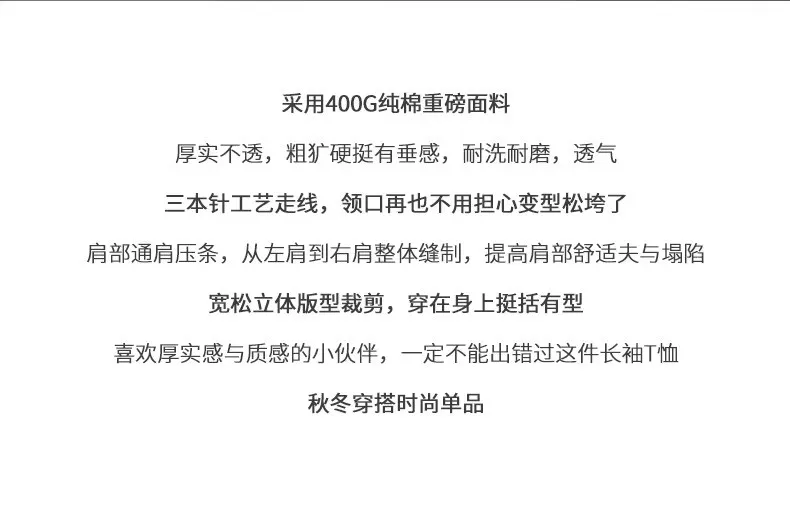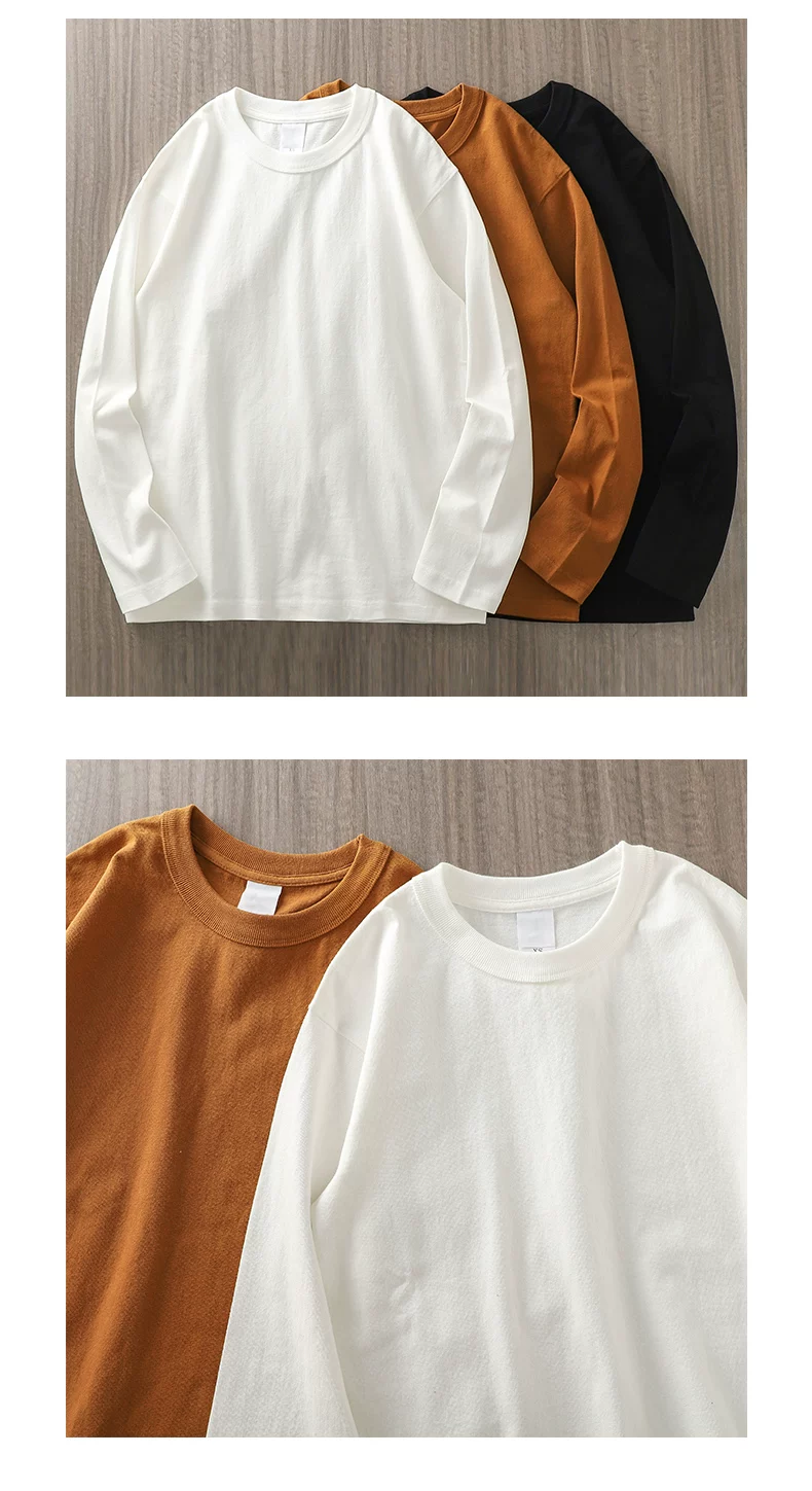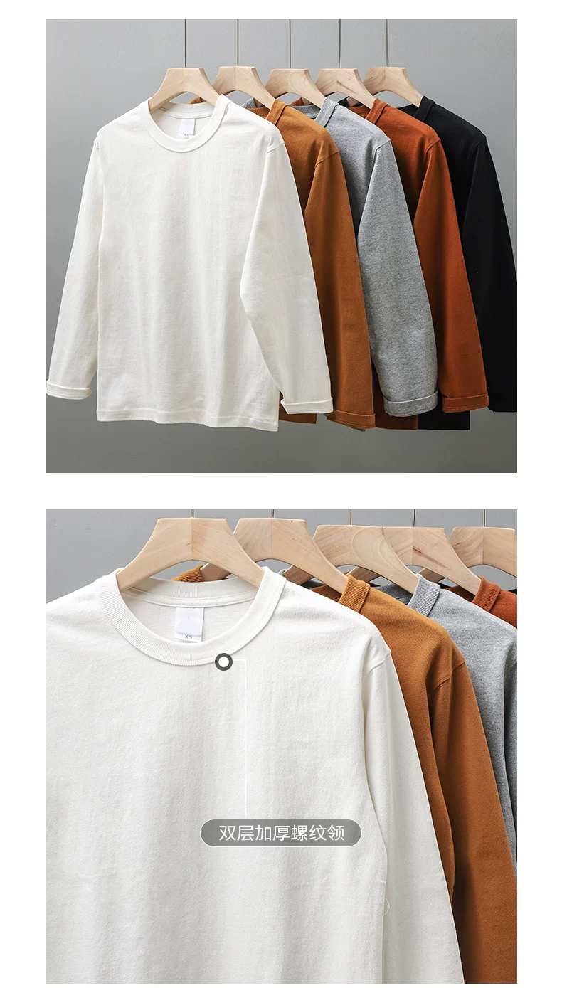 - Áo thun dài tay ba kim 400G chất liệu cotton nguyên chất dành cho nam, áo sơ mi trắng cao cấp mùa thu, áo sweatshirt cổ tròn rộng rãi.