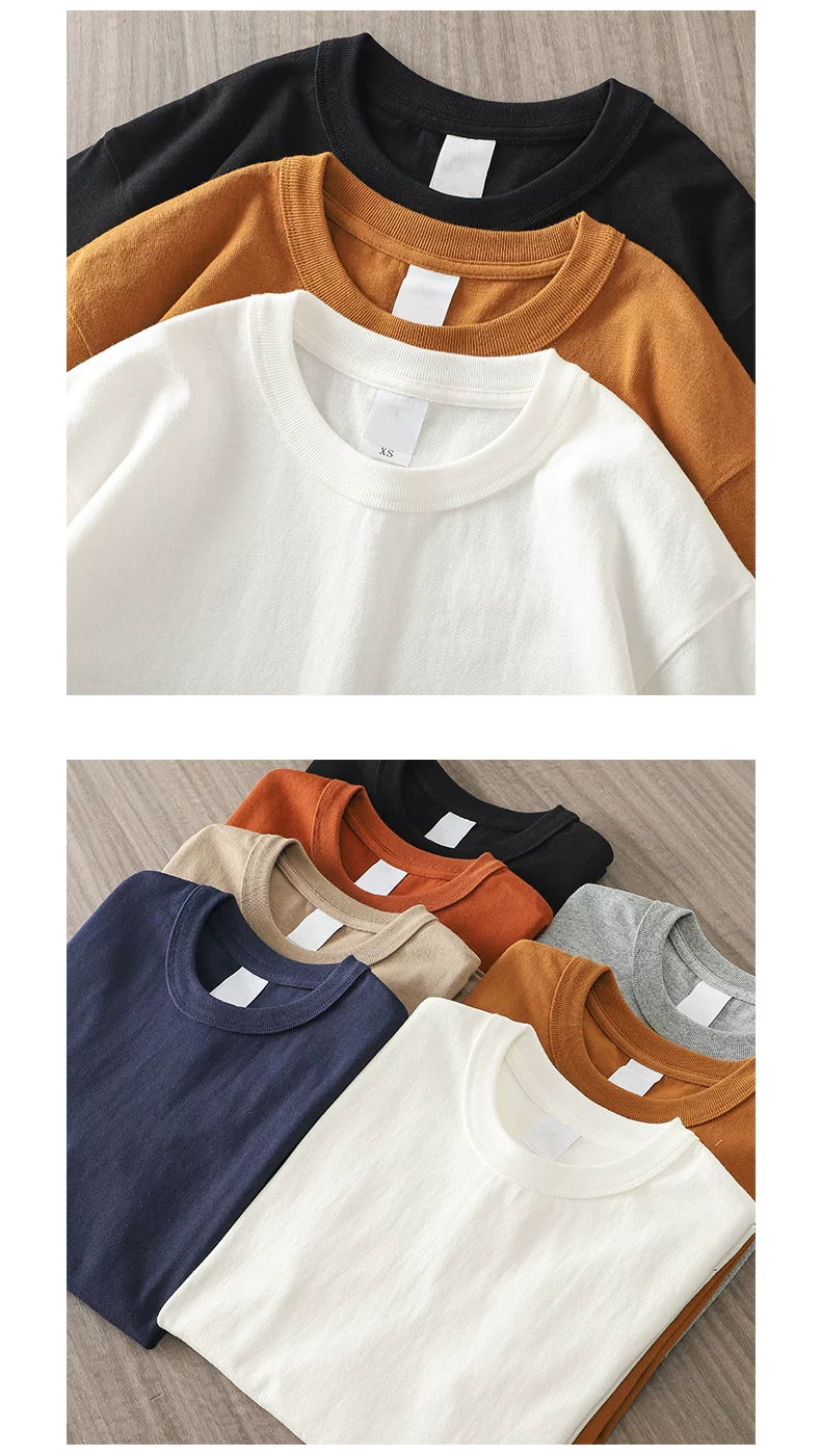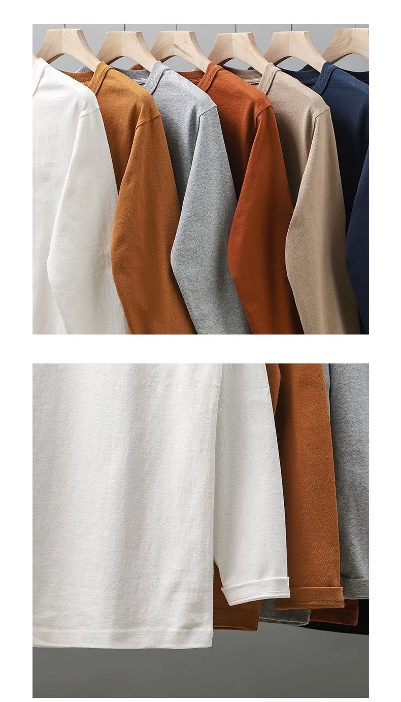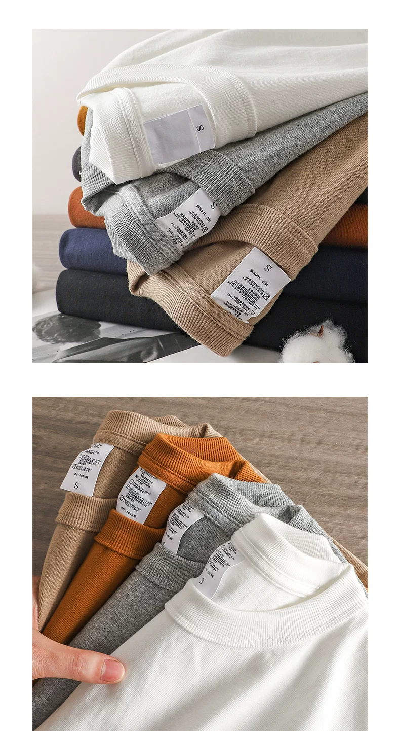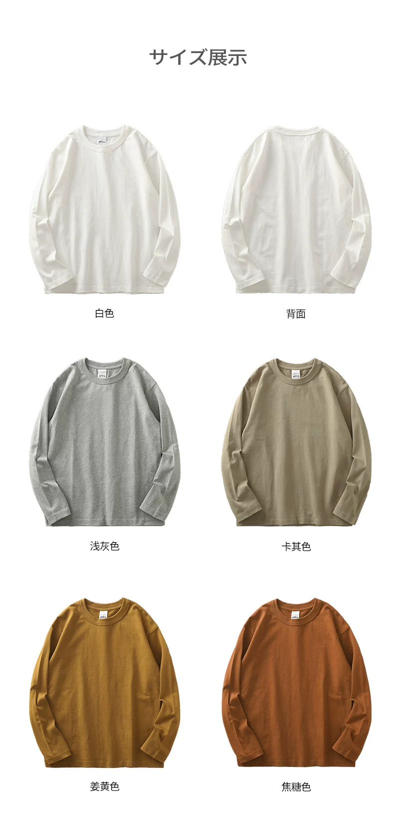 - Áo thun dài tay ba kim 400G chất liệu cotton nguyên chất dành cho nam, áo sơ mi trắng cao cấp mùa thu, áo sweatshirt cổ tròn rộng rãi.
