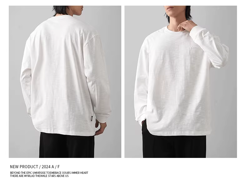 - Áo thun dài tay bằng vải cotton tre hạng nặng dành cho nam, chất liệu cotton nguyên chất, thêu thương hiệu hợp thời trang mùa xuân thu, áo sơ mi dáng rộng phong cách Nhật Bản, áo lót bên trong.