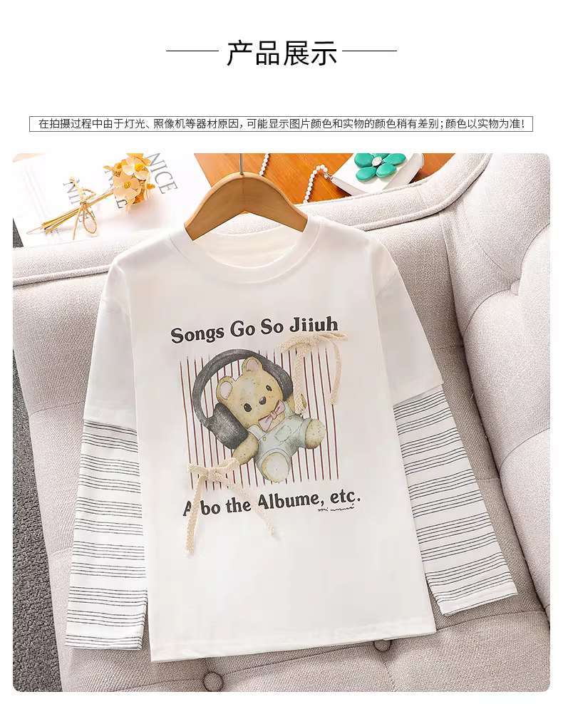 - Áo thun dài tay bé gái xuân thu 2025 kiểu mới áo hai lớp giả trẻ em áo thun trắng mùa thu
