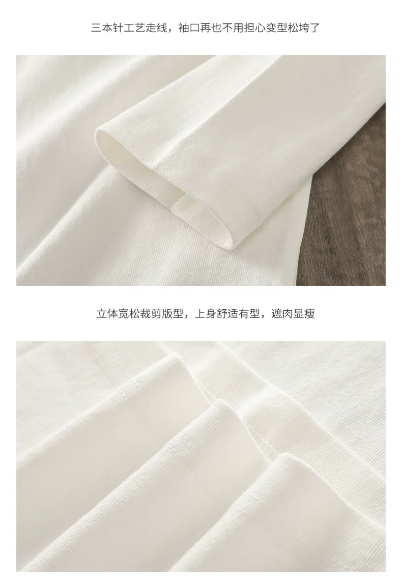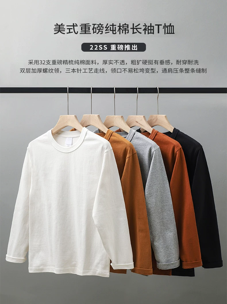 - Áo thun dài tay chất liệu cotton nguyên chất 400g kiểu Mỹ dành cho nam, áo len cổ tròn, áo lót ba kim màu trắng mùa thu đông.