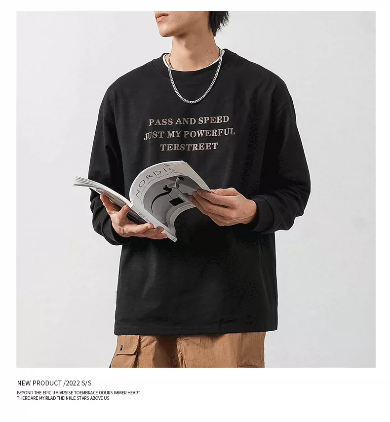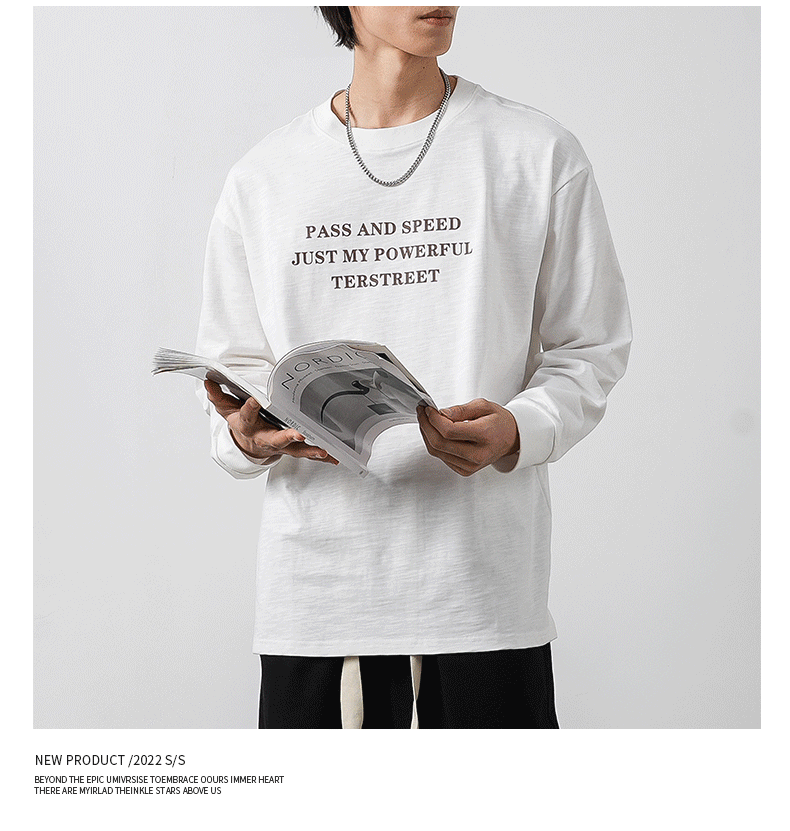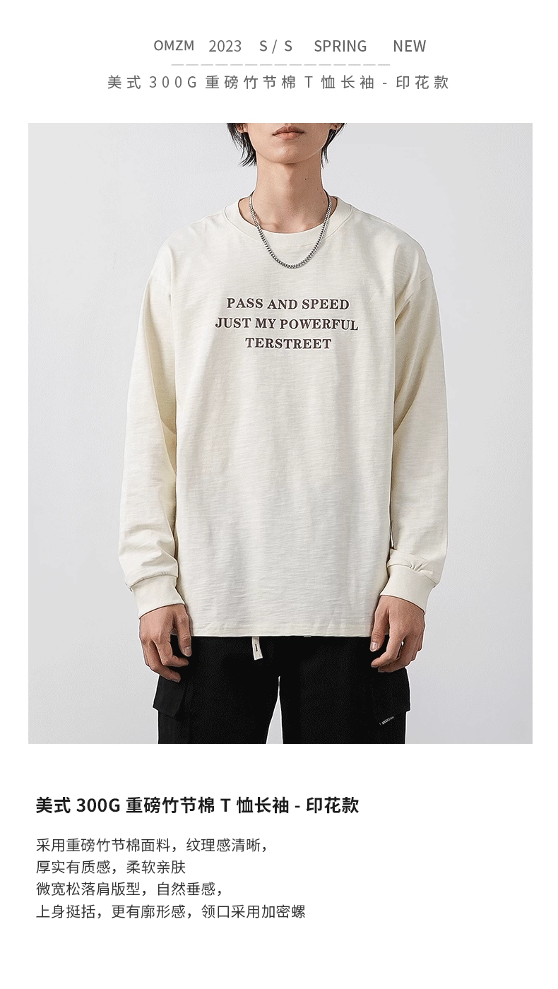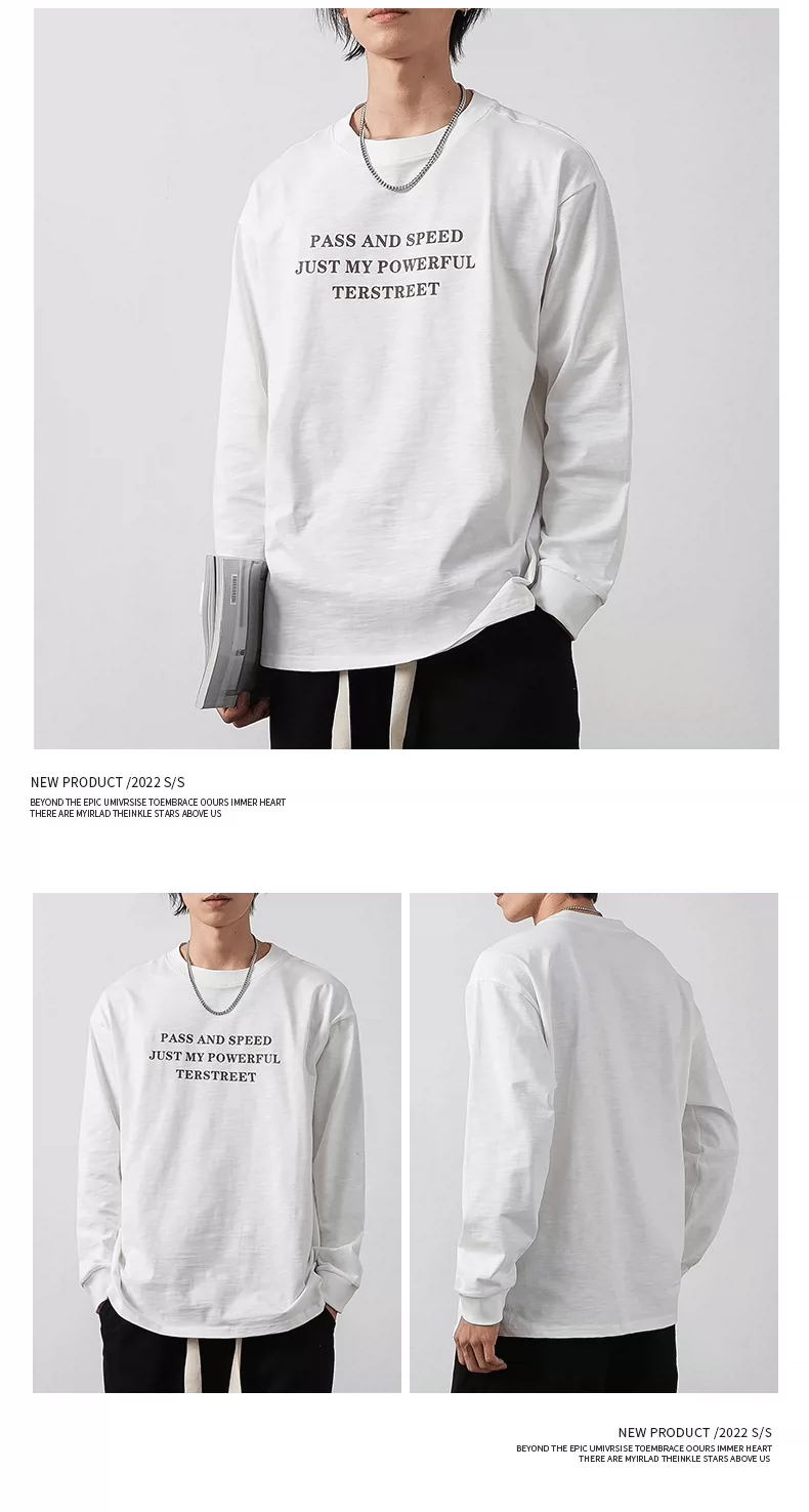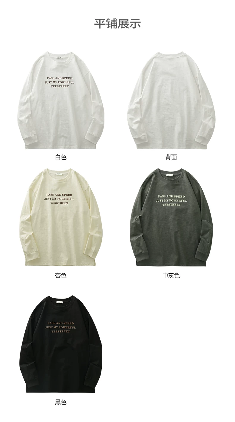 - Áo thun dài tay chất liệu cotton tre dày 300G kiểu Mỹ dành cho nam, áo thun in chữ cổ điển mùa xuân thu, kiểu dáng rộng rãi