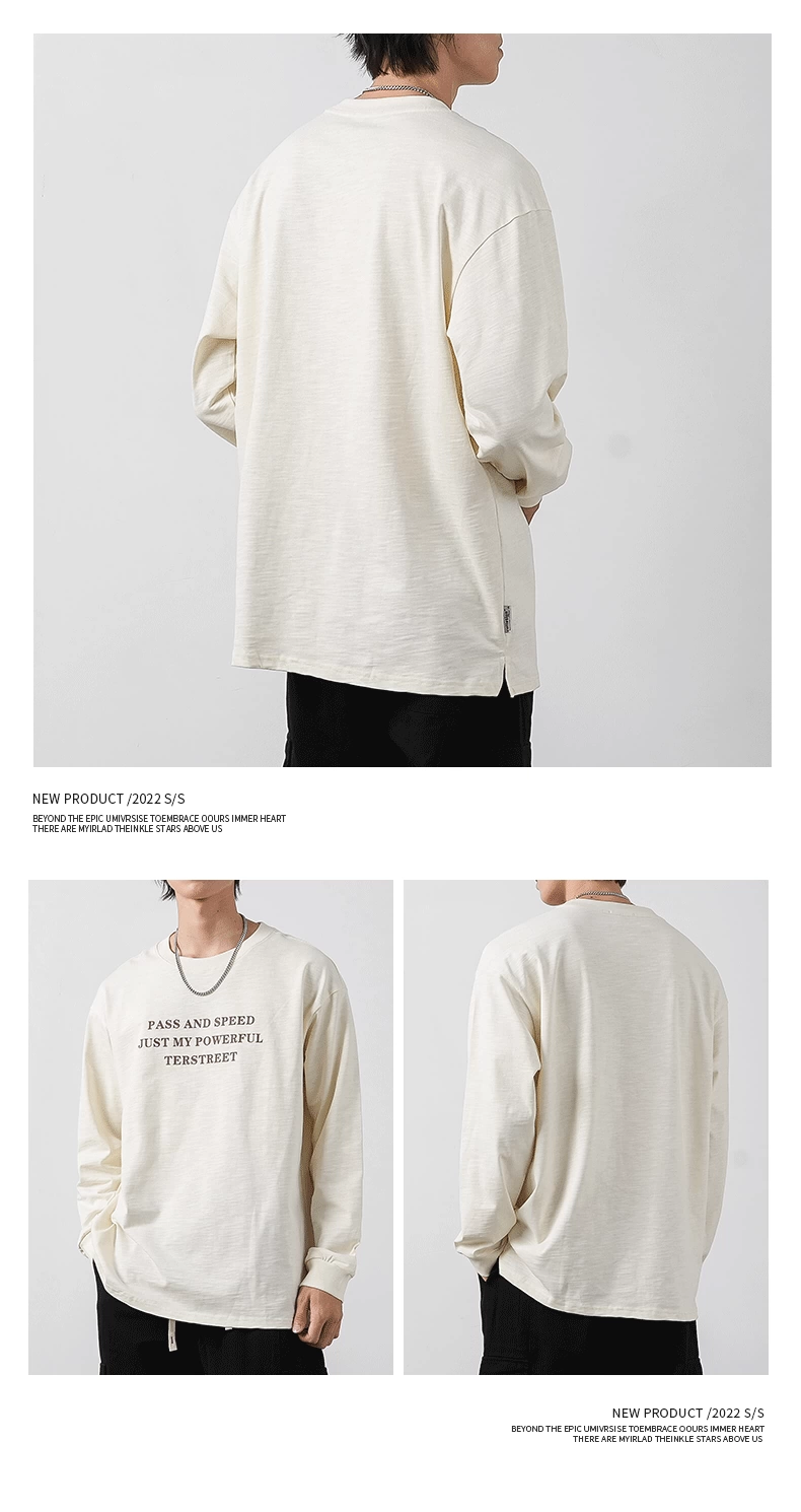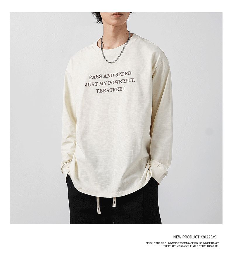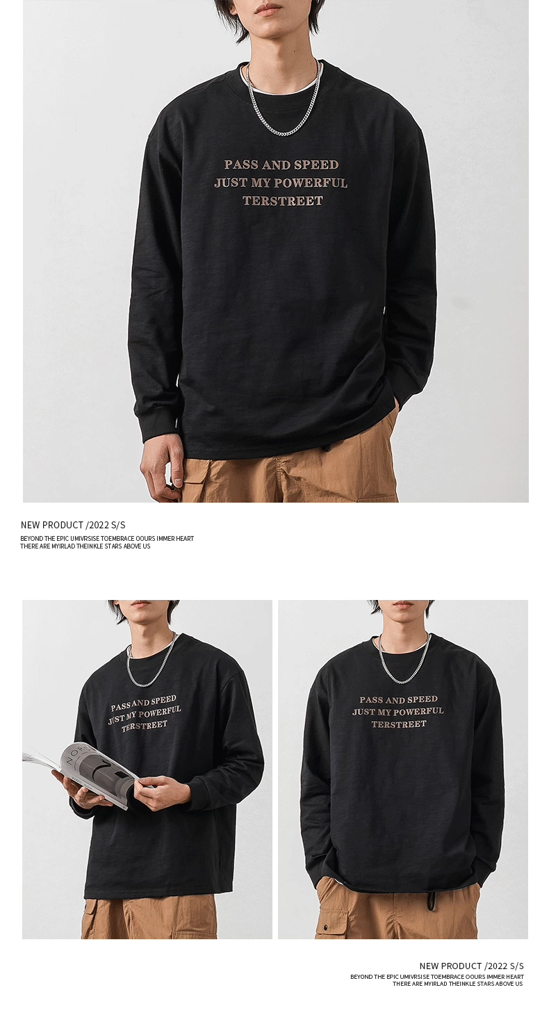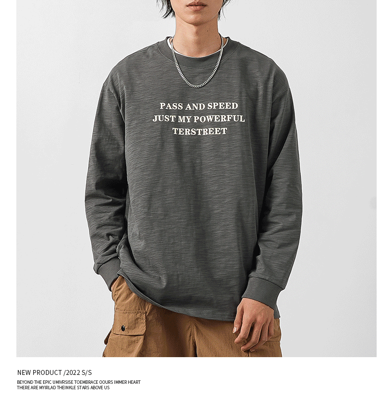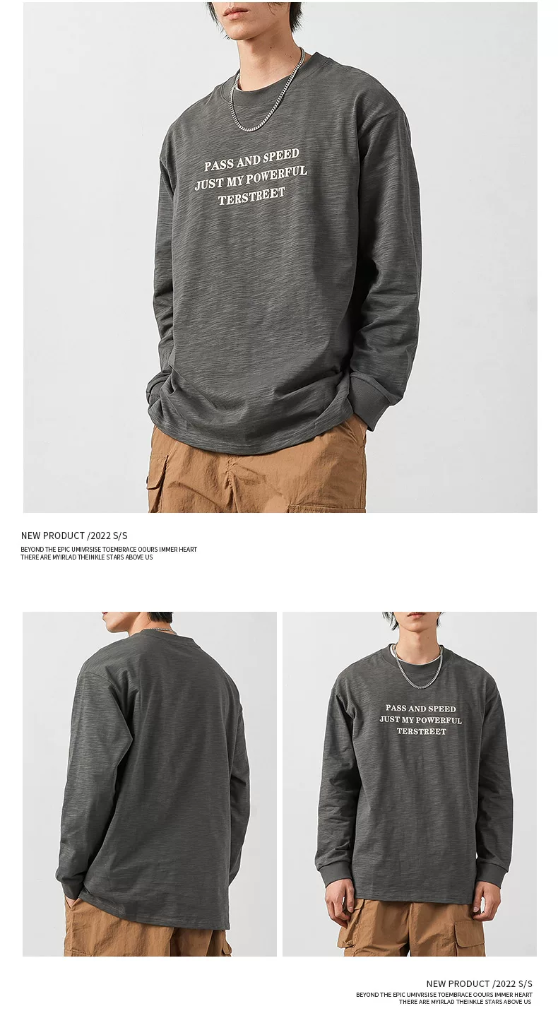 - Áo thun dài tay chất liệu cotton tre dày 300G kiểu Mỹ dành cho nam, áo thun in chữ cổ điển mùa xuân thu, kiểu dáng rộng rãi