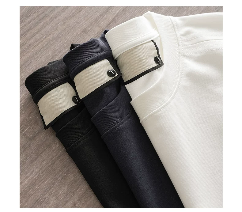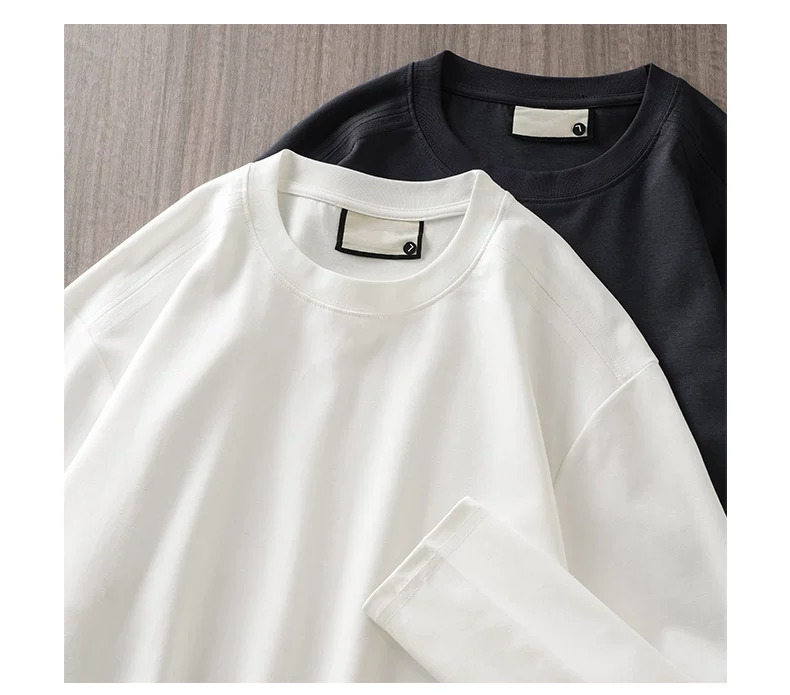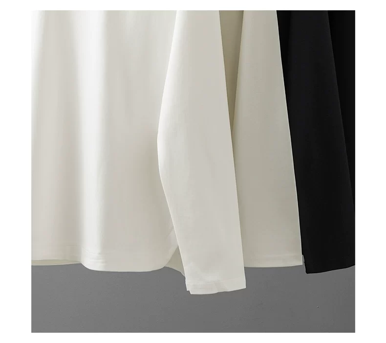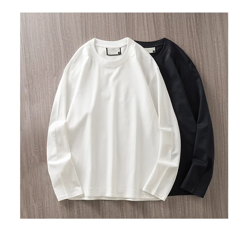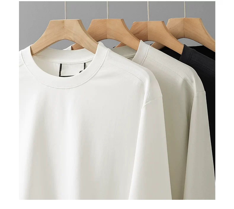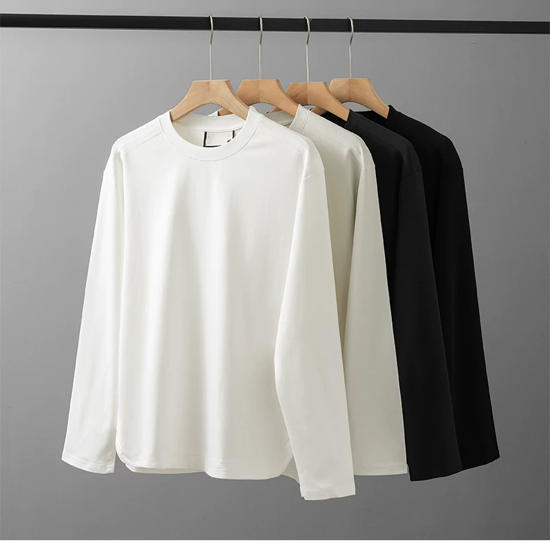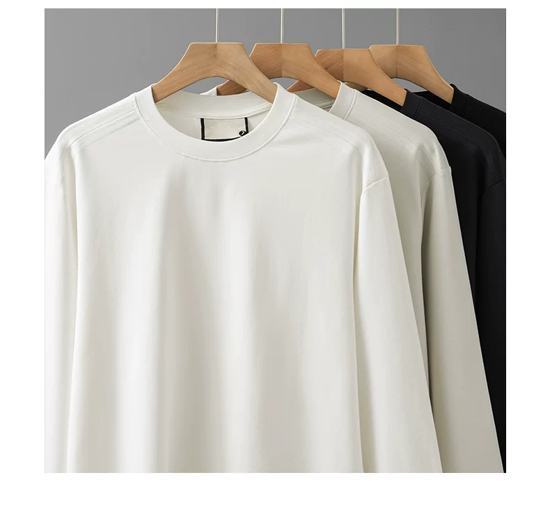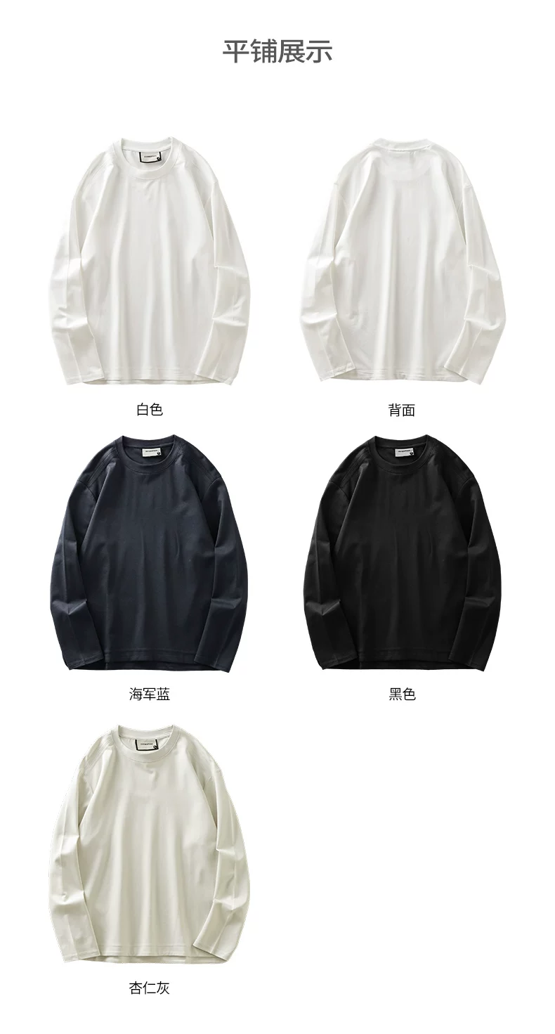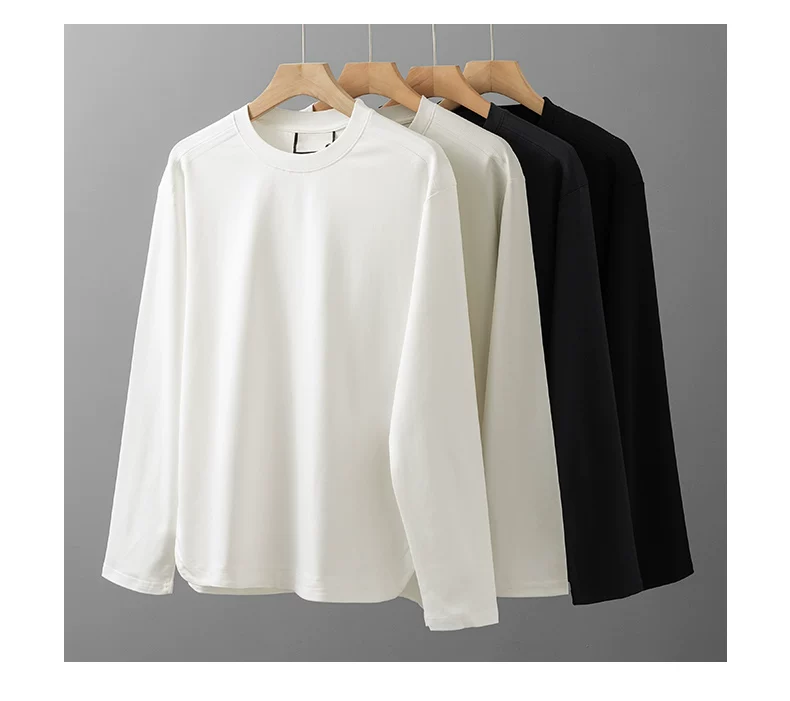 - Áo thun dài tay chất liệu modal hạng nặng 270G kiểu Mỹ dành cho nam và nữ, áo lót màu trơn mùa xuân, áo thun trắng cổ tròn.