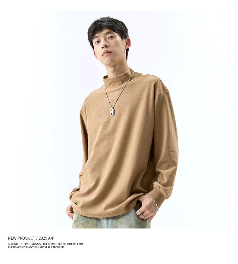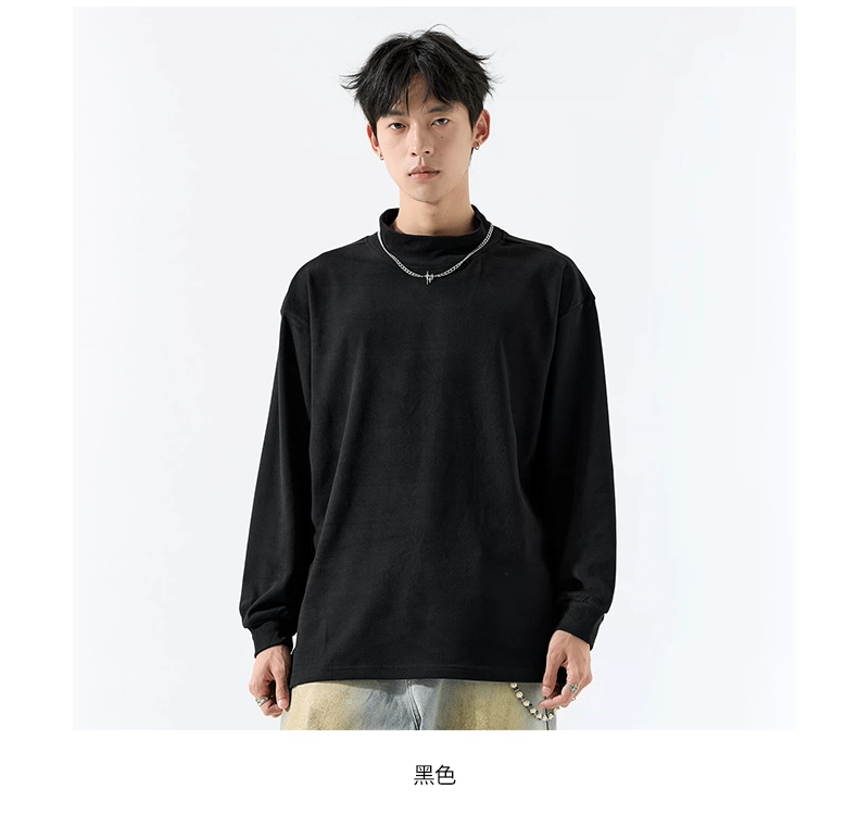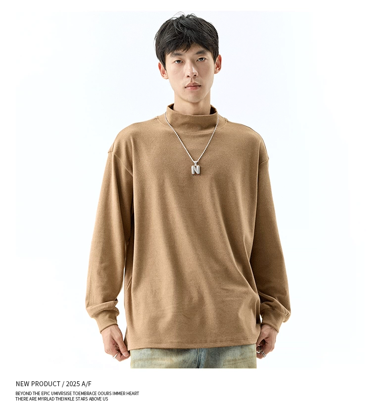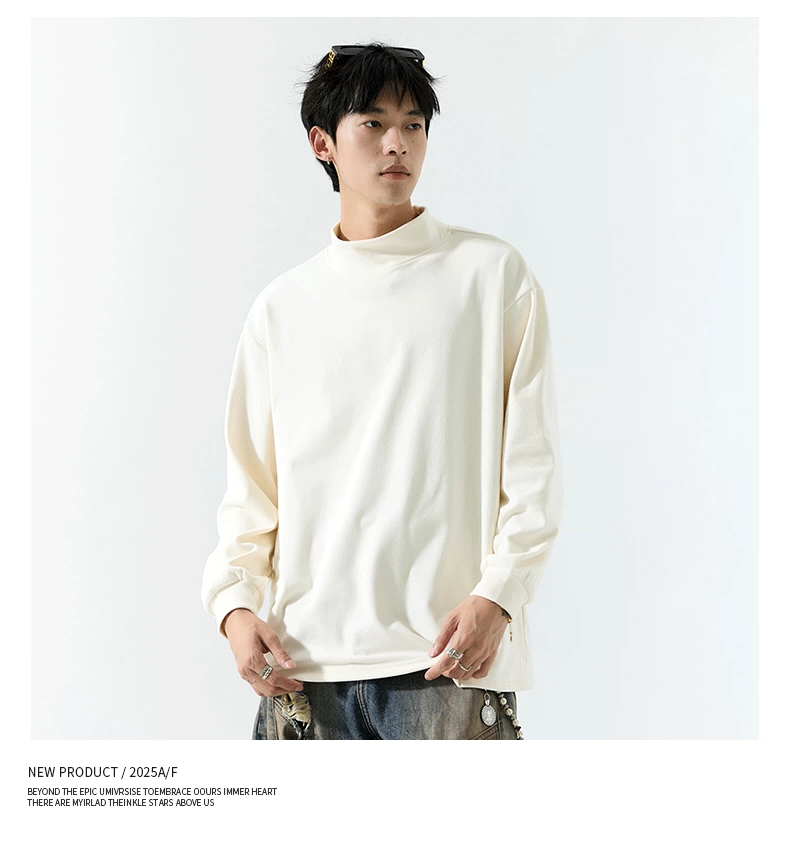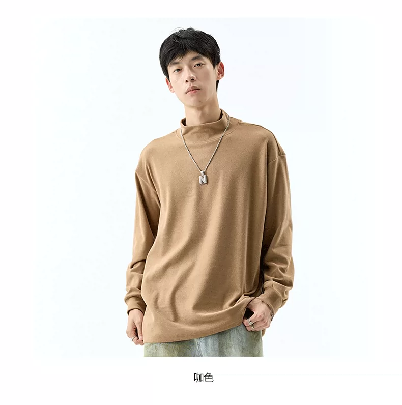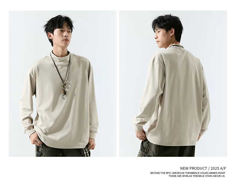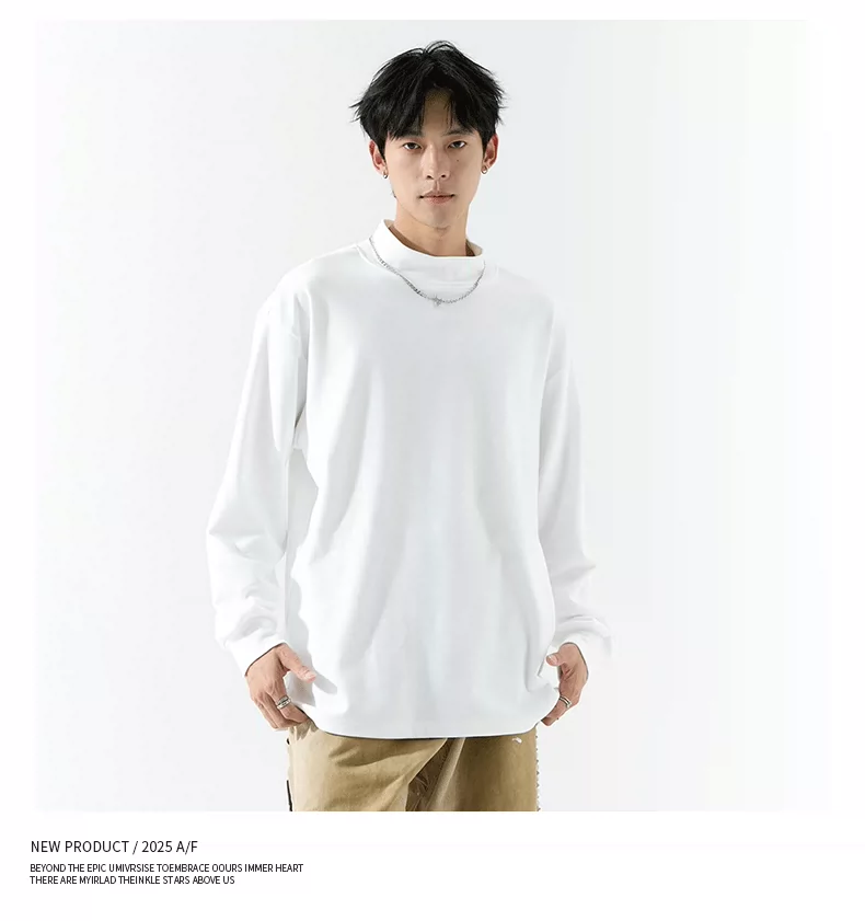 Áo thun dài tay cổ cao hạng nặng OMZM300G dành cho nam, áo sơ mi giữ nhiệt màu trơn mùa thu, áo lót ấm áp cho mùa thu.