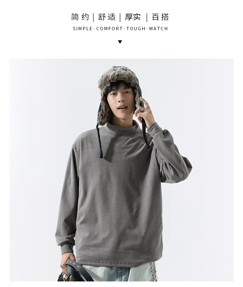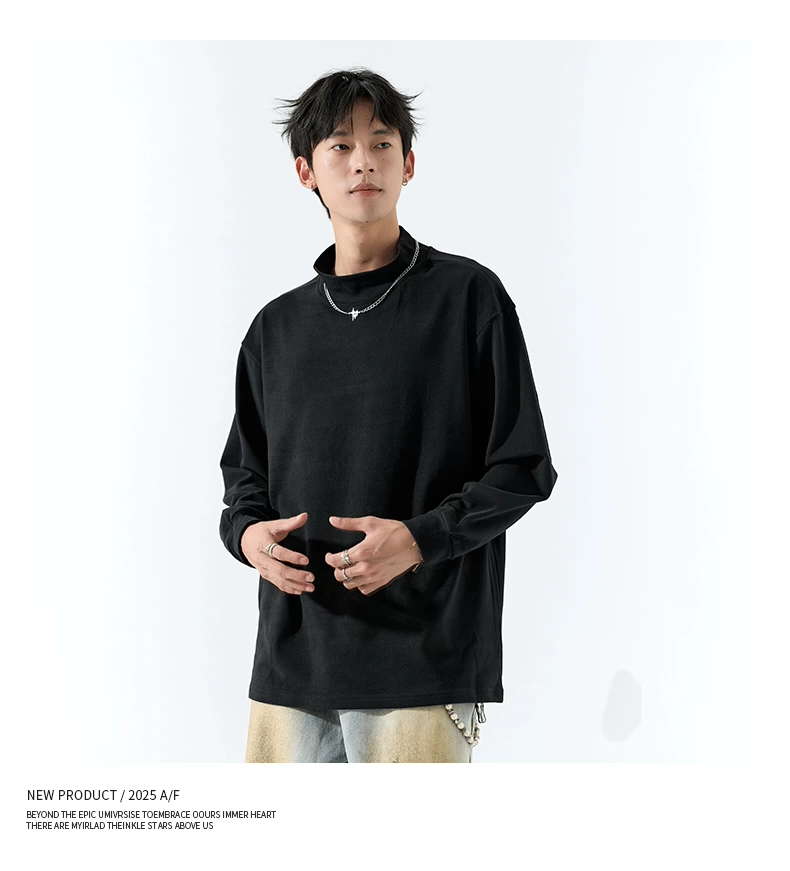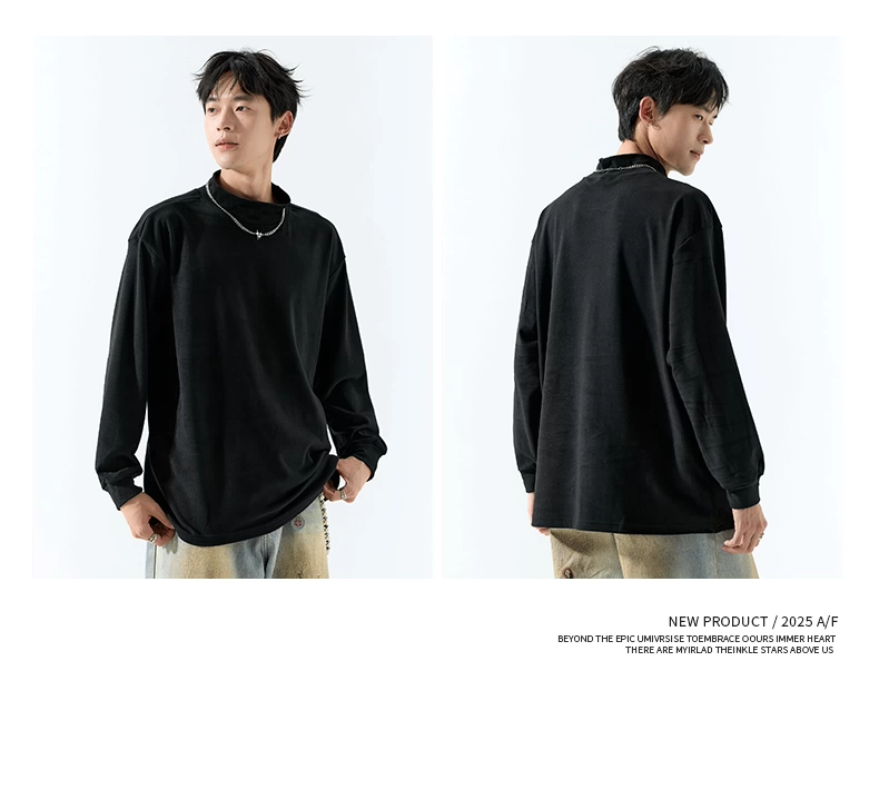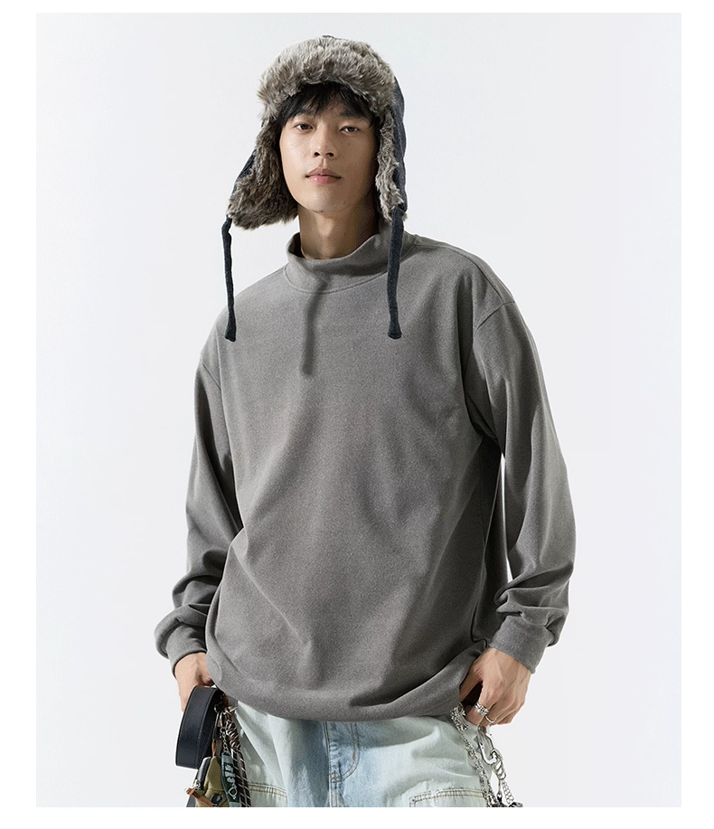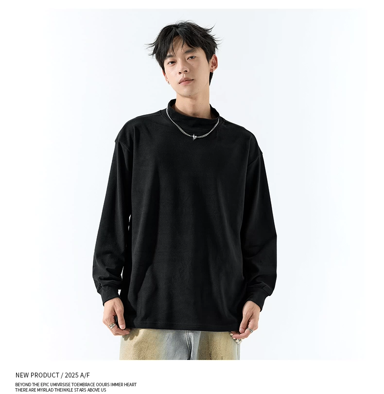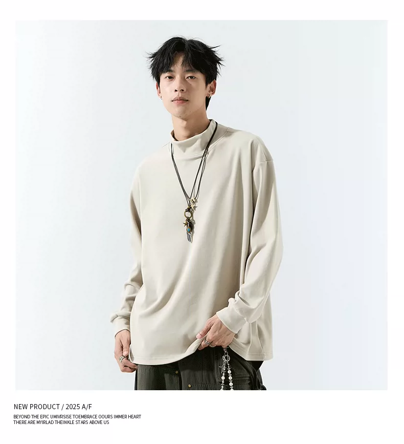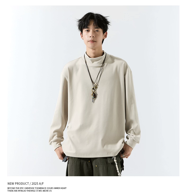 Áo thun dài tay cổ cao hạng nặng OMZM300G dành cho nam, áo sơ mi giữ nhiệt màu trơn mùa thu, áo lót ấm áp cho mùa thu.