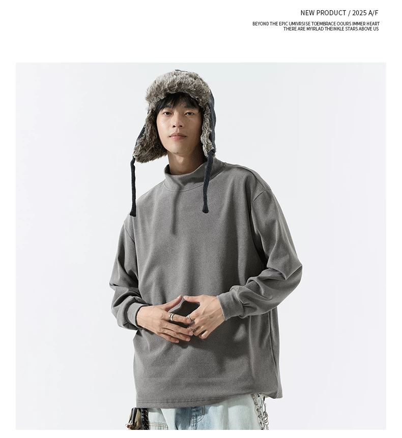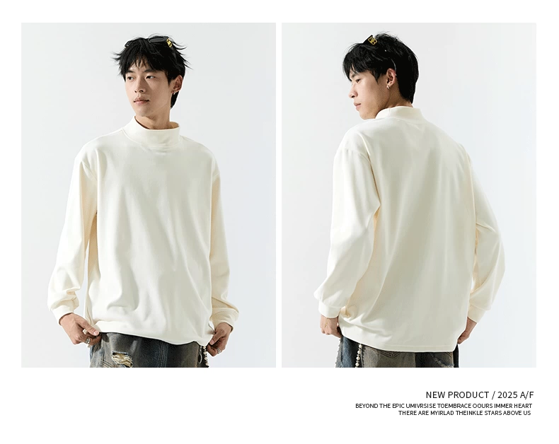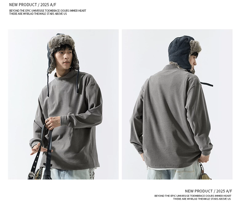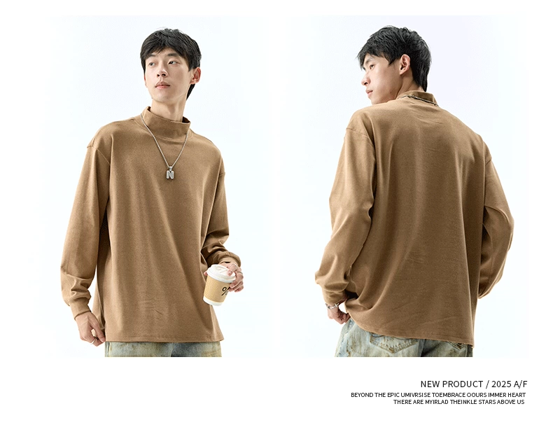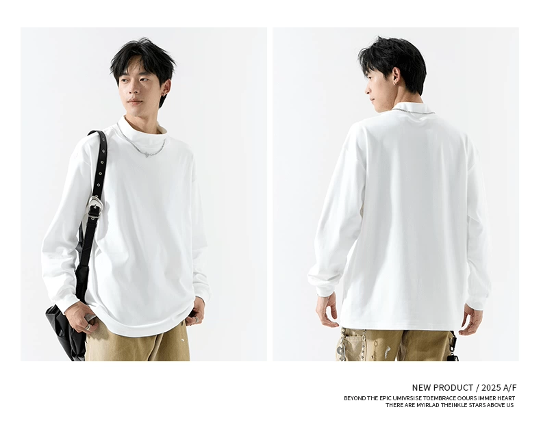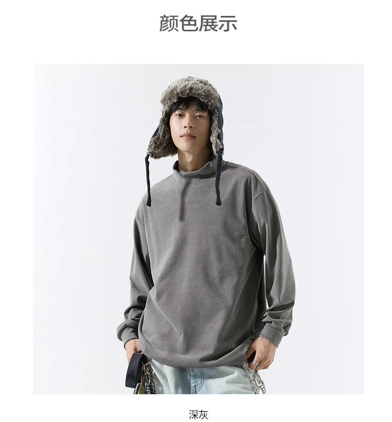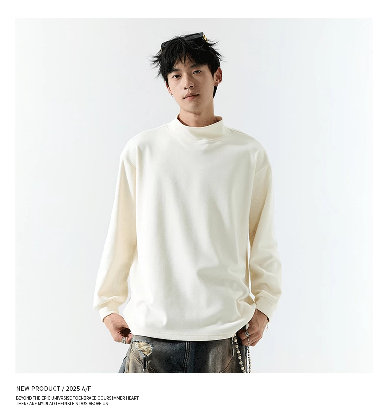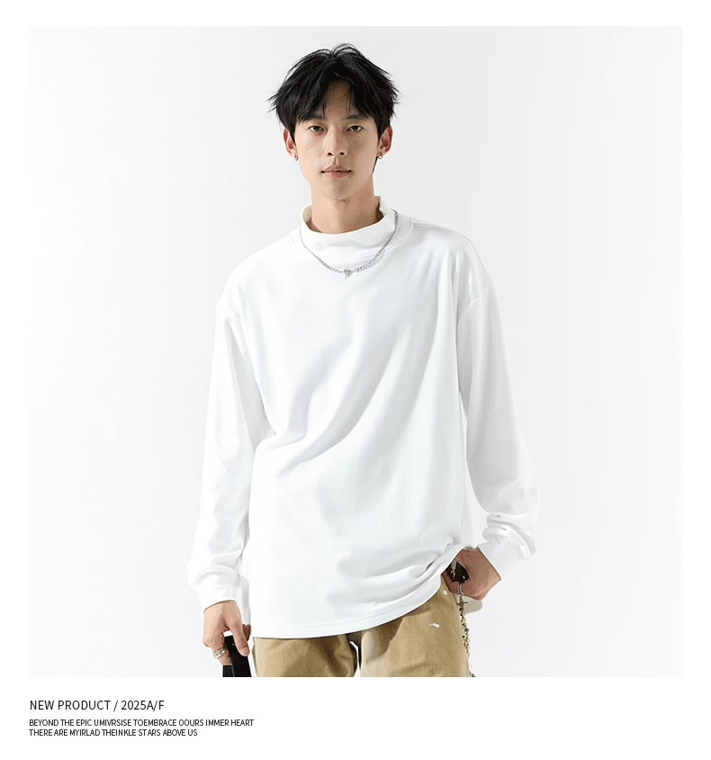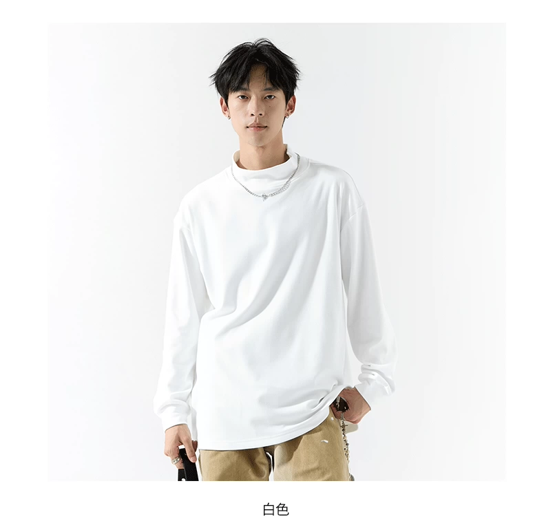 - Áo thun dài tay cổ cao hạng nặng OMZM300G dành cho nam, áo sơ mi giữ nhiệt màu trơn mùa thu, áo lót ấm áp cho mùa thu.