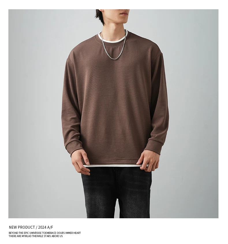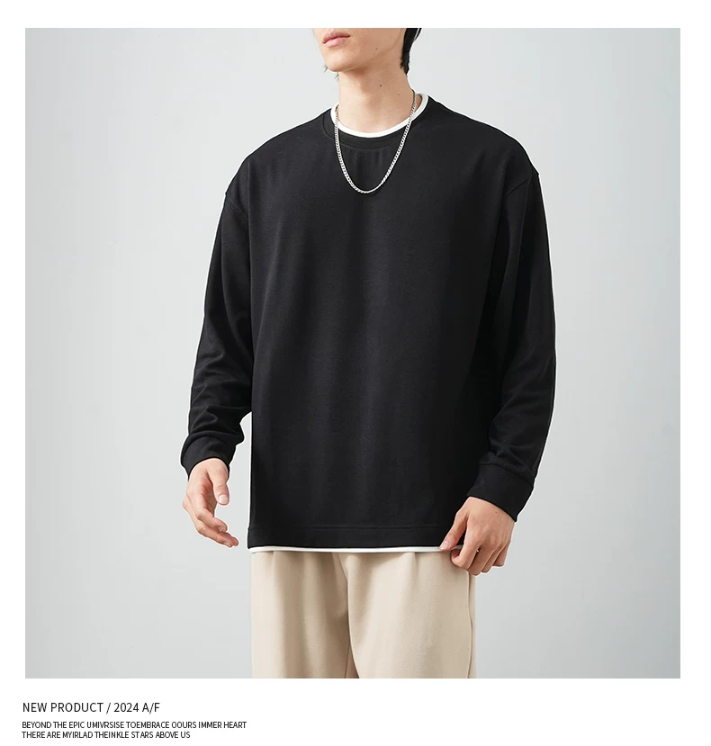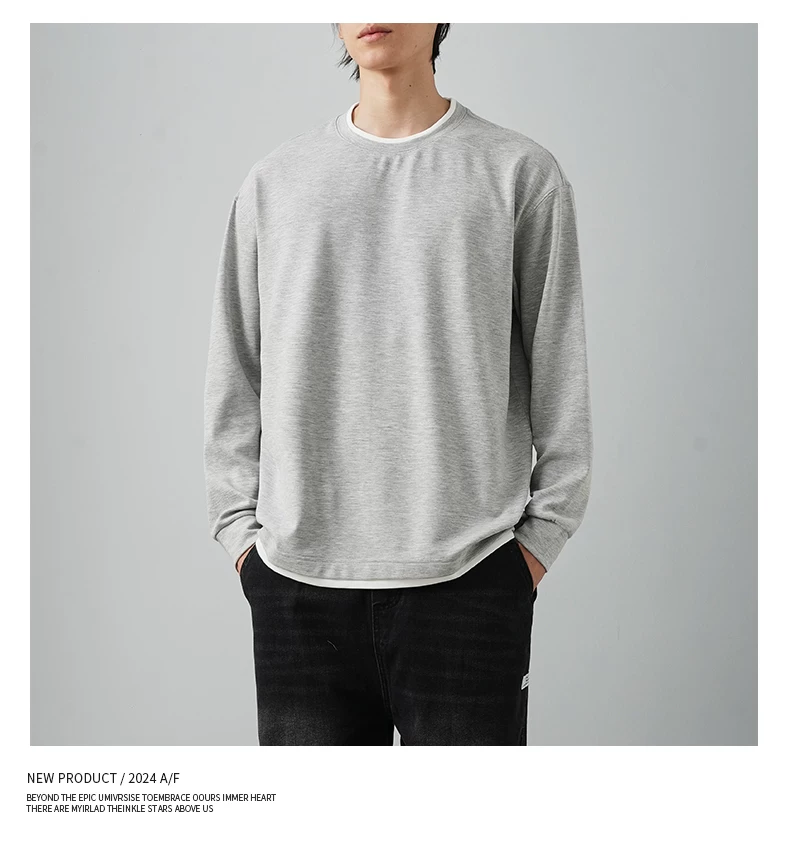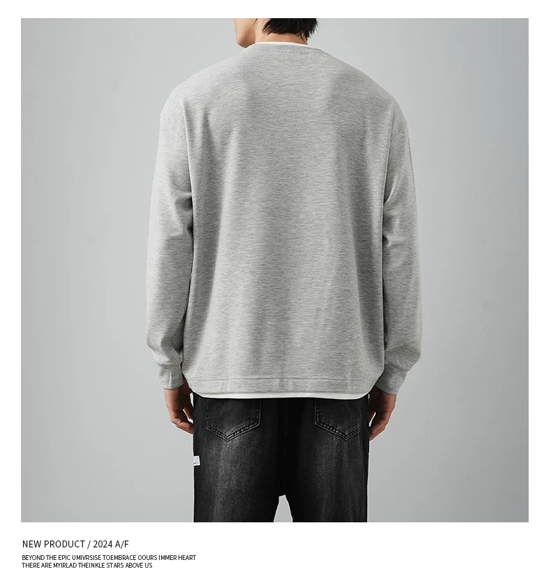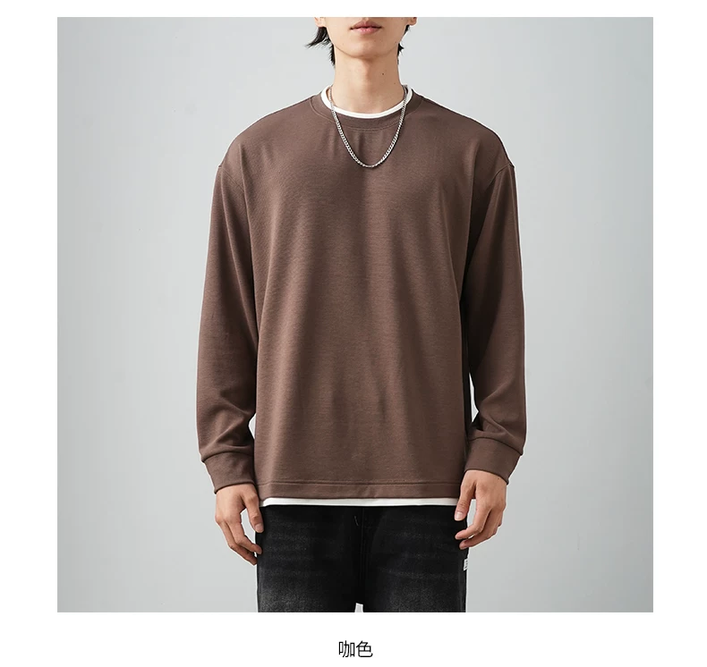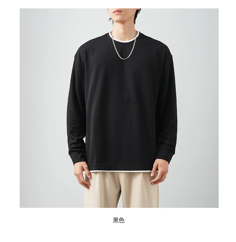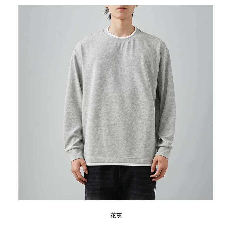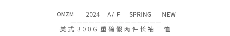 - Áo thun dài tay giả hai mảnh hạng nặng OMZM300G dành cho nam giới, áo sơ mi cổ tròn dáng rộng màu trơn mùa thu dành cho giới trẻ