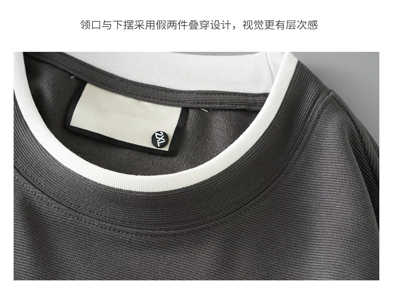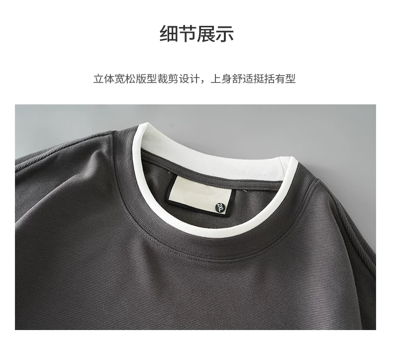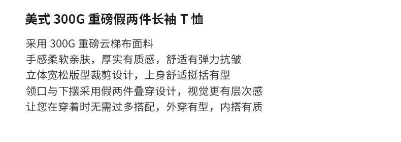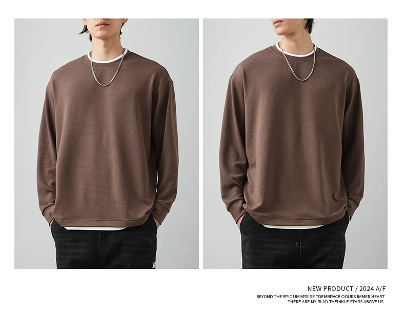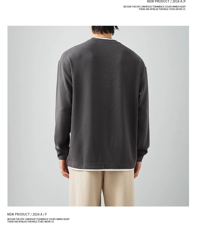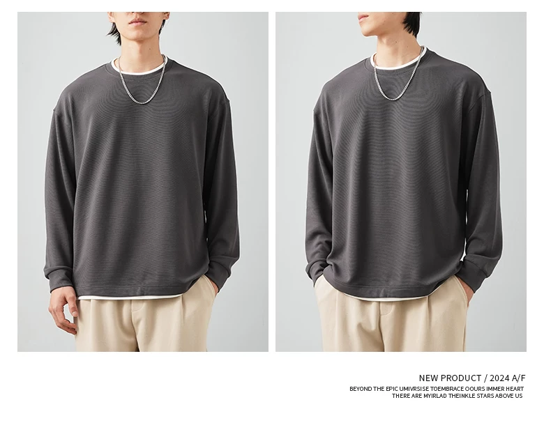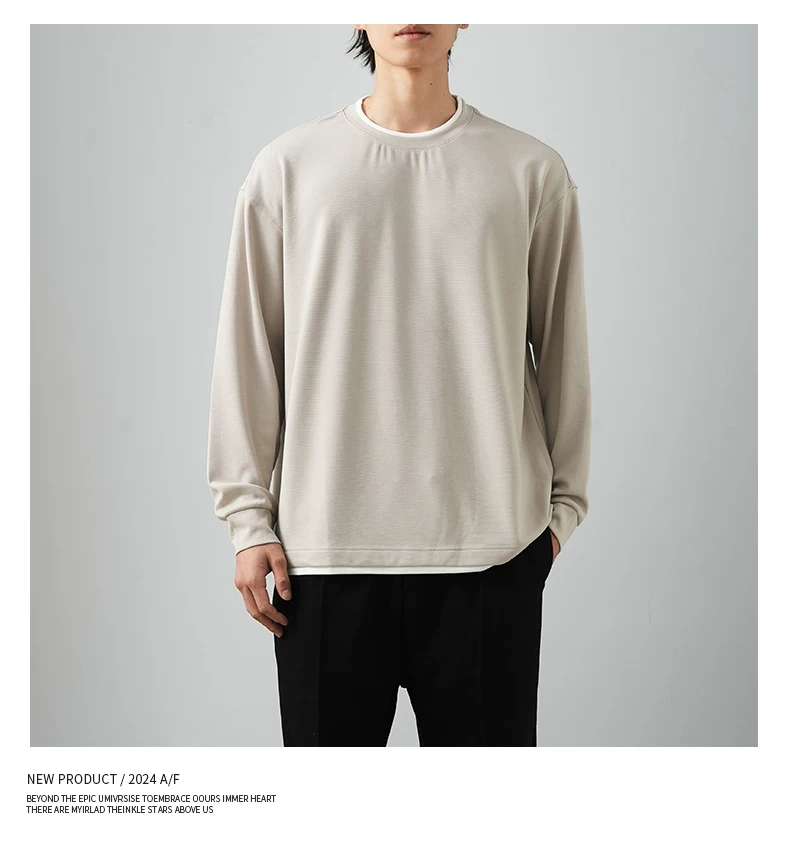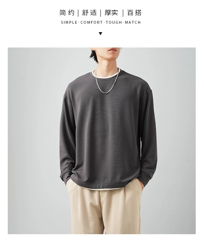 - Áo thun dài tay giả hai mảnh hạng nặng OMZM300G dành cho nam giới, áo sơ mi cổ tròn dáng rộng màu trơn mùa thu dành cho giới trẻ