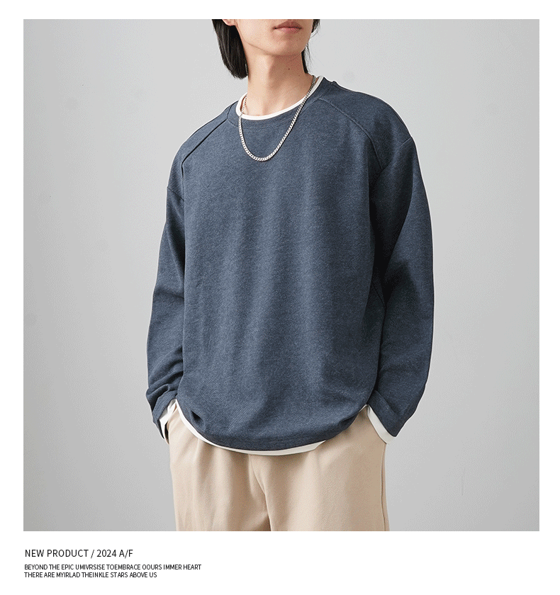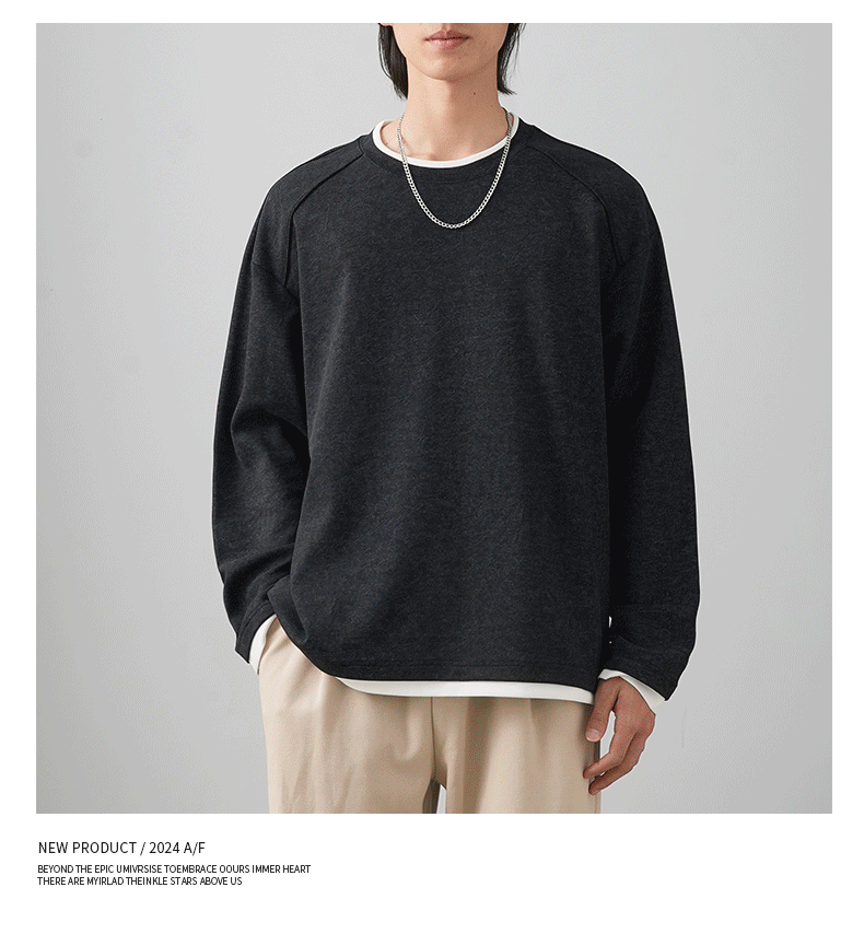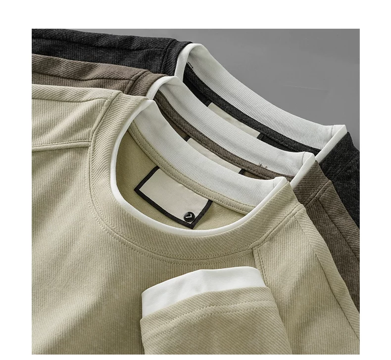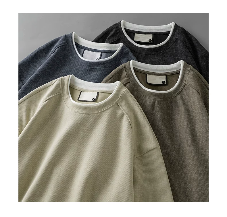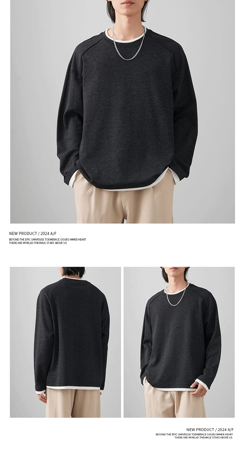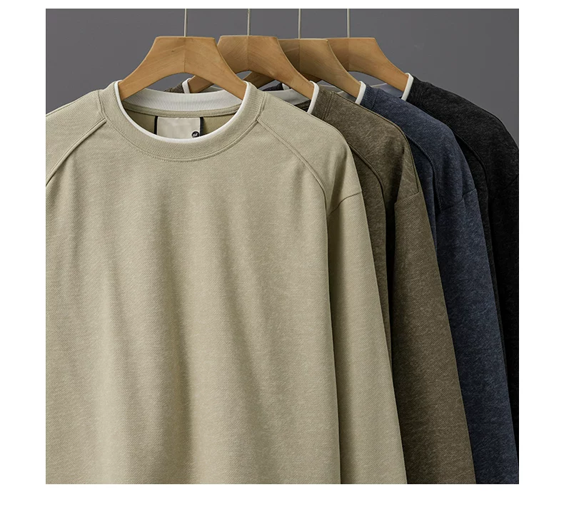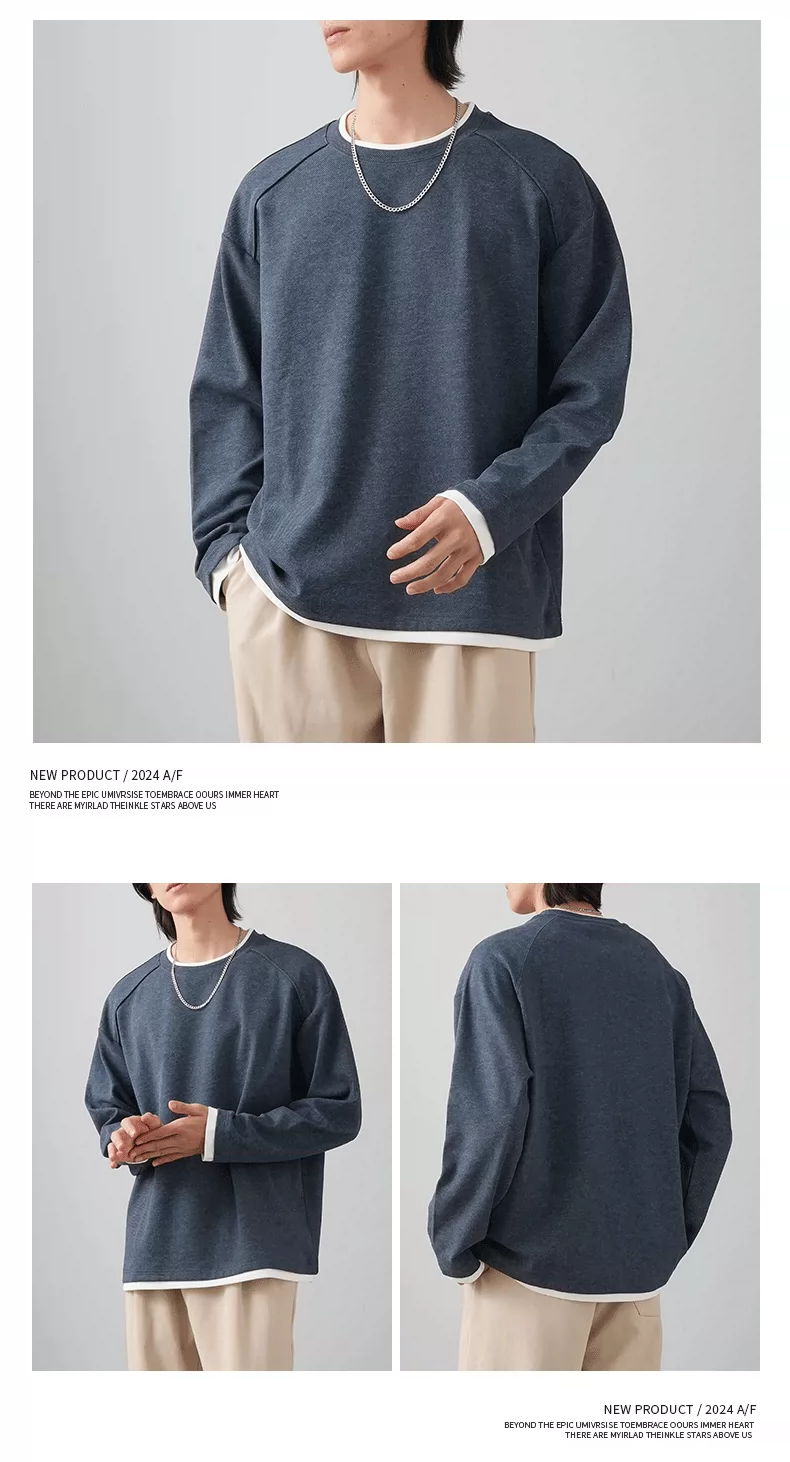 - Áo thun dài tay giả hai mảnh kiểu Mỹ 320G dành cho nam, áo len cổ tròn màu trơn mùa xuân, áo lót cổ điển.