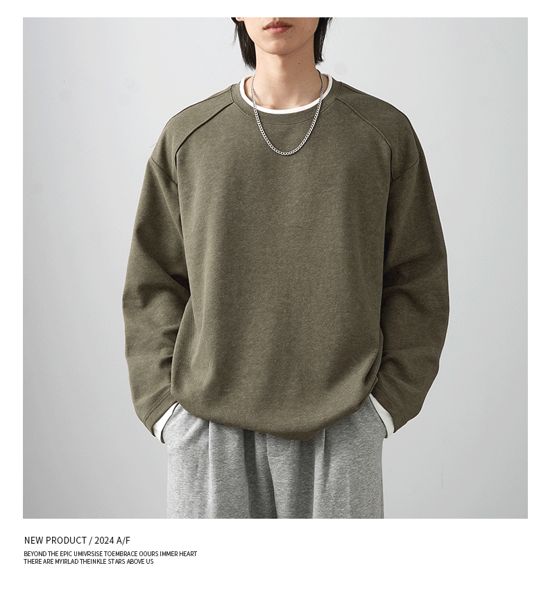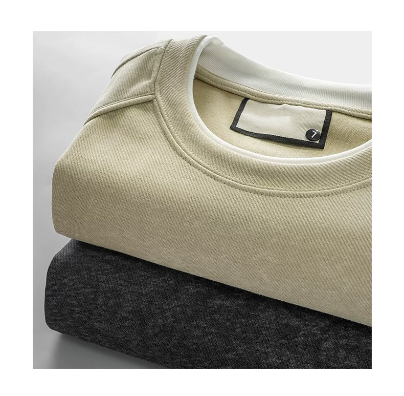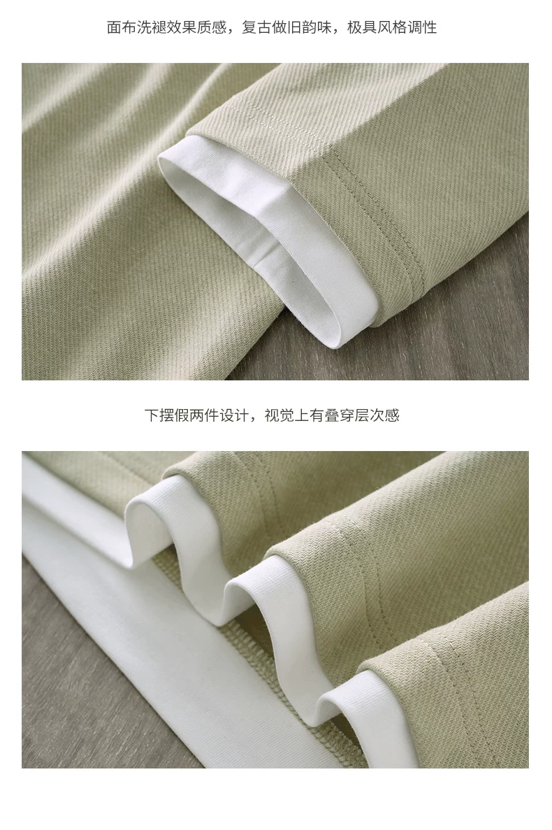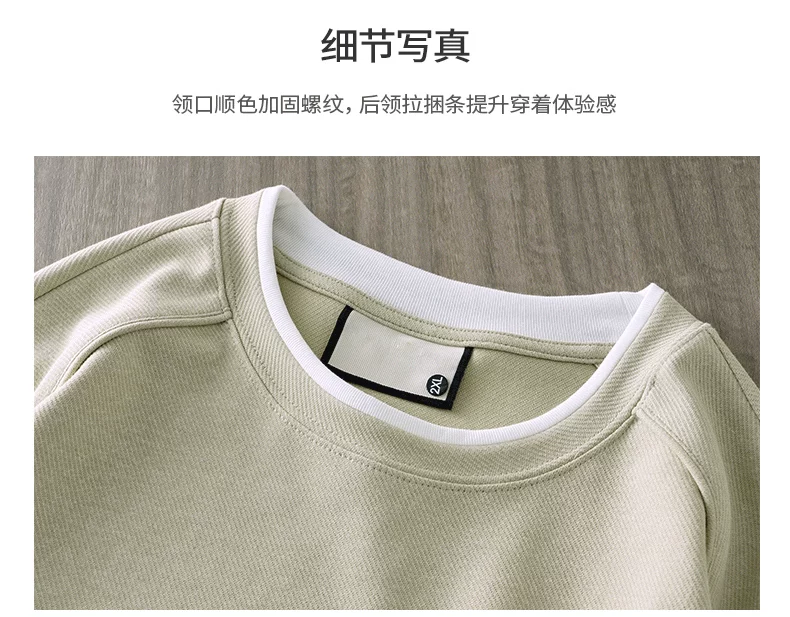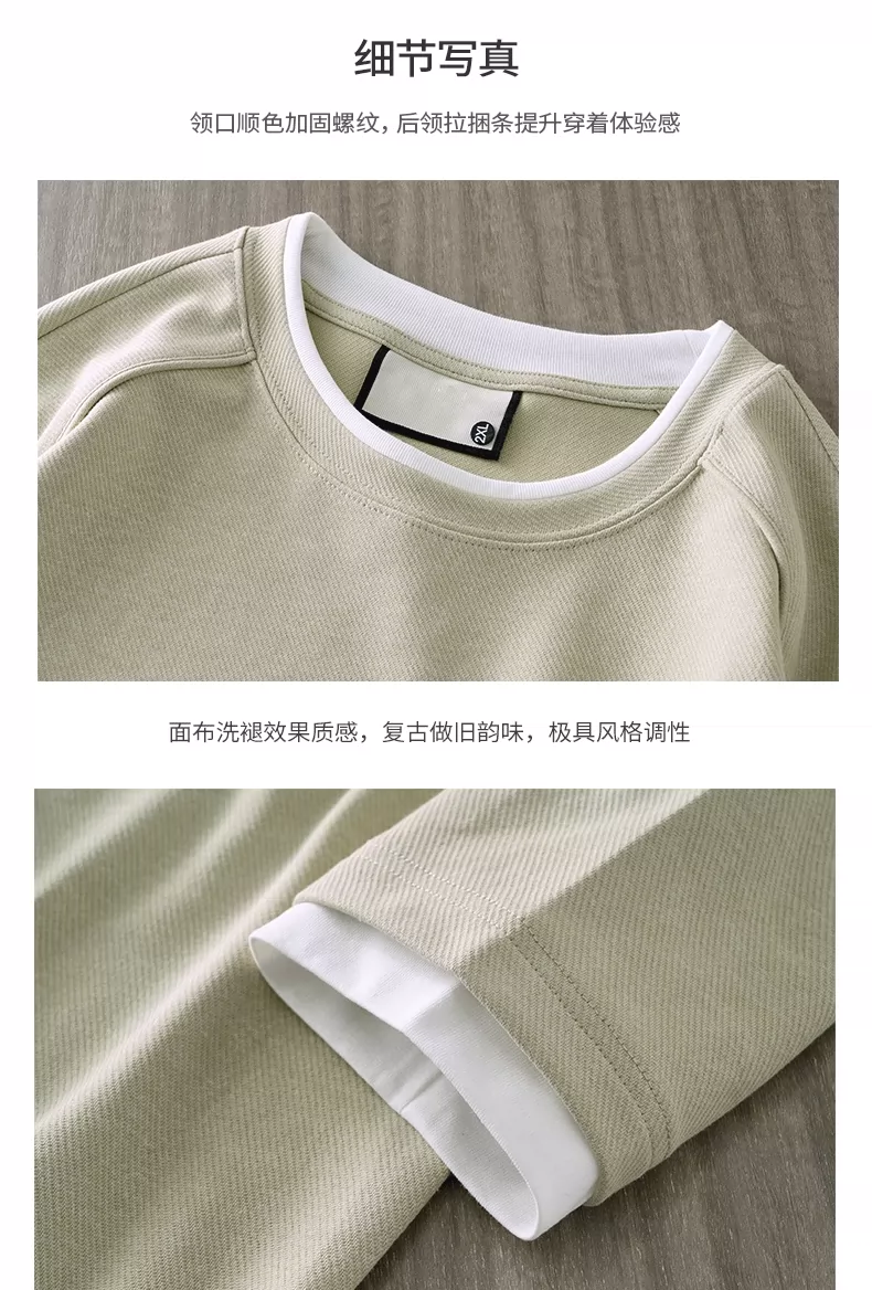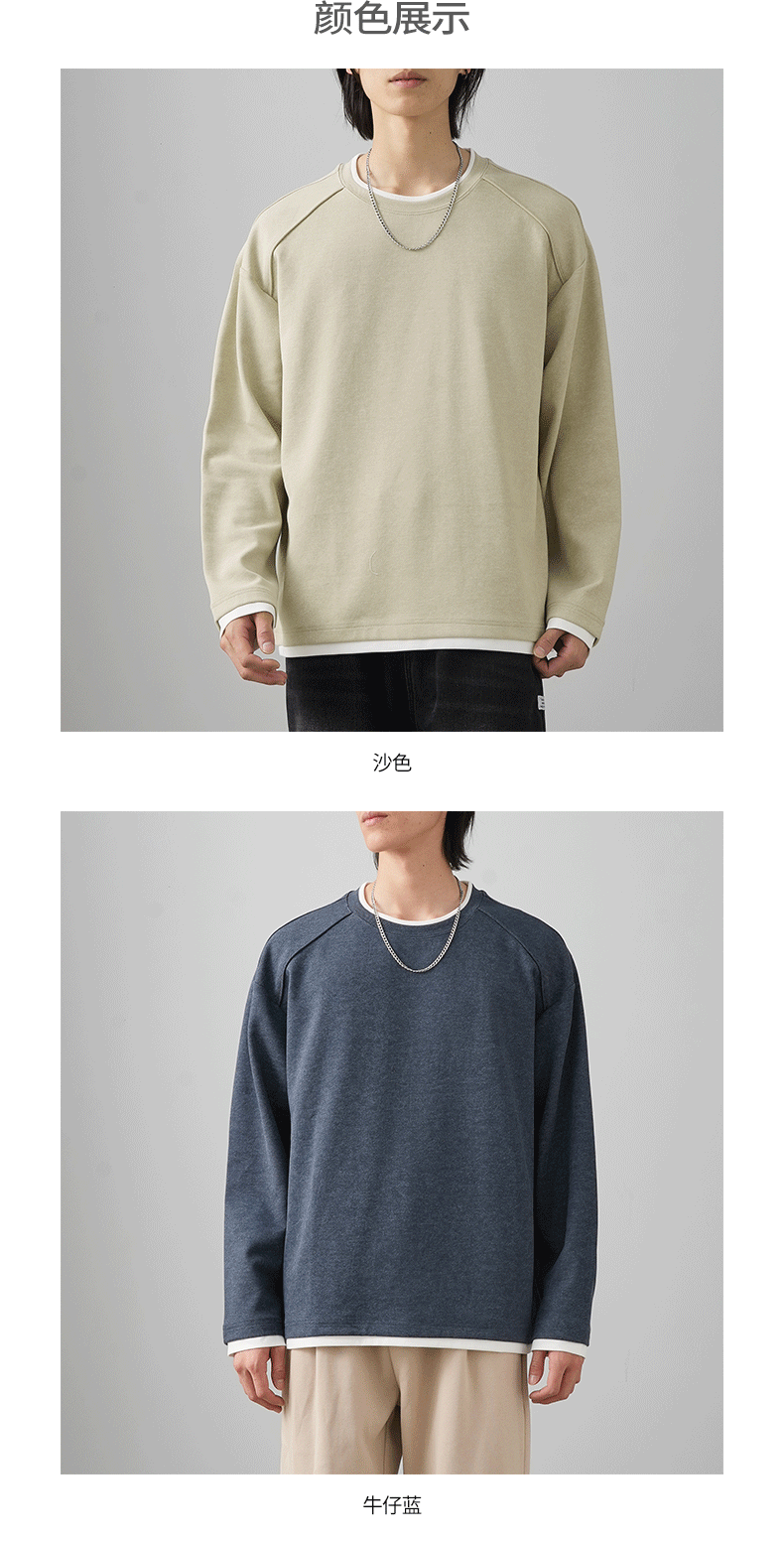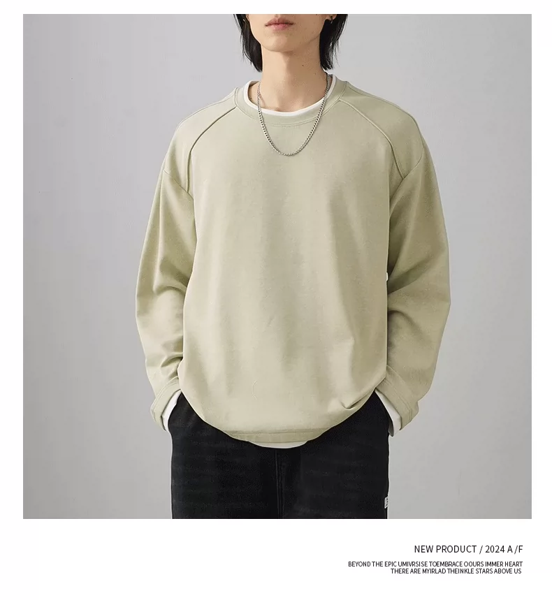 - Áo thun dài tay giả hai mảnh kiểu Mỹ 320G dành cho nam, áo len cổ tròn màu trơn mùa xuân, áo lót cổ điển.
