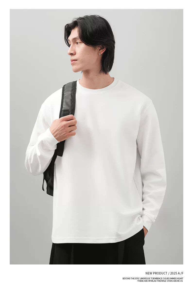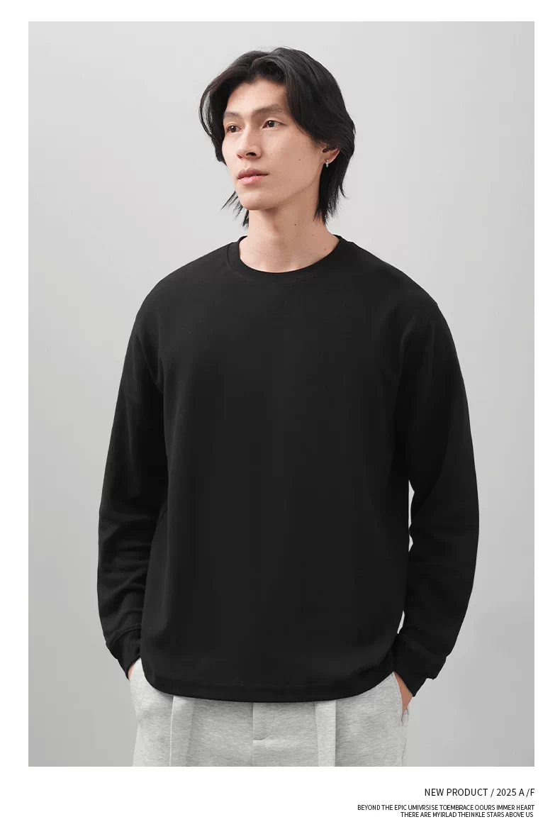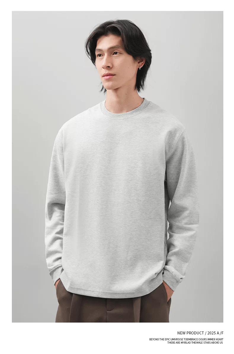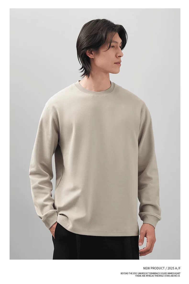 Áo thun dài tay giữ nhiệt Sorona tự sưởi ấm OMZM dành cho nam, mùa thu đông Áo sơ mi lớp nền màu trơn chải kiểu Mỹ