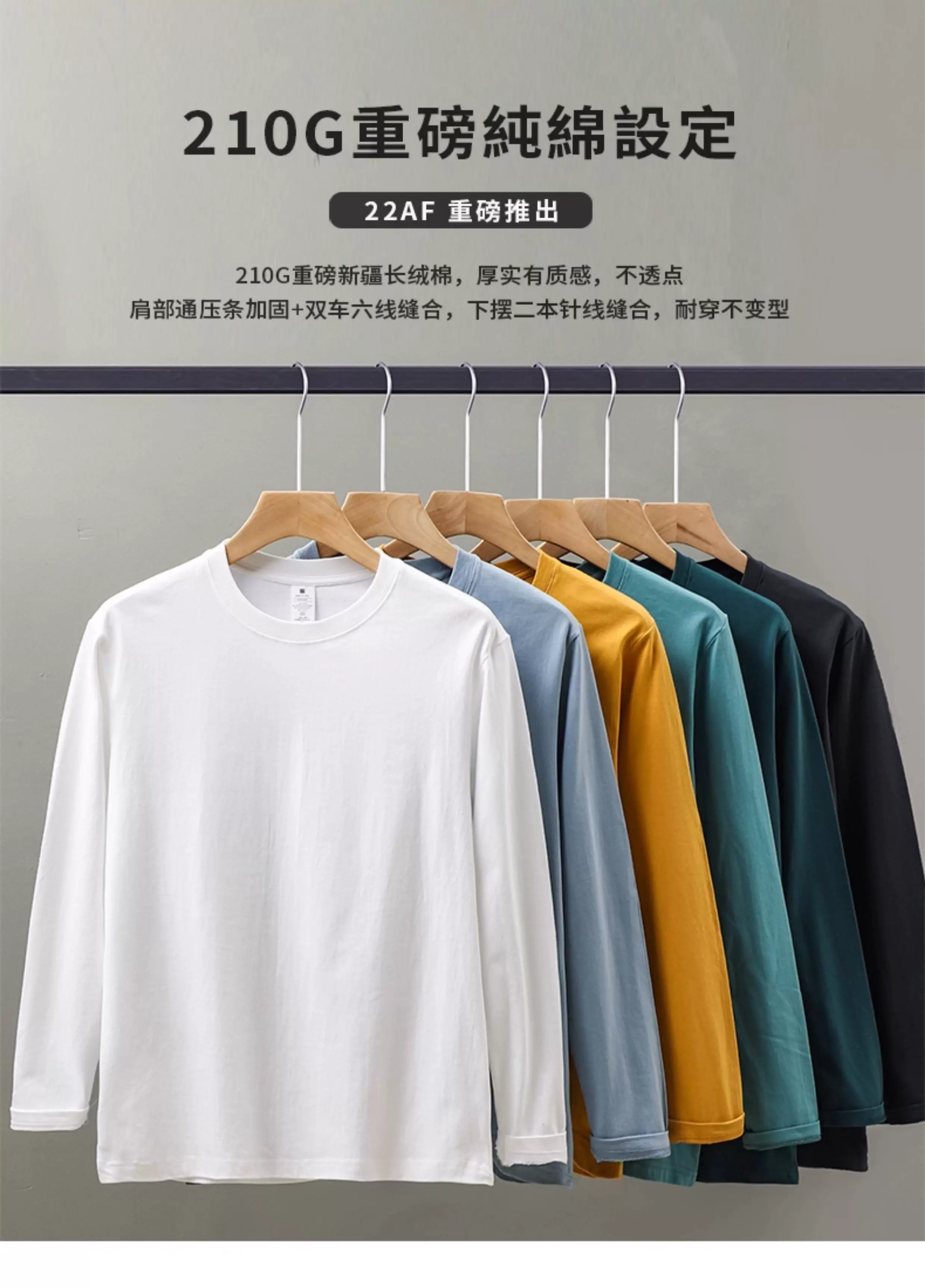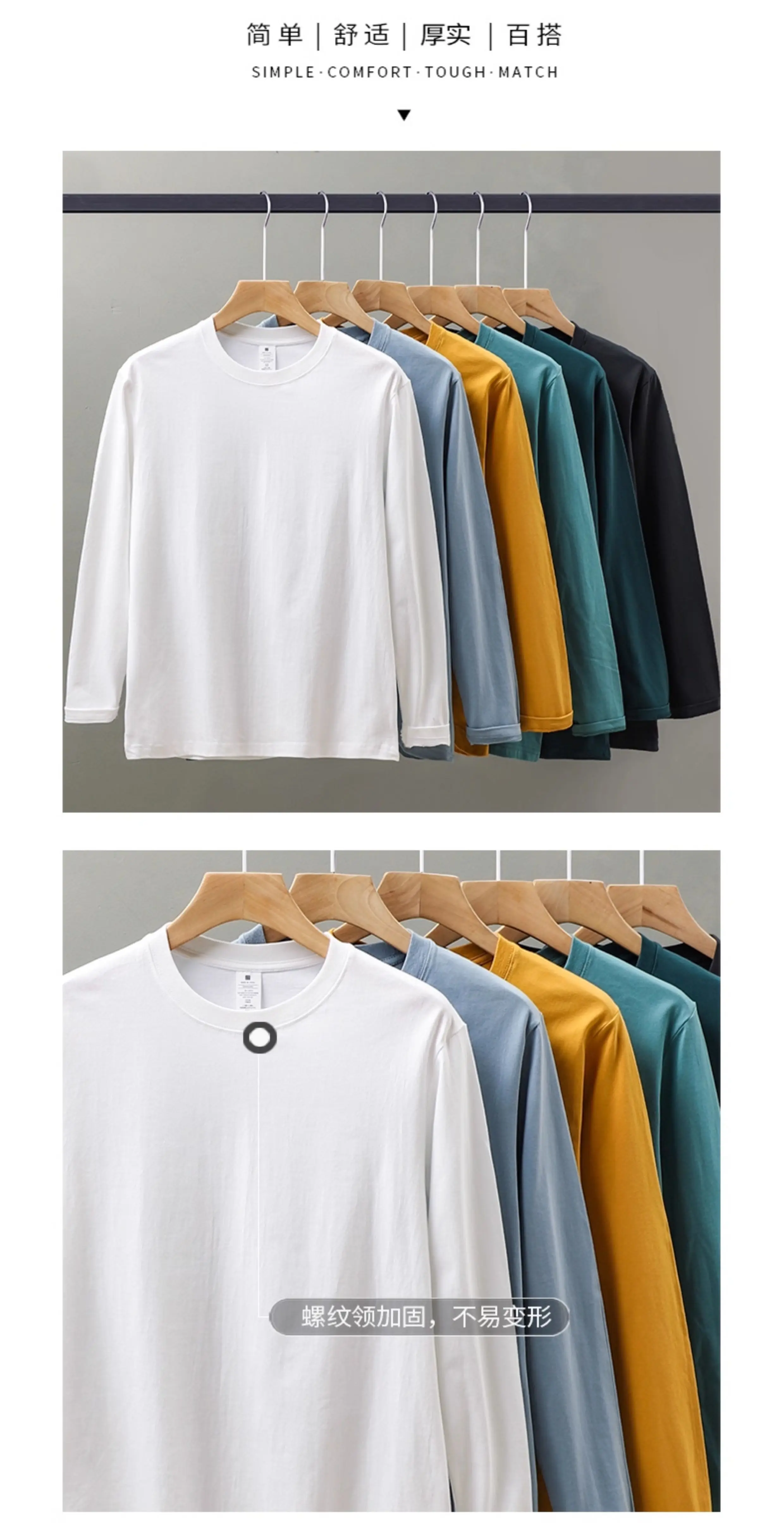 Áo thun dài tay hạng nặng 230g kiểu Mỹ OMZM dành cho nam, mùa xuân và mùa thu, dáng rộng, vai thường, áo sơ mi màu trắng, cotton nguyên chất, áo thun cổ tròn.