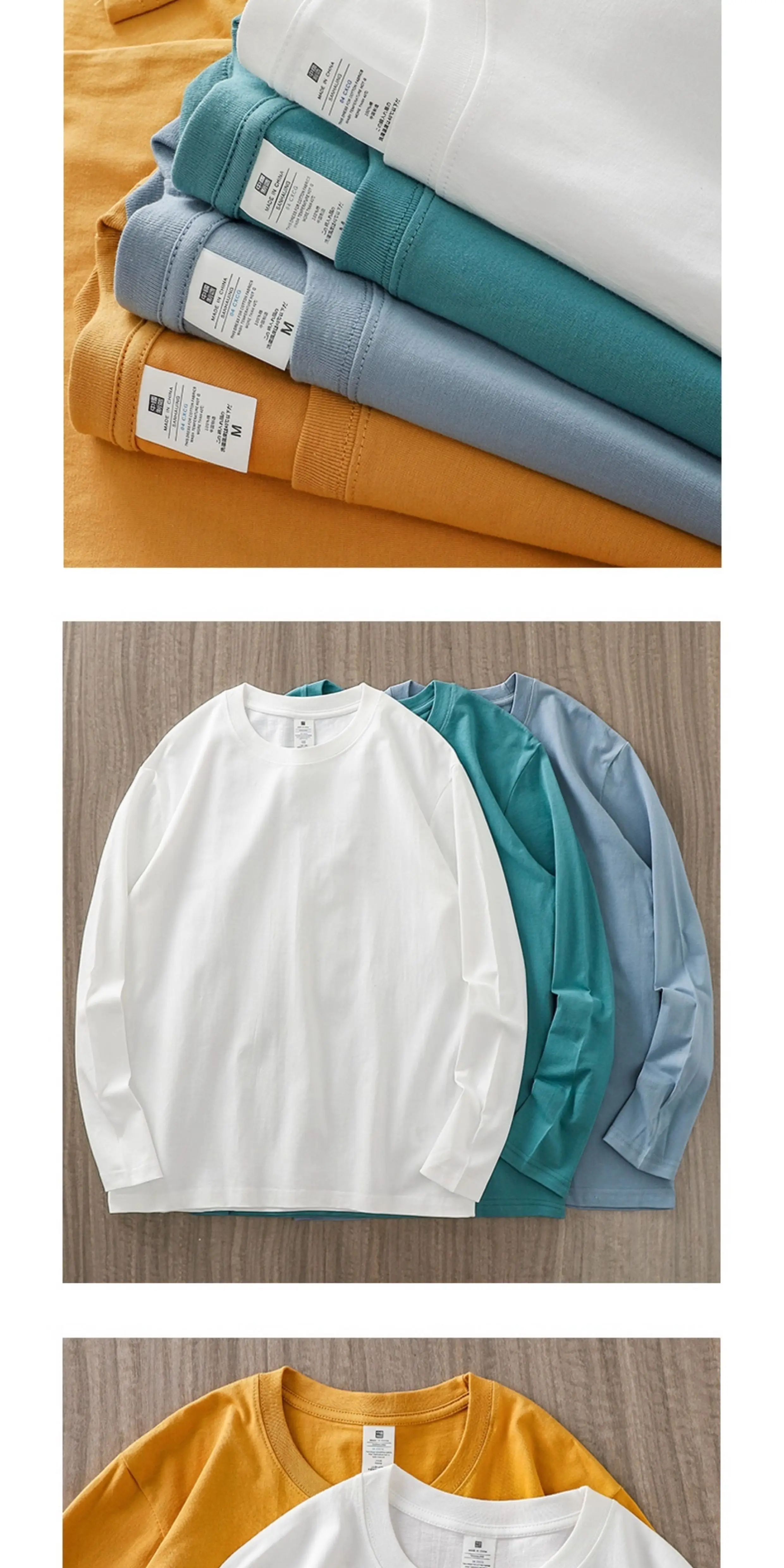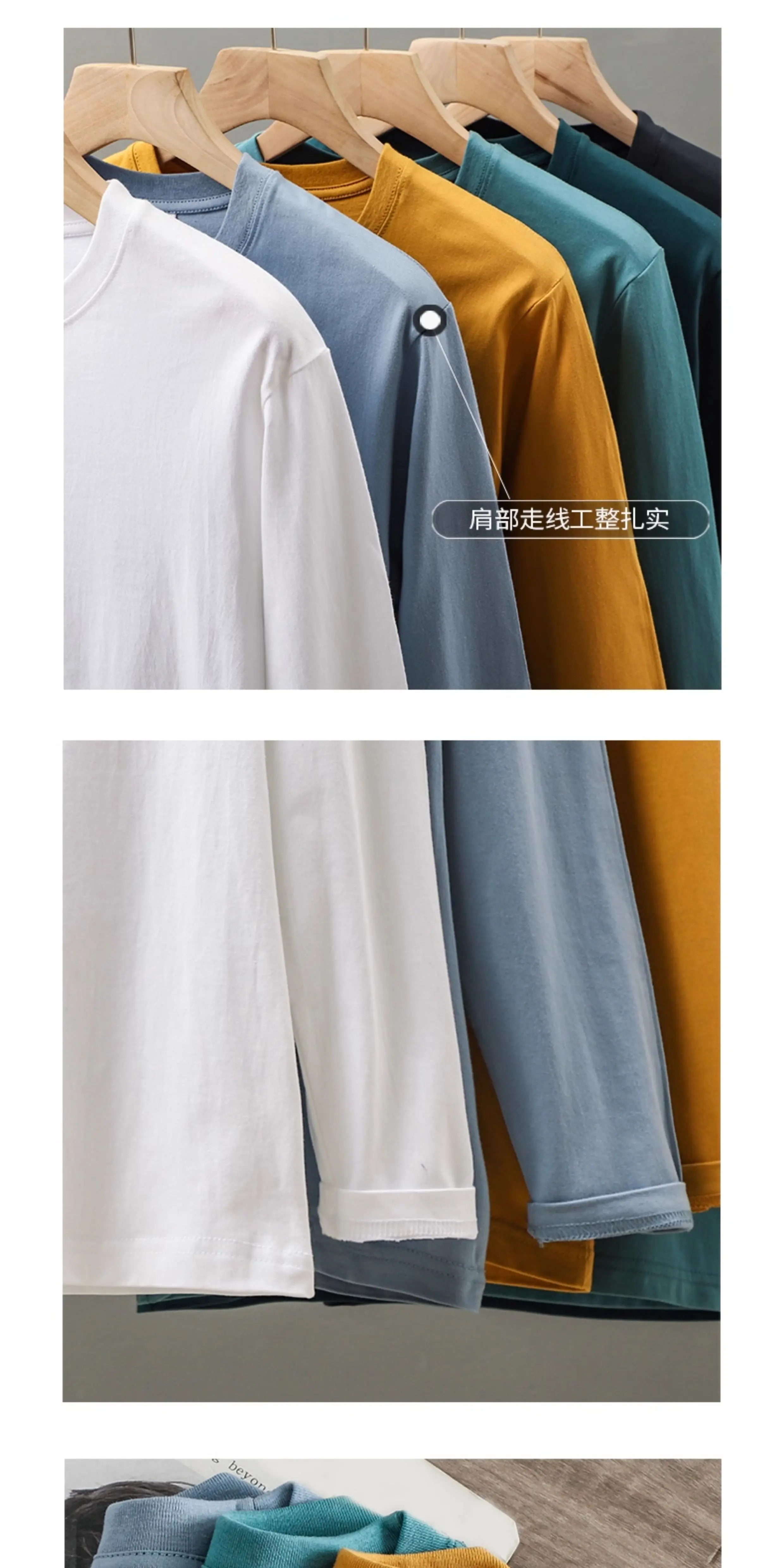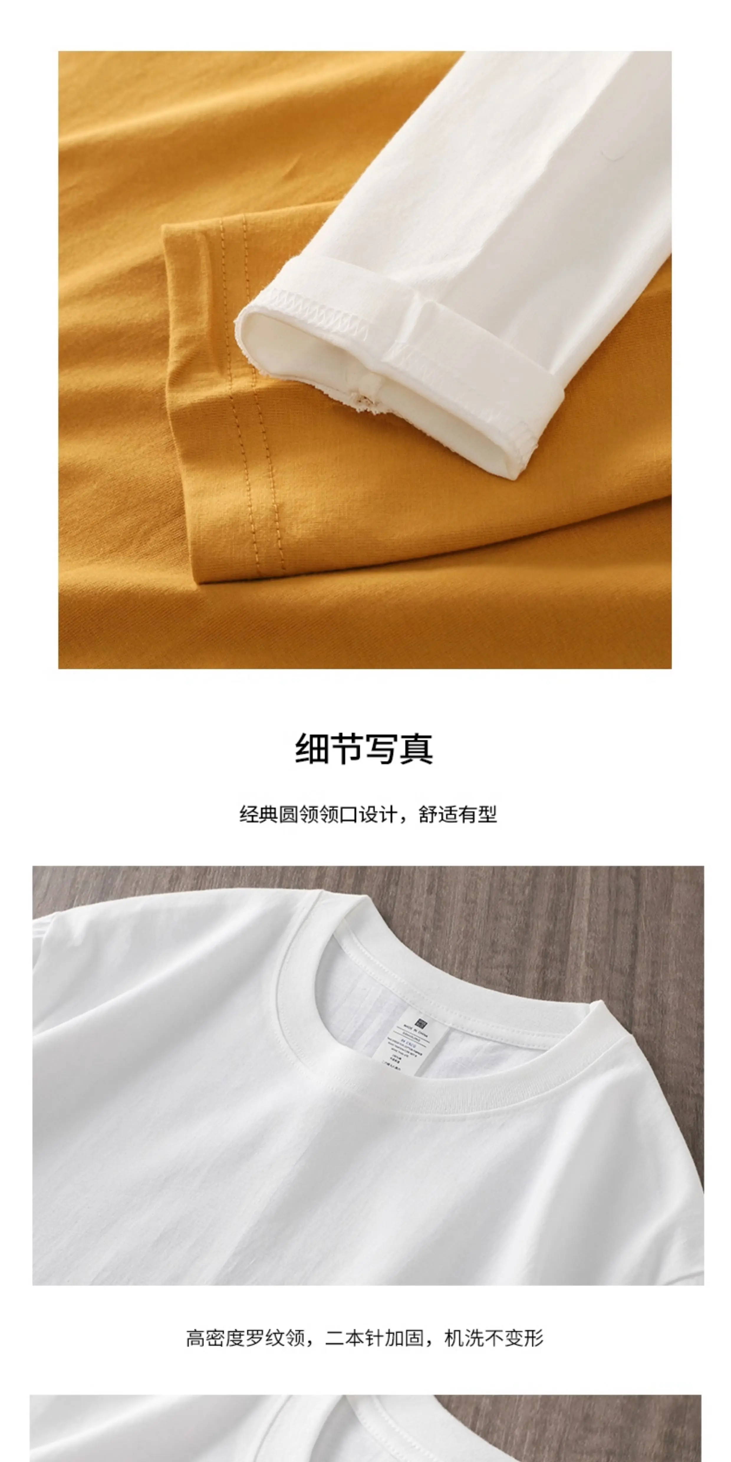 - Áo thun dài tay hạng nặng 230g kiểu Mỹ OMZM dành cho nam, mùa xuân và mùa thu, dáng rộng, vai thường, áo sơ mi màu trắng, cotton nguyên chất, áo thun cổ tròn.