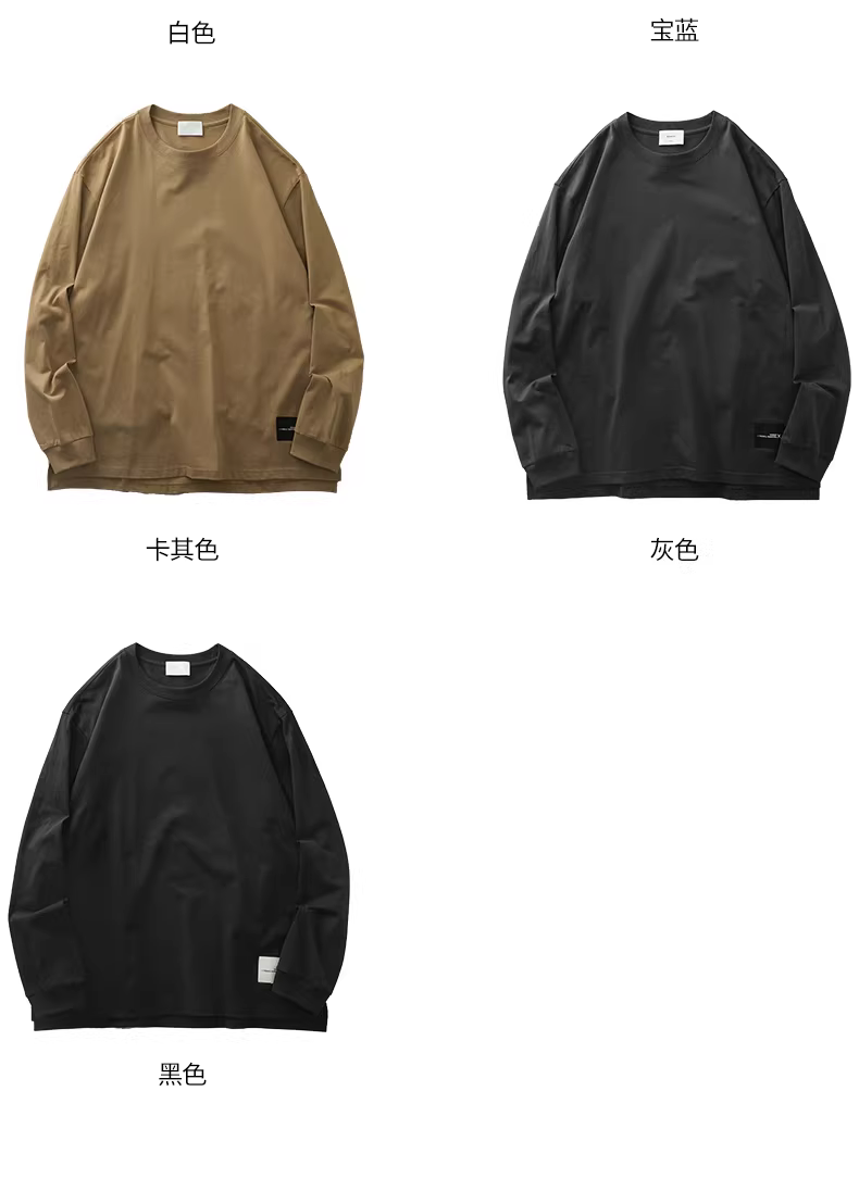 - Áo thun dài tay hạng nặng 260g kiểu Mỹ thuần túy dành cho nam, áo sơ mi cổ tròn bằng cotton nguyên chất mùa xuân và mùa thu, áo sơ mi cơ bản có lớp lót bên trong, thương hiệu thời thượng dành cho thanh thiếu niên.