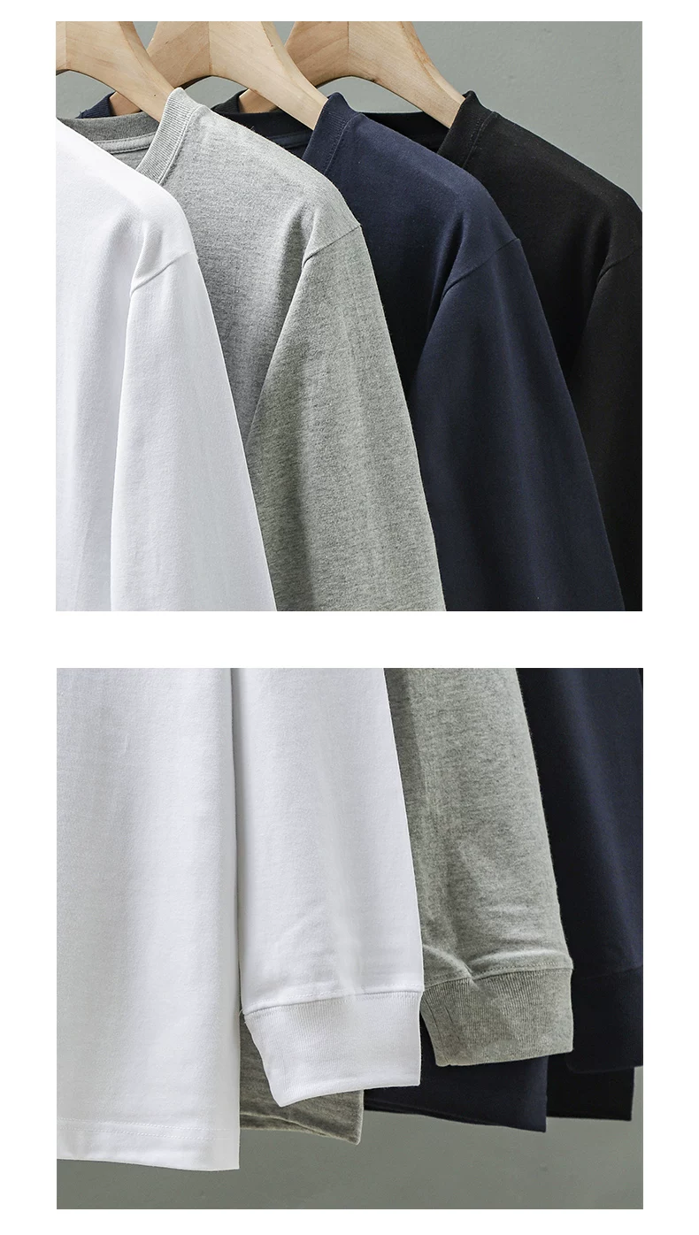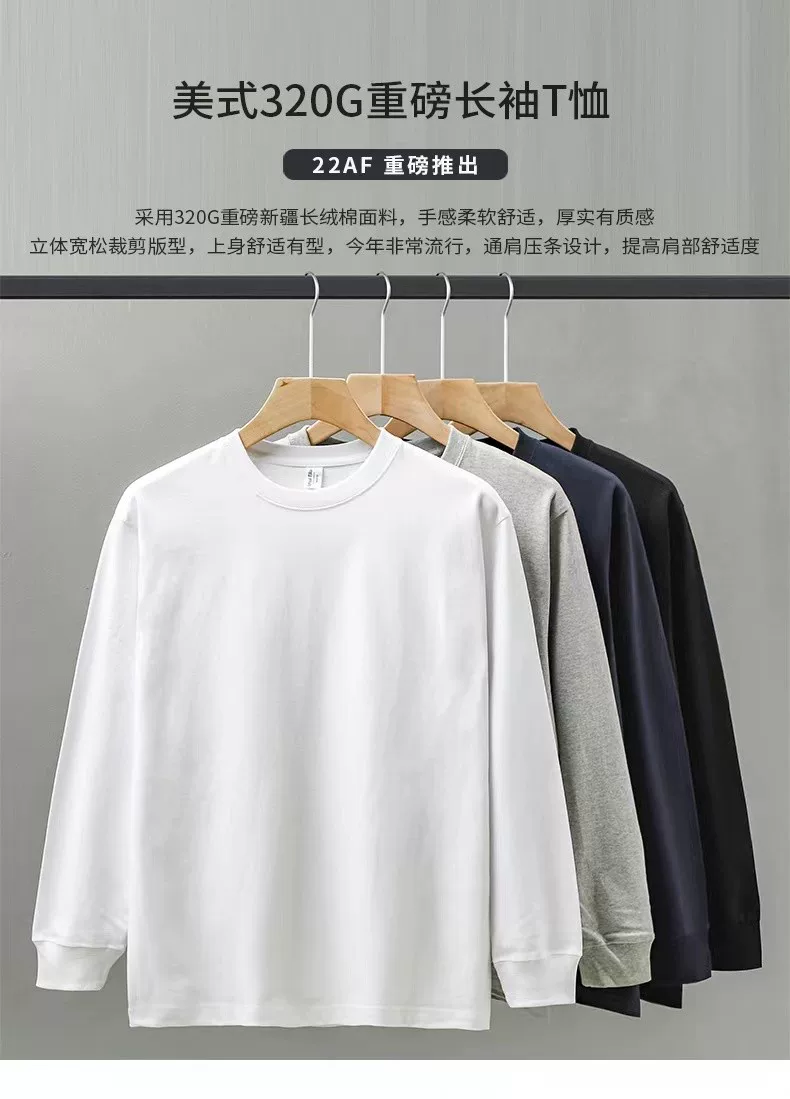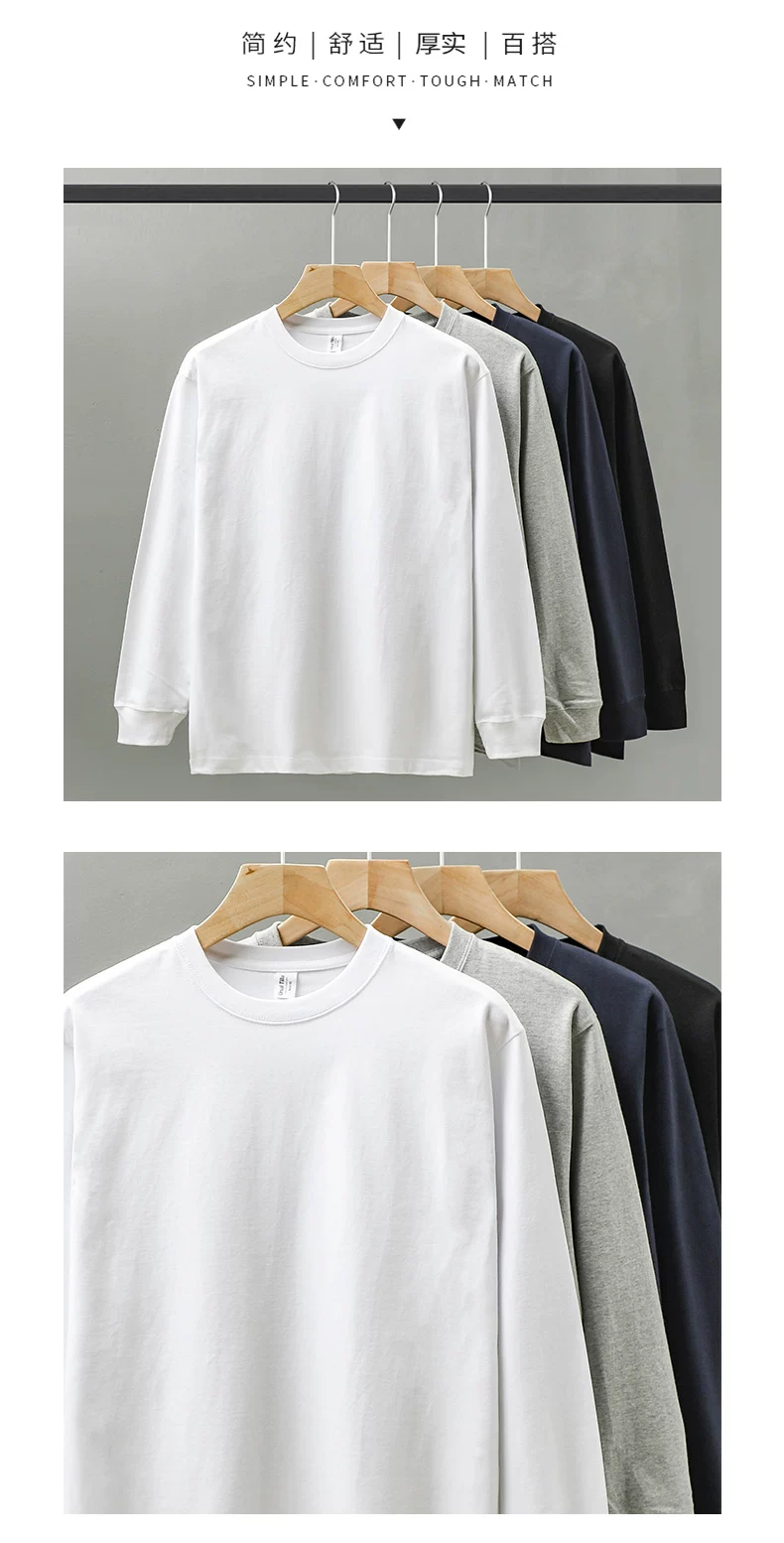 - Áo thun dài tay hạng nặng 320G kiểu Mỹ dành cho nam, áo sơ mi cotton thuần chất mùa thu đông, áo thun cổ tròn rộng rãi chất liệu cotton dài sợi Tân Cương