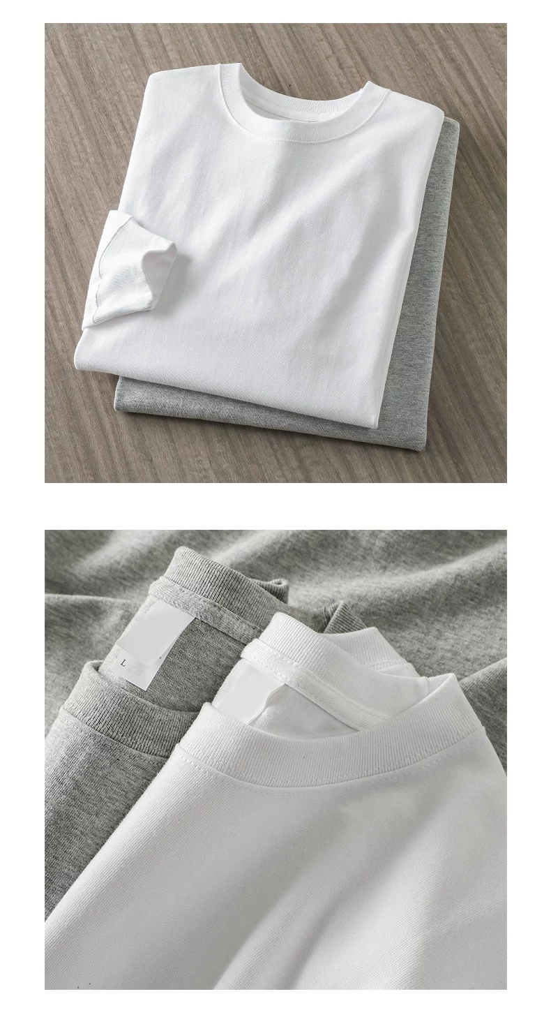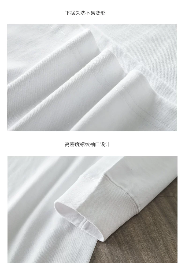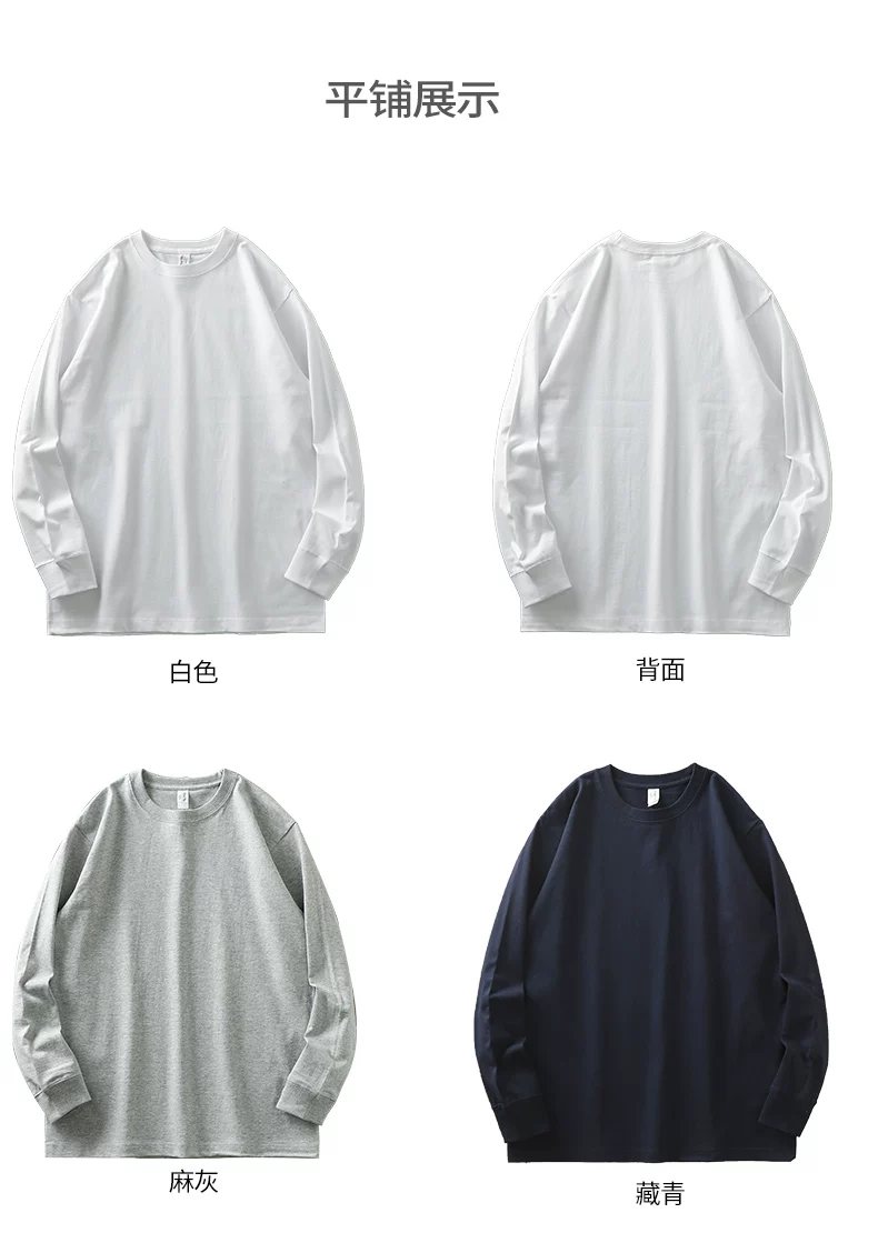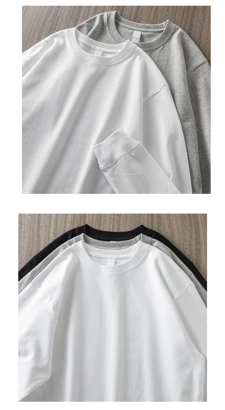 - Áo thun dài tay hạng nặng 320G kiểu Mỹ dành cho nam, áo sơ mi cotton thuần chất mùa thu đông, áo thun cổ tròn rộng rãi chất liệu cotton dài sợi Tân Cương