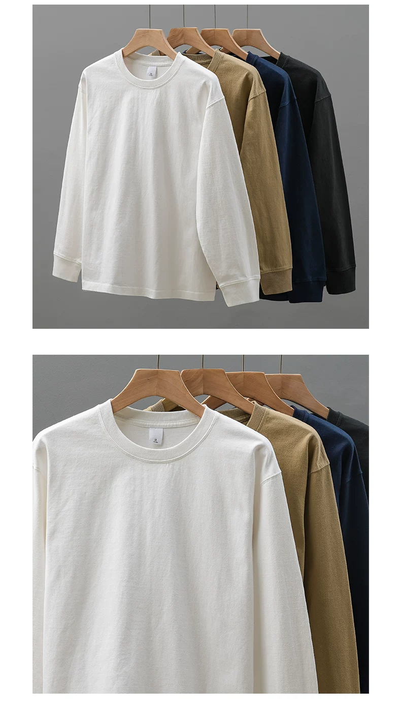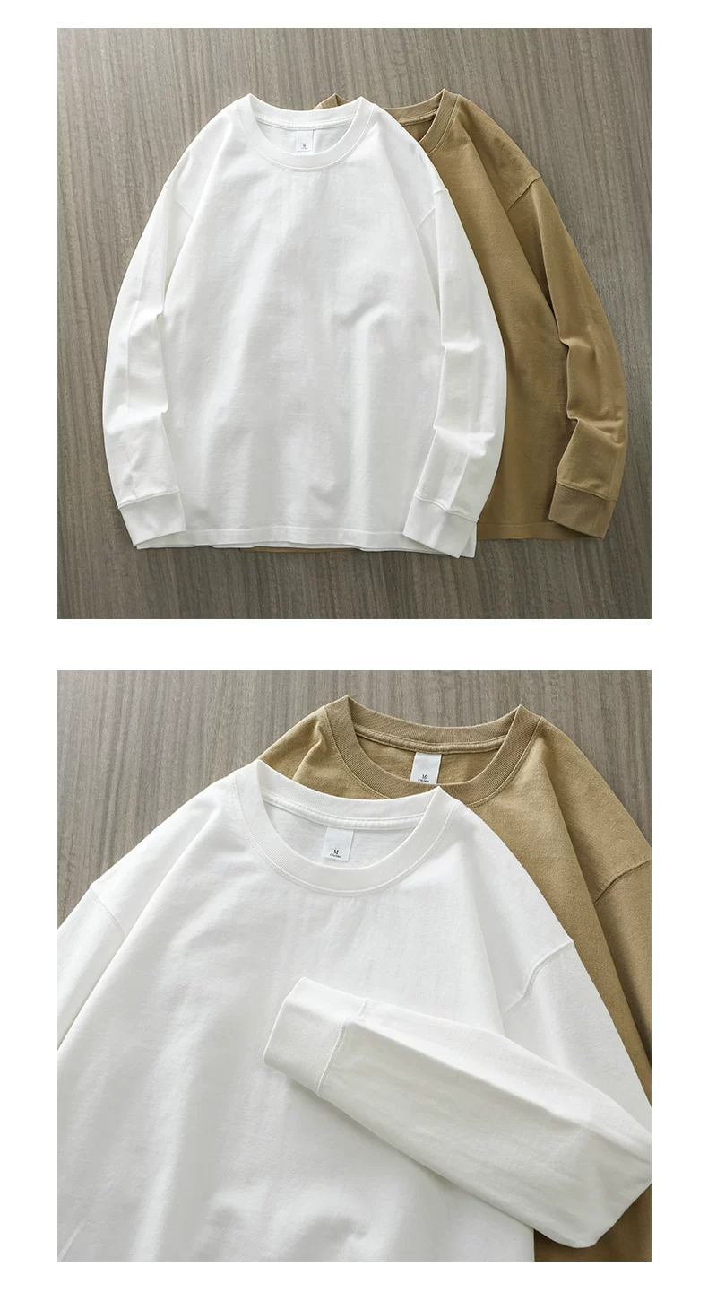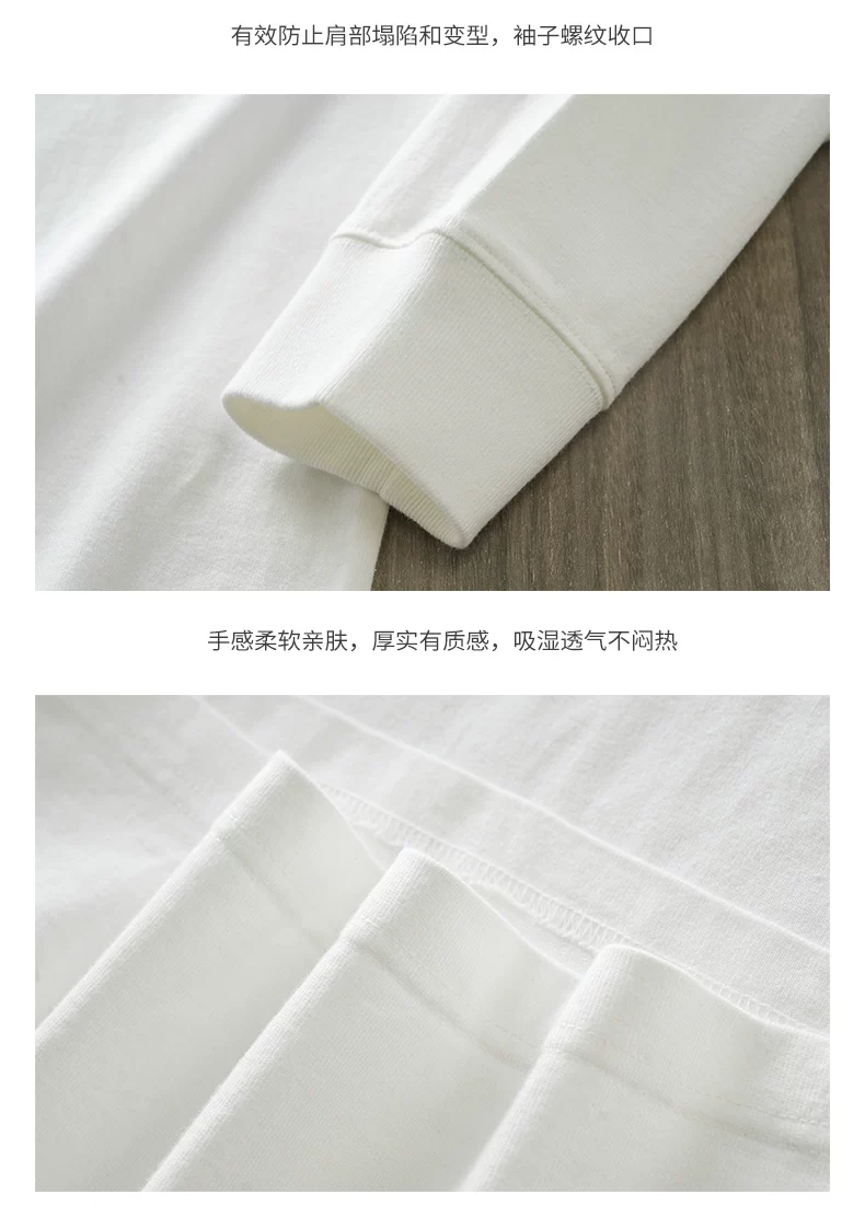Áo thun dài tay hạng nặng 400G dành cho nam và nữ, áo sơ mi cơ bản màu trắng tinh khiết dành cho mùa thu, áo len cổ tròn cổ nhỏ kiểu Mỹ.