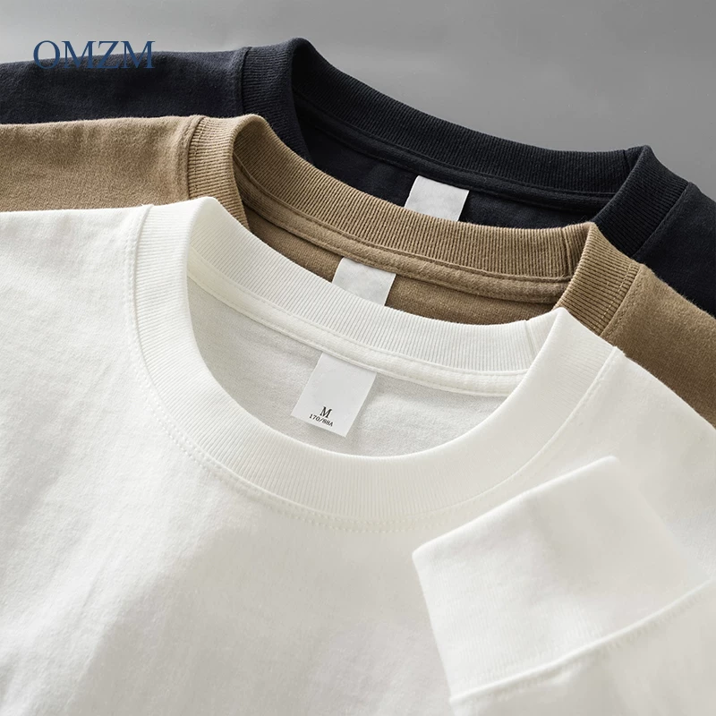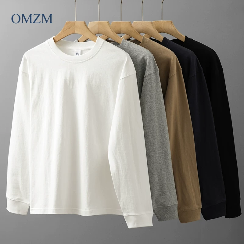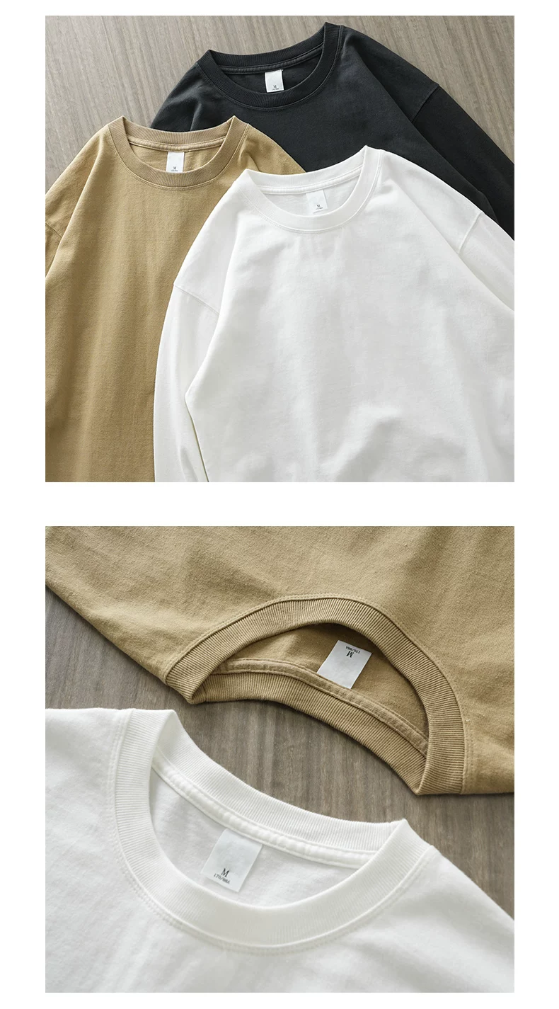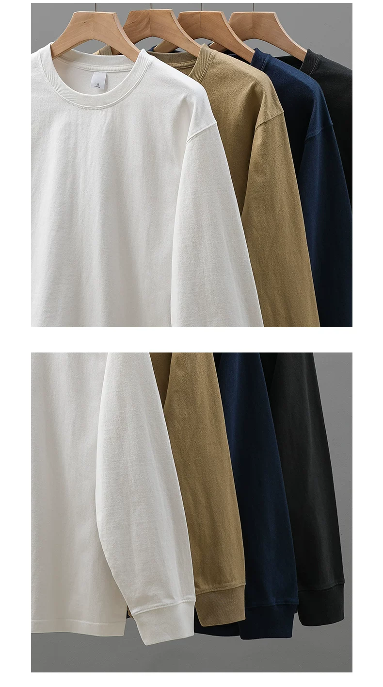 Áo thun dài tay hạng nặng 400G dành cho nam và nữ, áo sơ mi cơ bản màu trắng tinh khiết dành cho mùa thu, áo len cổ tròn cổ nhỏ kiểu Mỹ.