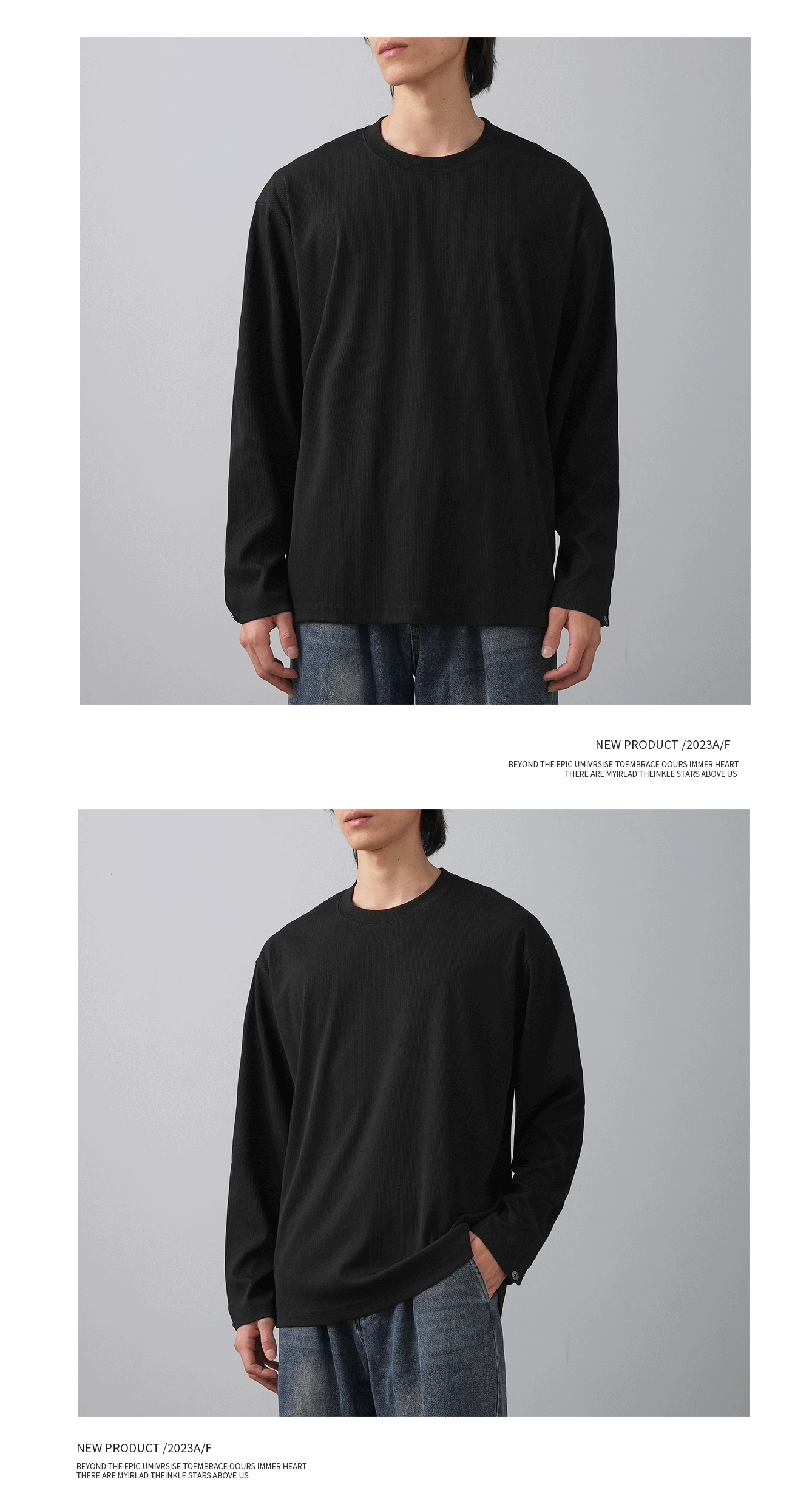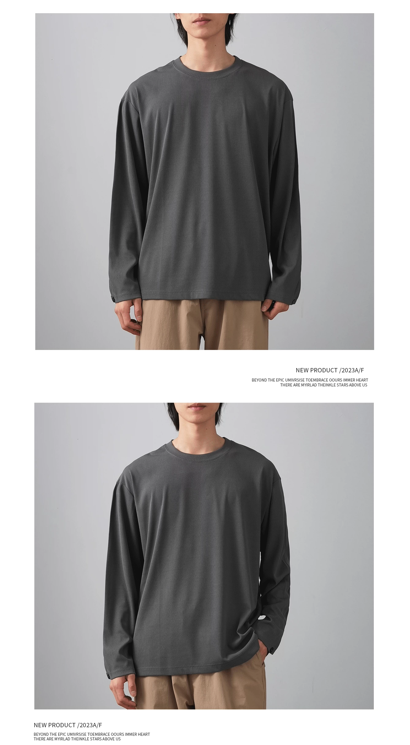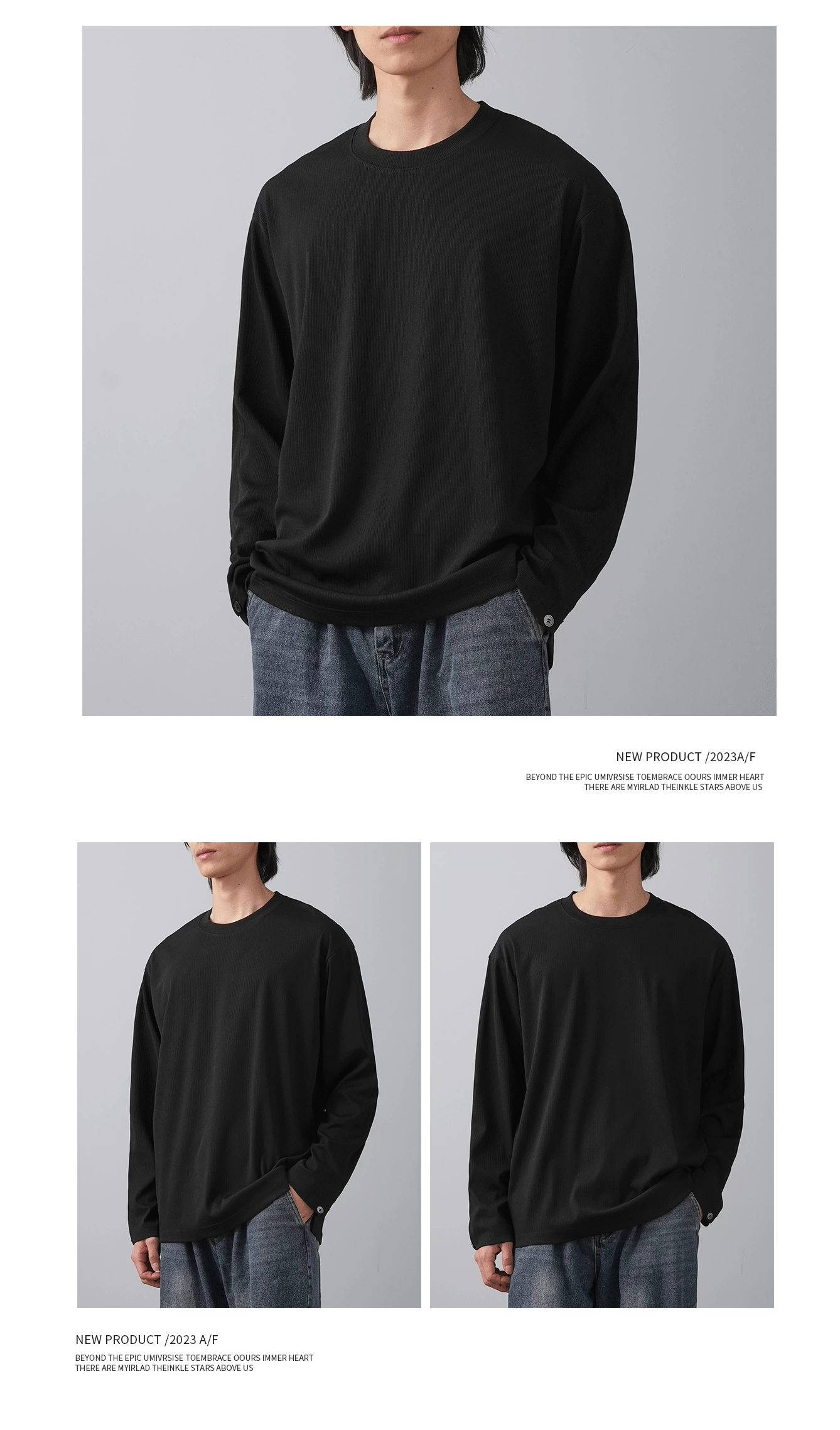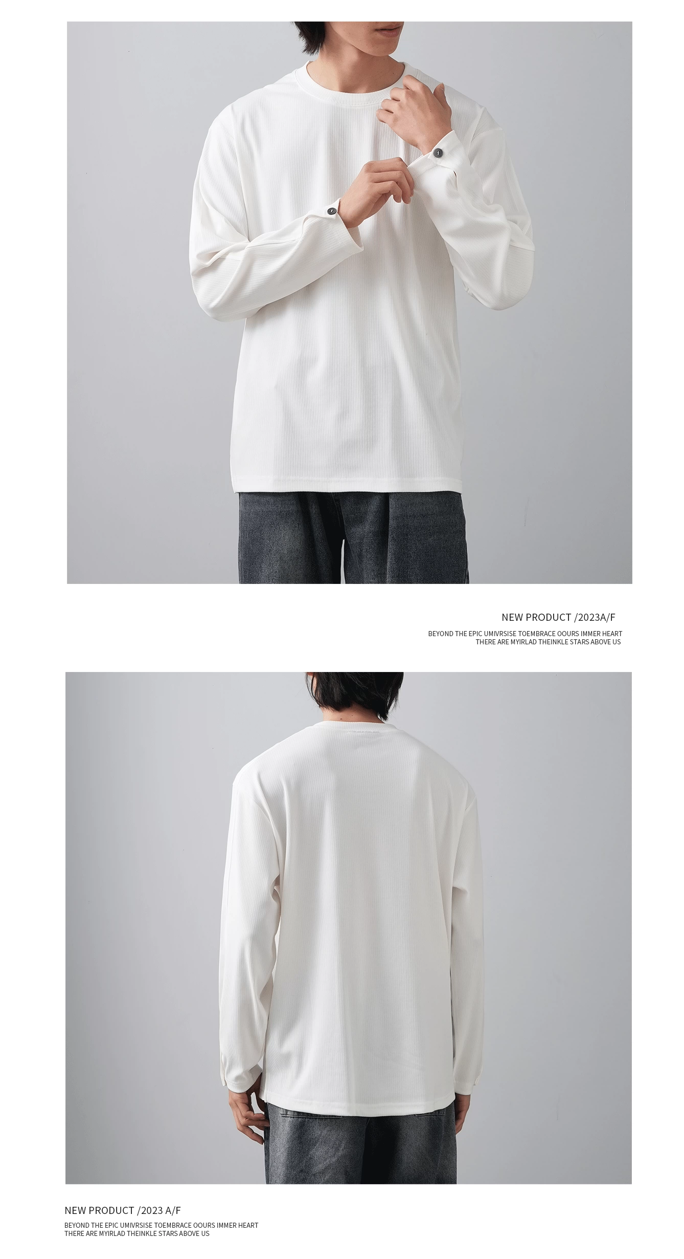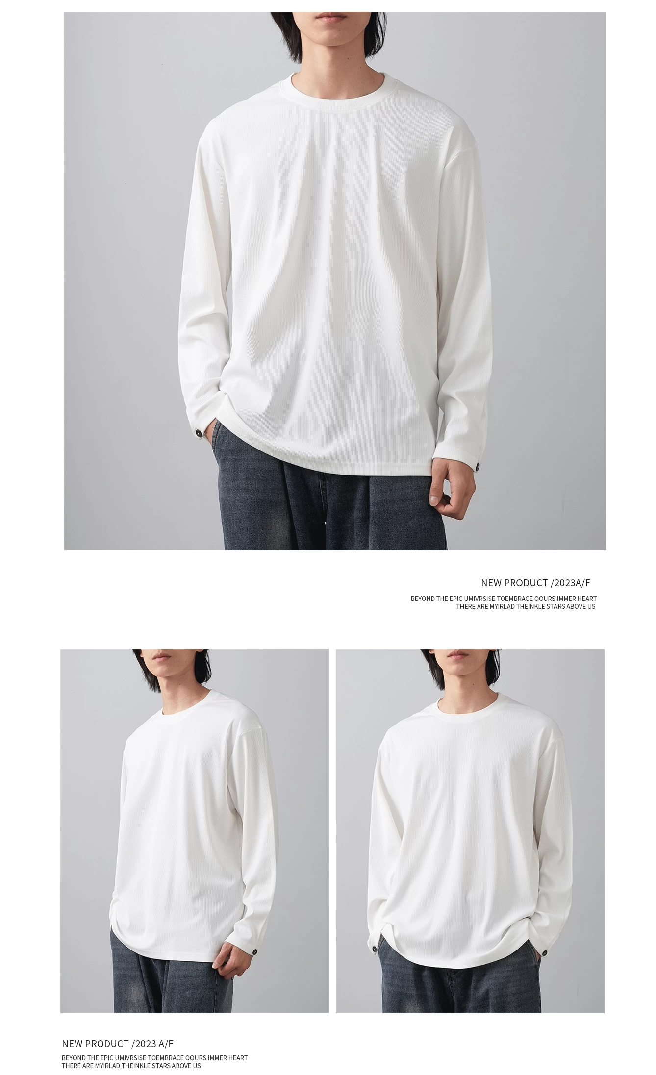 Áo thun dài tay jacquard hạng nặng 260G phong cách Mỹ OMZM dành cho nam, áo sơ mi màu trắng trơn mùa xuân, áo chui đầu cổ tròn