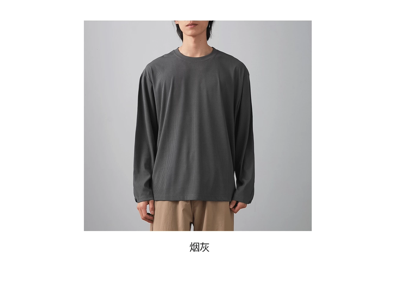 - Áo thun dài tay jacquard hạng nặng 260G phong cách Mỹ OMZM dành cho nam, áo sơ mi màu trắng trơn mùa xuân, áo chui đầu cổ tròn