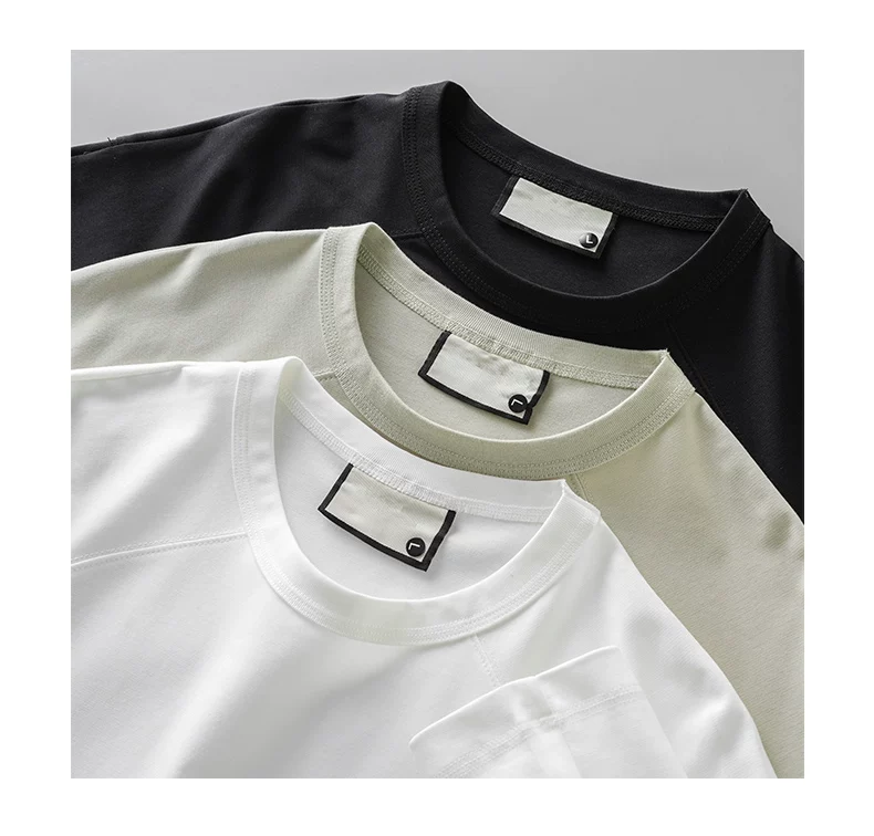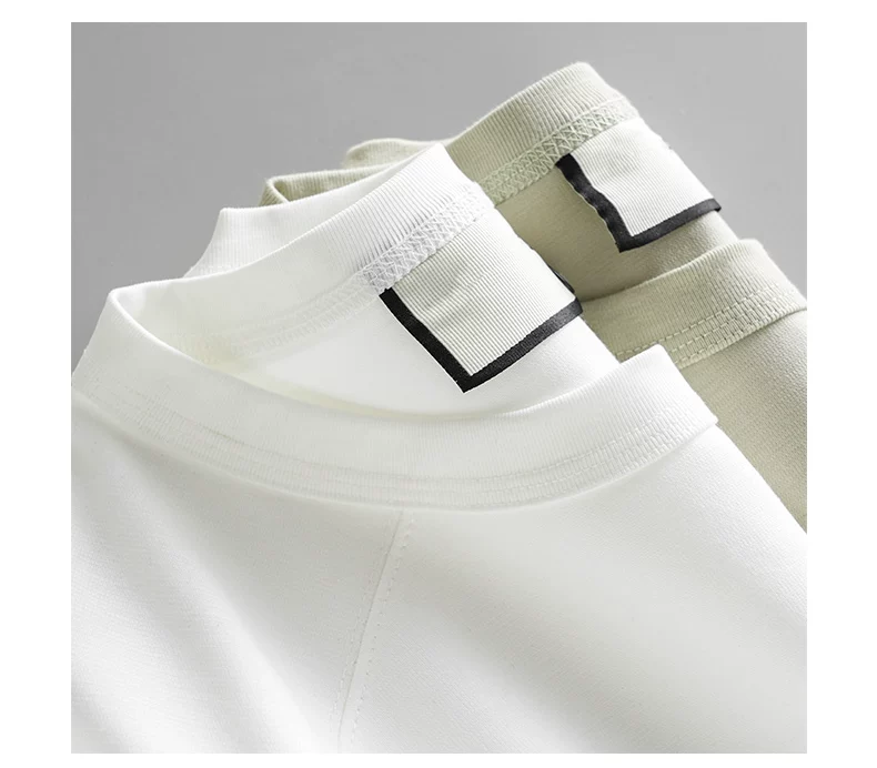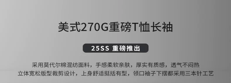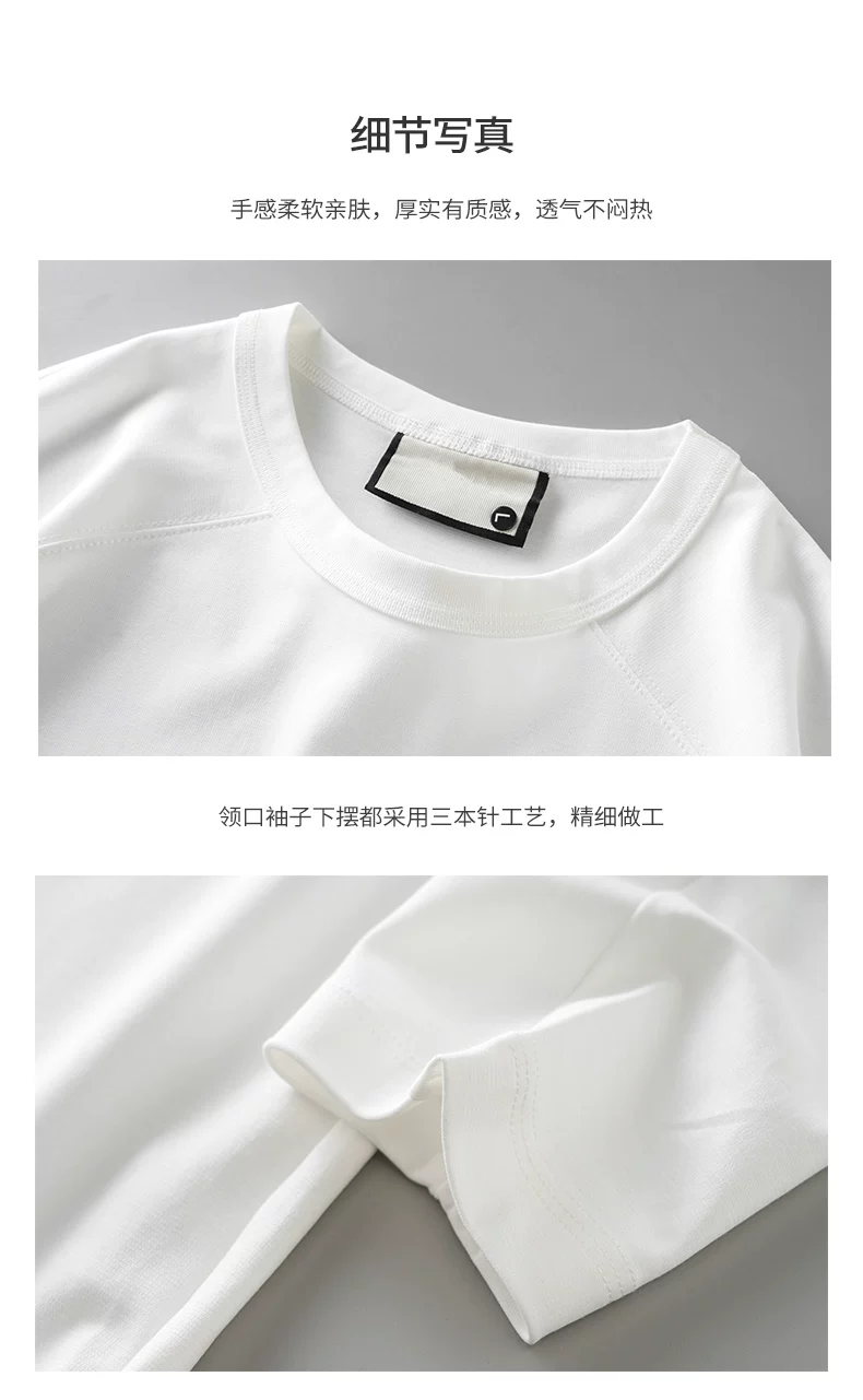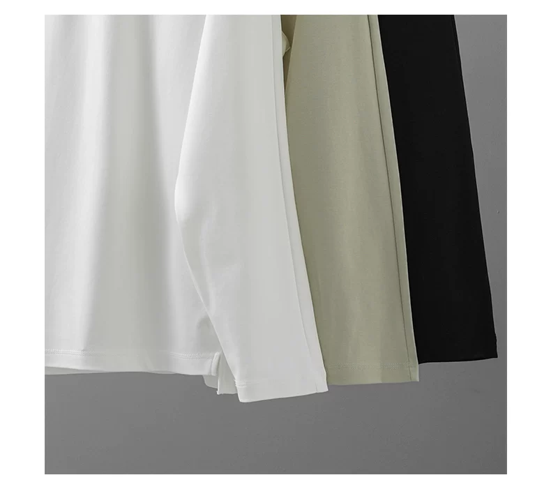 - Áo thun dài tay modal hạng nặng OMZM270G dành cho nam và nữ, mùa xuân thu, dệt ba sợi, cổ tròn, áo sơ mi màu trắng tinh khiết.