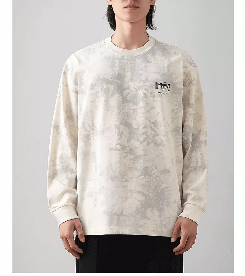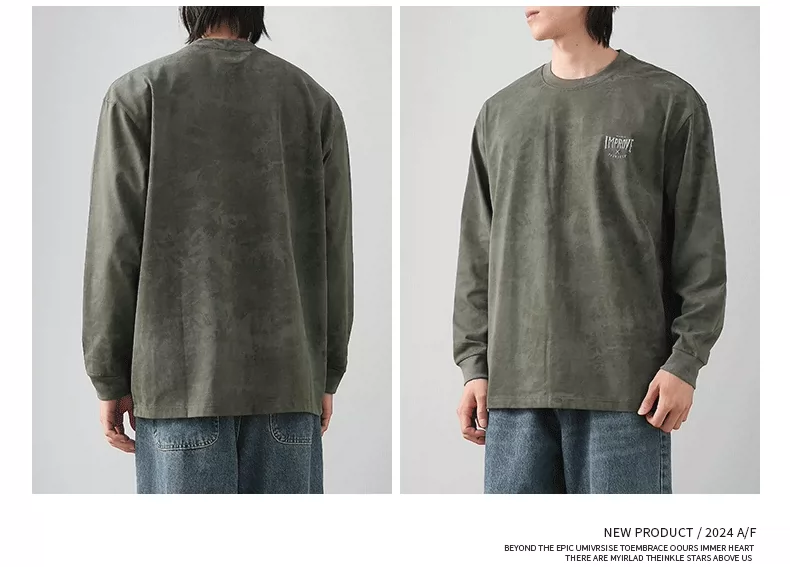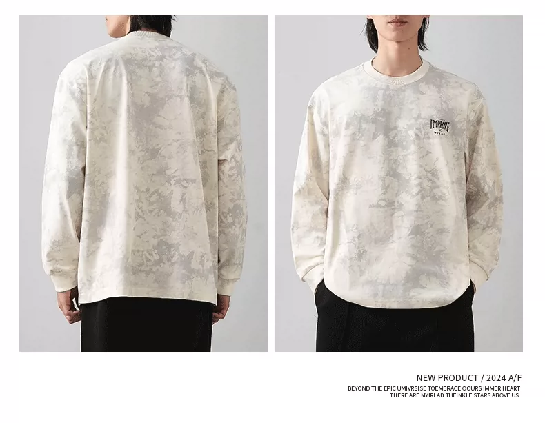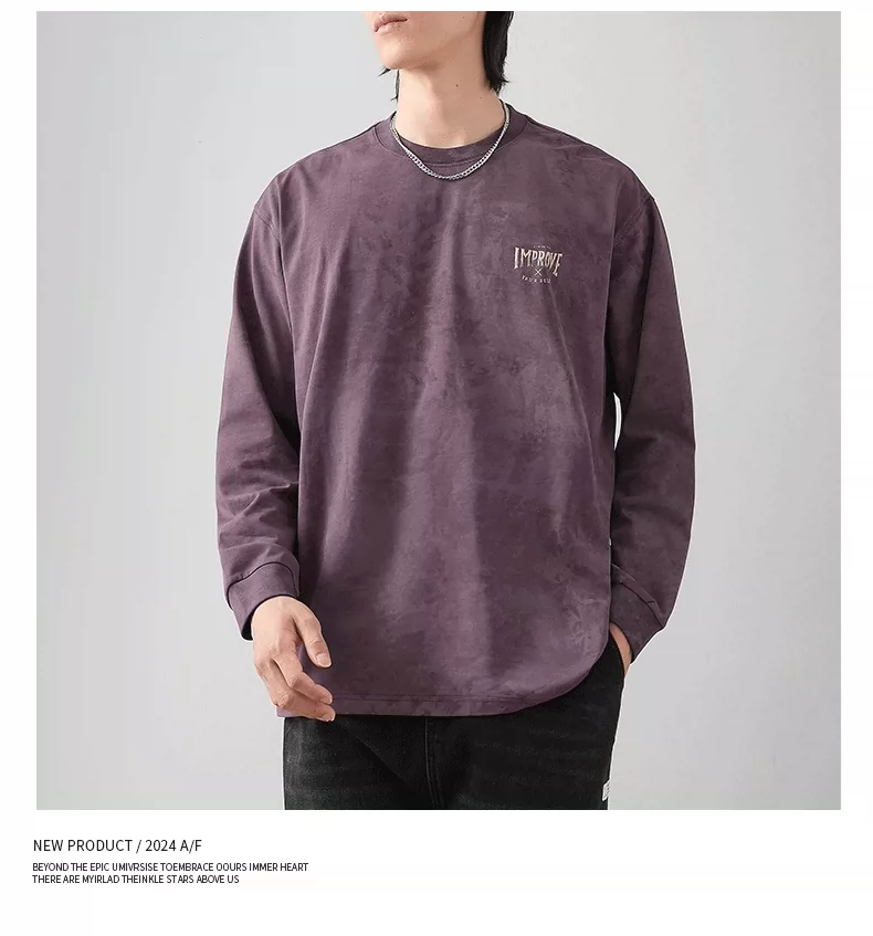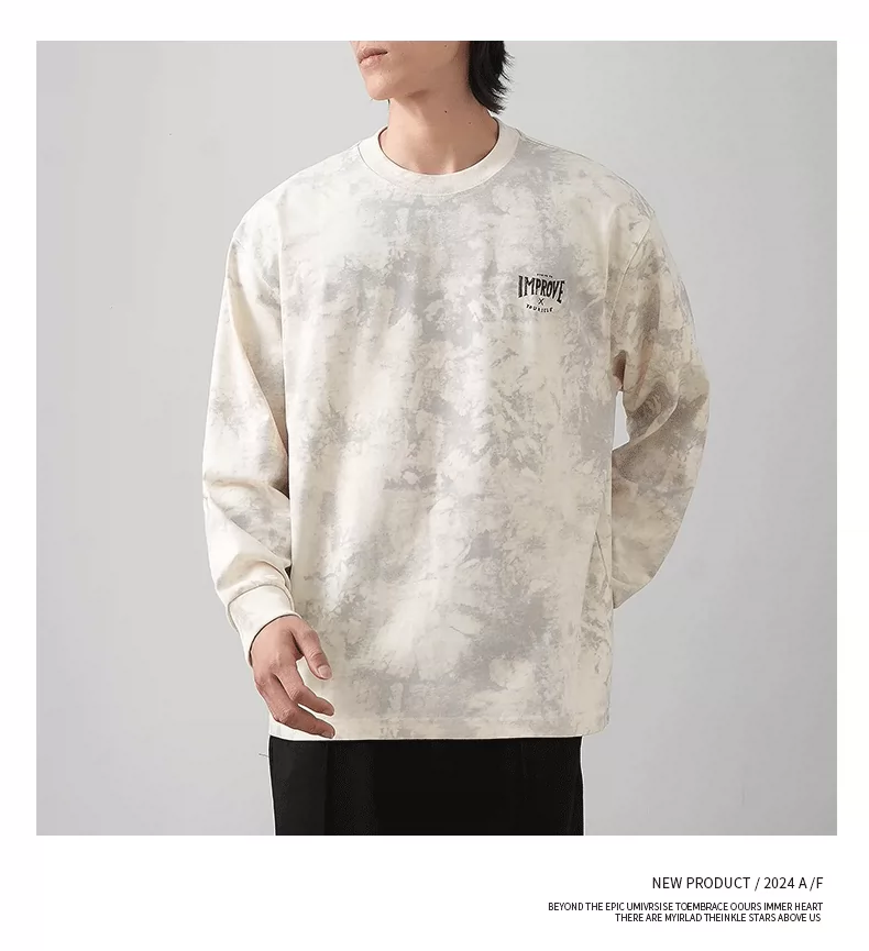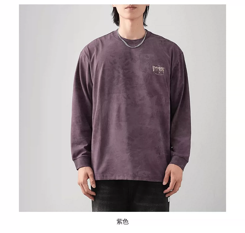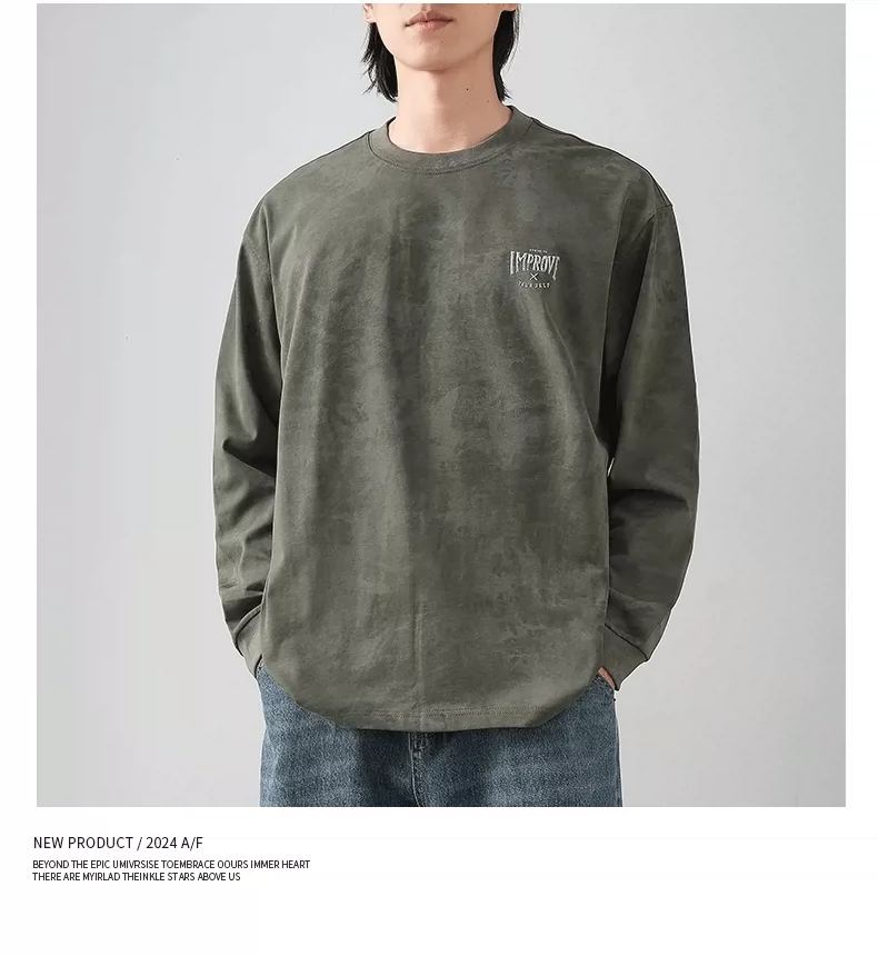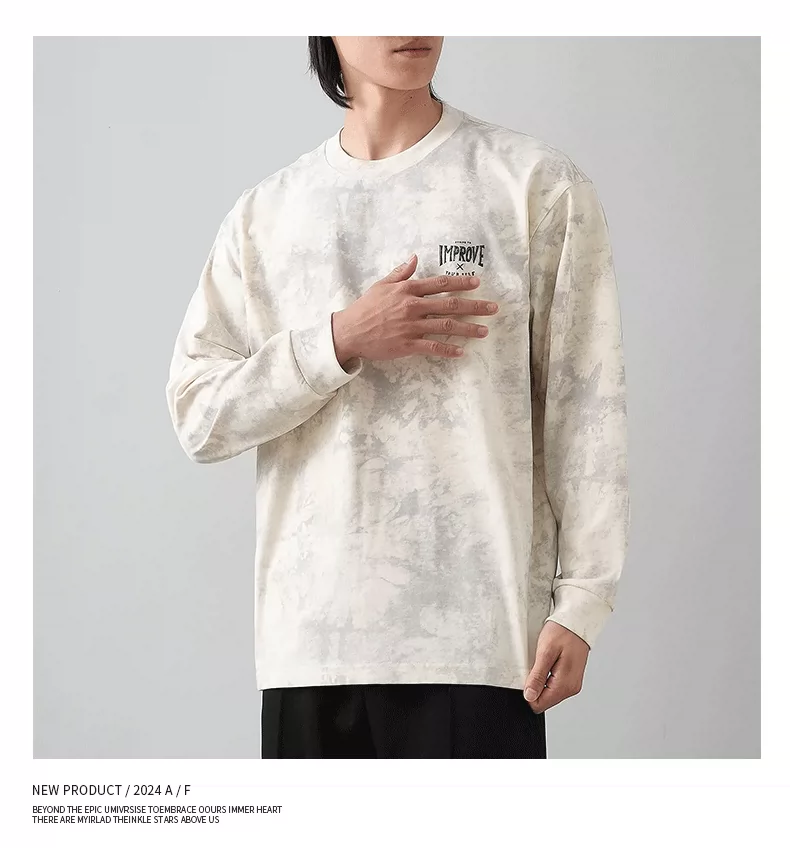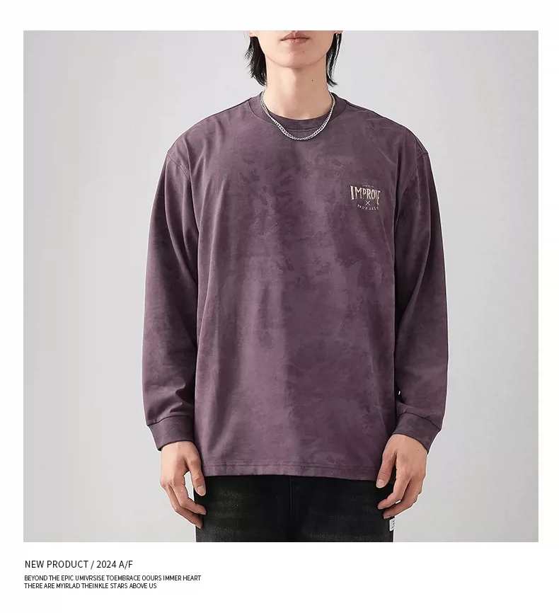 - Áo thun dài tay nhuộm màu kiểu Mỹ OMZM 270G dành cho nam, áo sơ mi cổ tròn dáng rộng mùa thu có in chữ