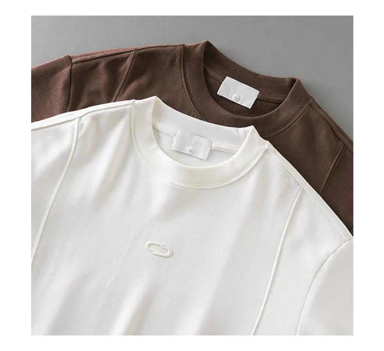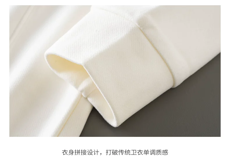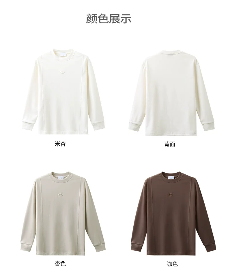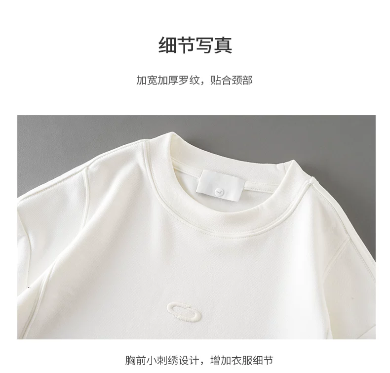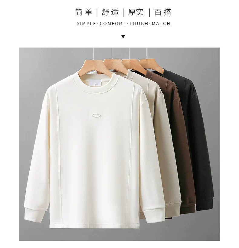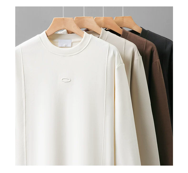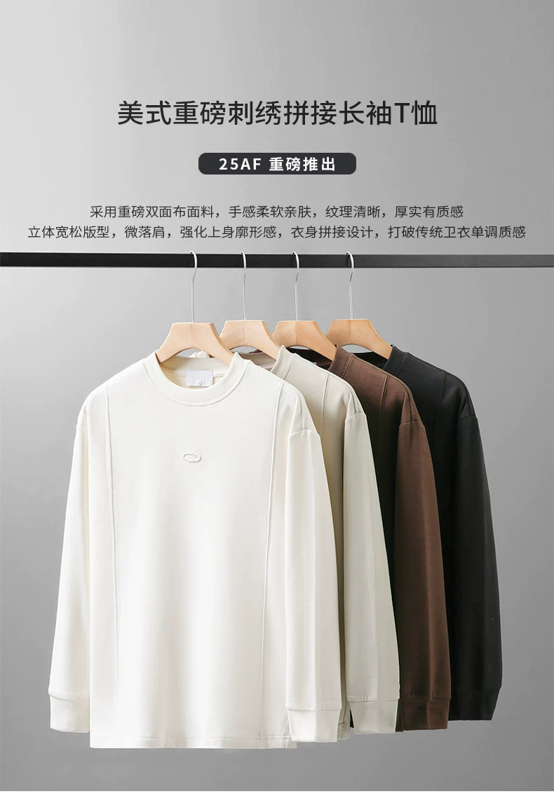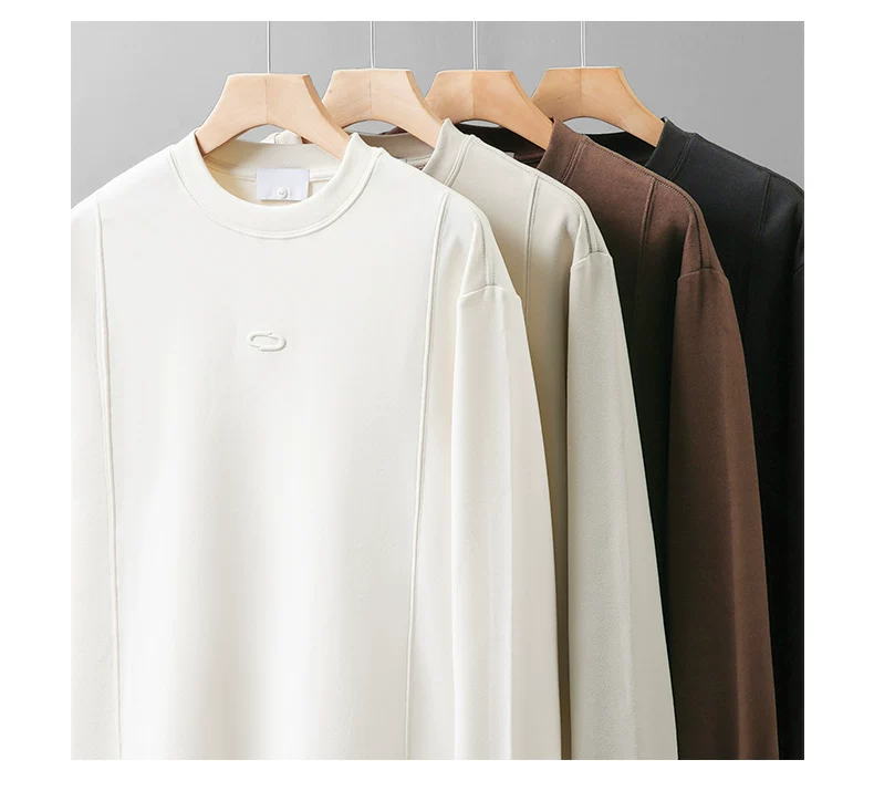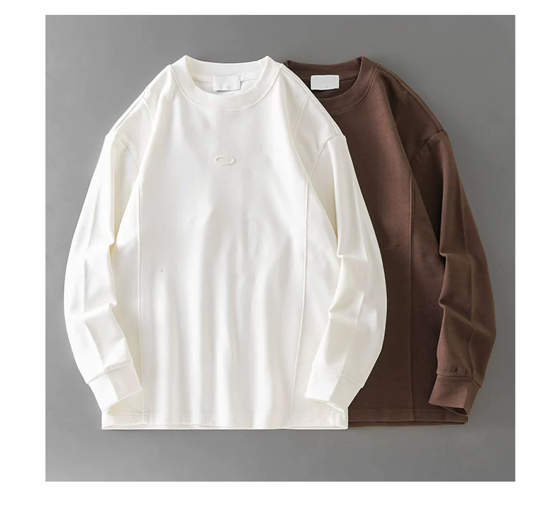 - Áo thun dài tay thêu nặng OMZM dành cho nam, áo len cổ tròn dáng rộng màu trắng phong cách Mỹ mùa thu