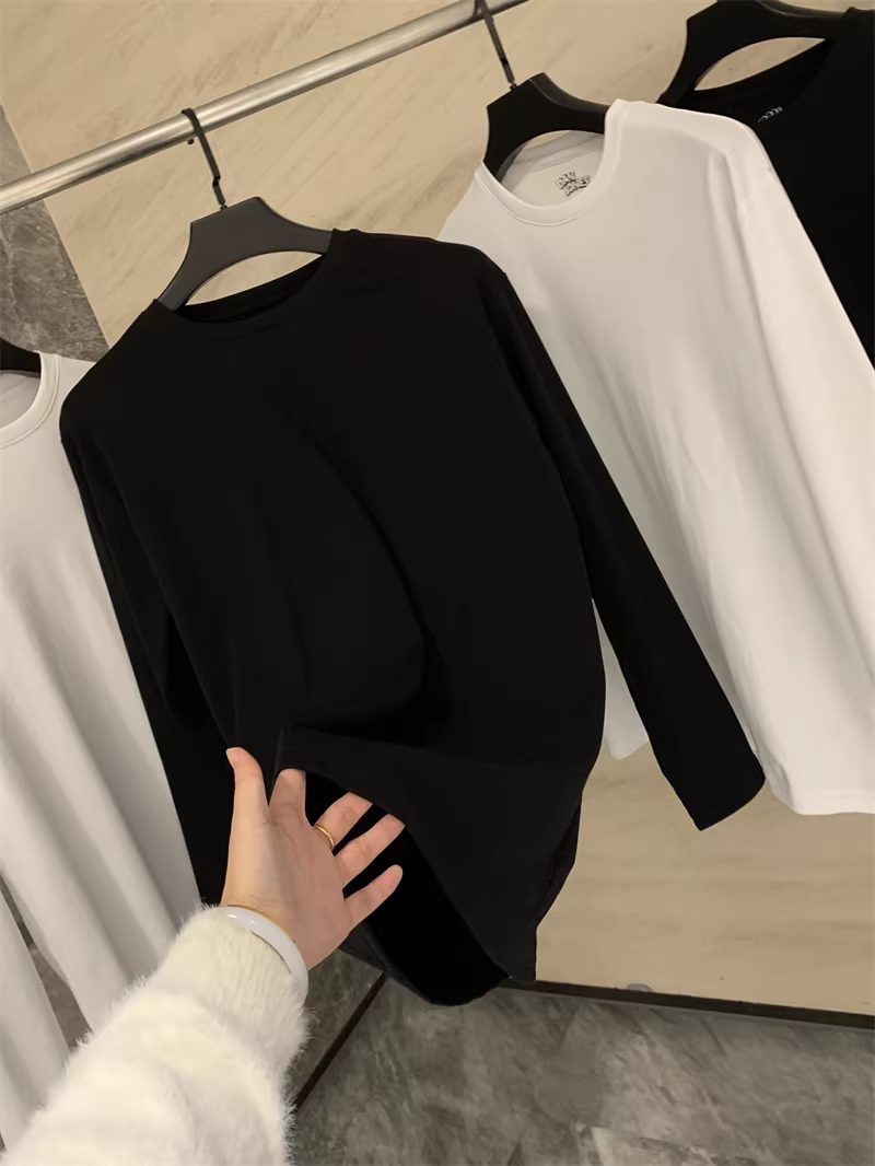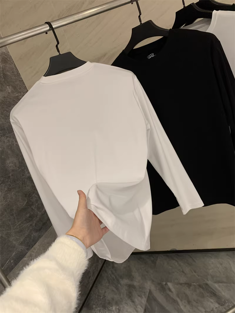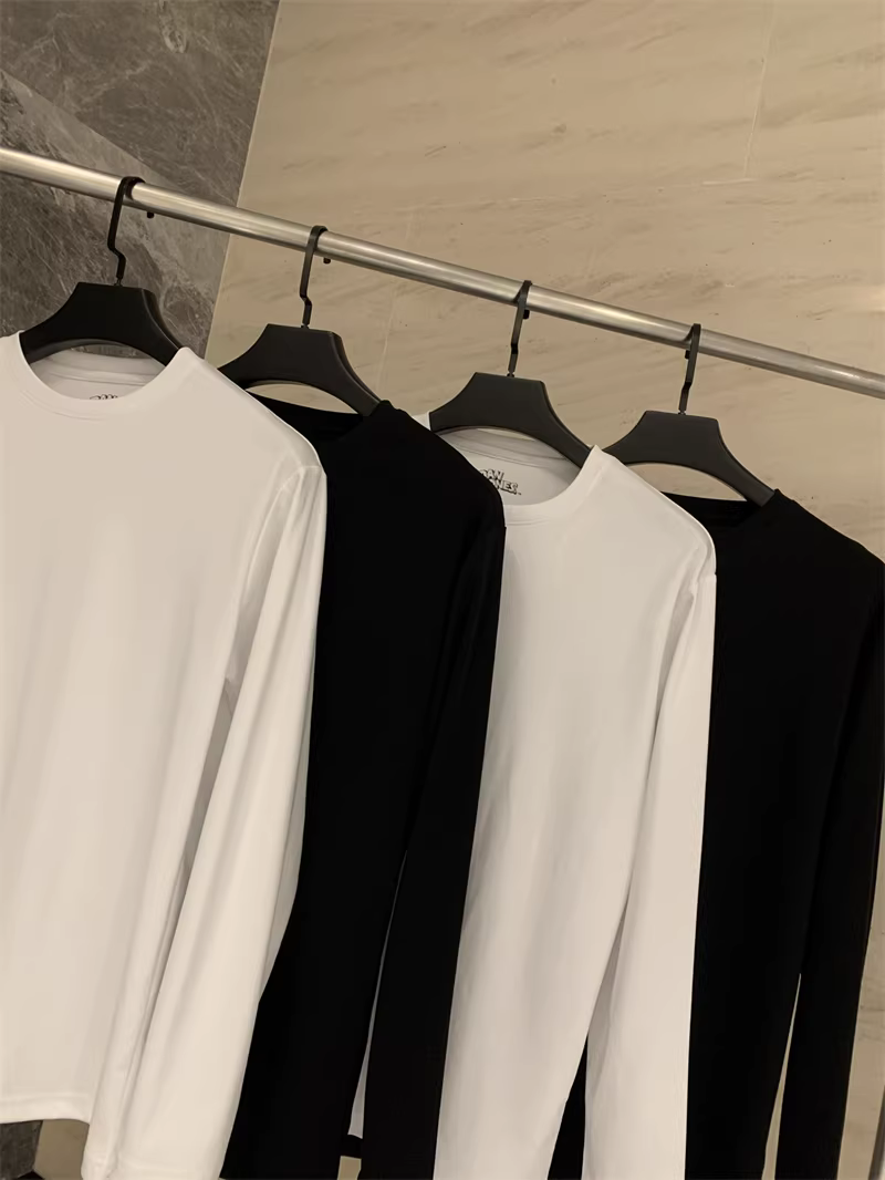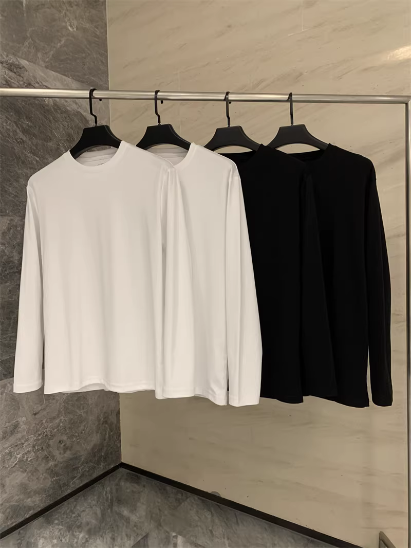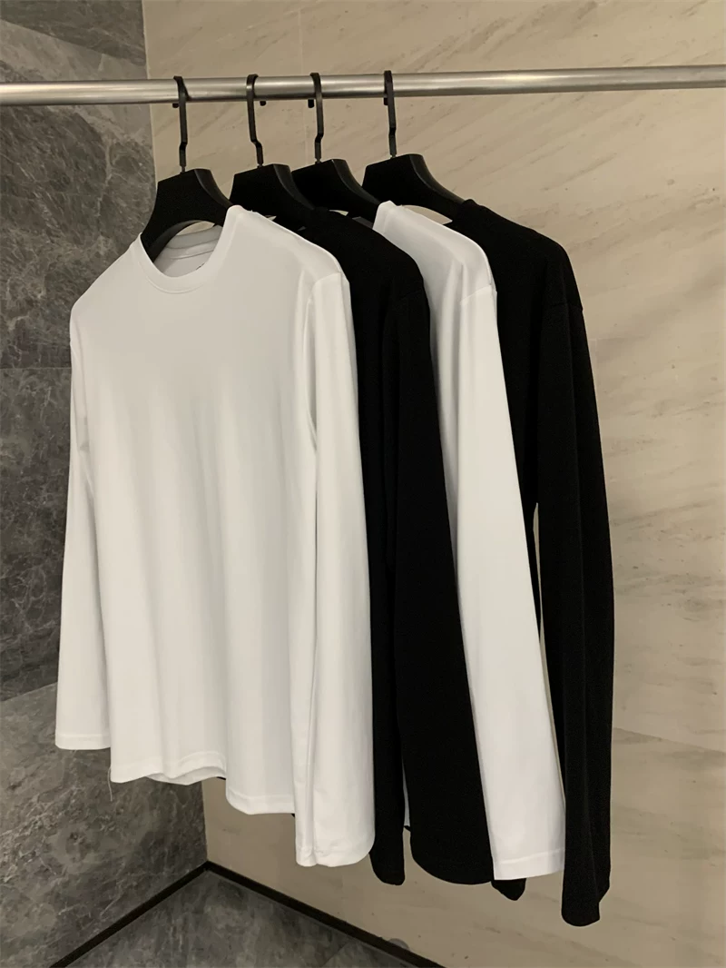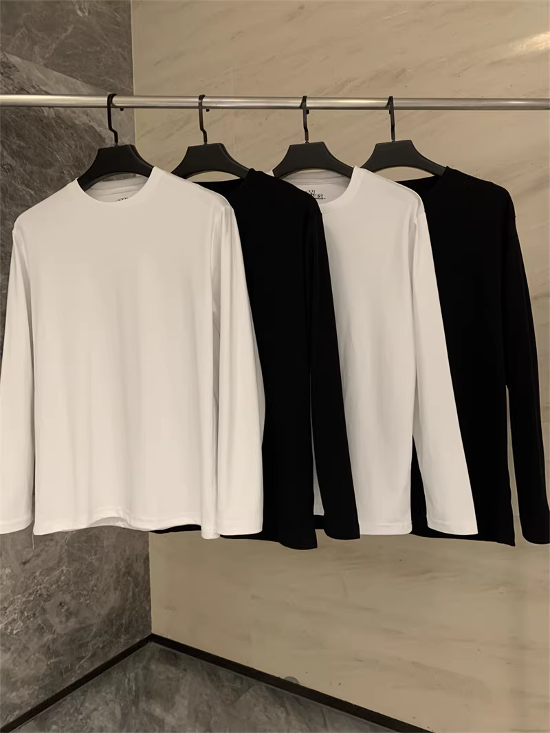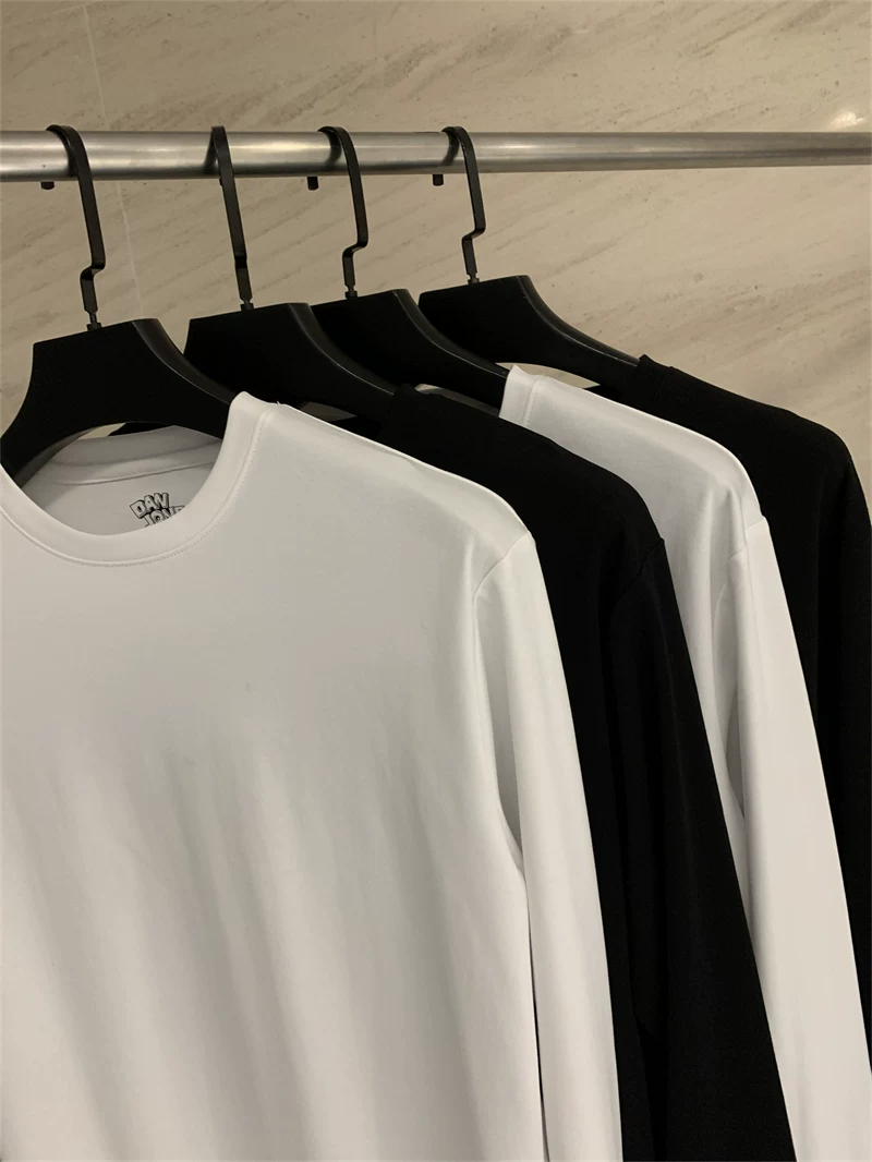 Áo thun Don Quixote thoáng khí, nhanh khô, co giãn! Màu đen/trắng trơn, kiểu dáng thể thao, đa năng, cổ tròn, tay dài.