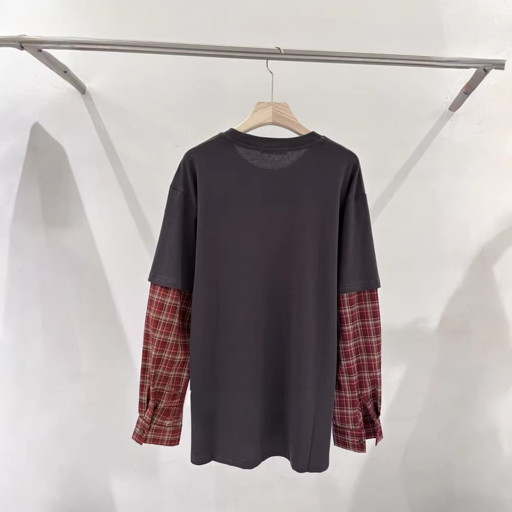 - Áo thun hai mảnh in hình chó con phong cách Hàn Quốc dành cho bé trai và bé gái, mùa xuân và mùa thu, áo chắp vá kẻ sọc thông thường đa năng dành cho trẻ lớn và cỡ nhỏ.