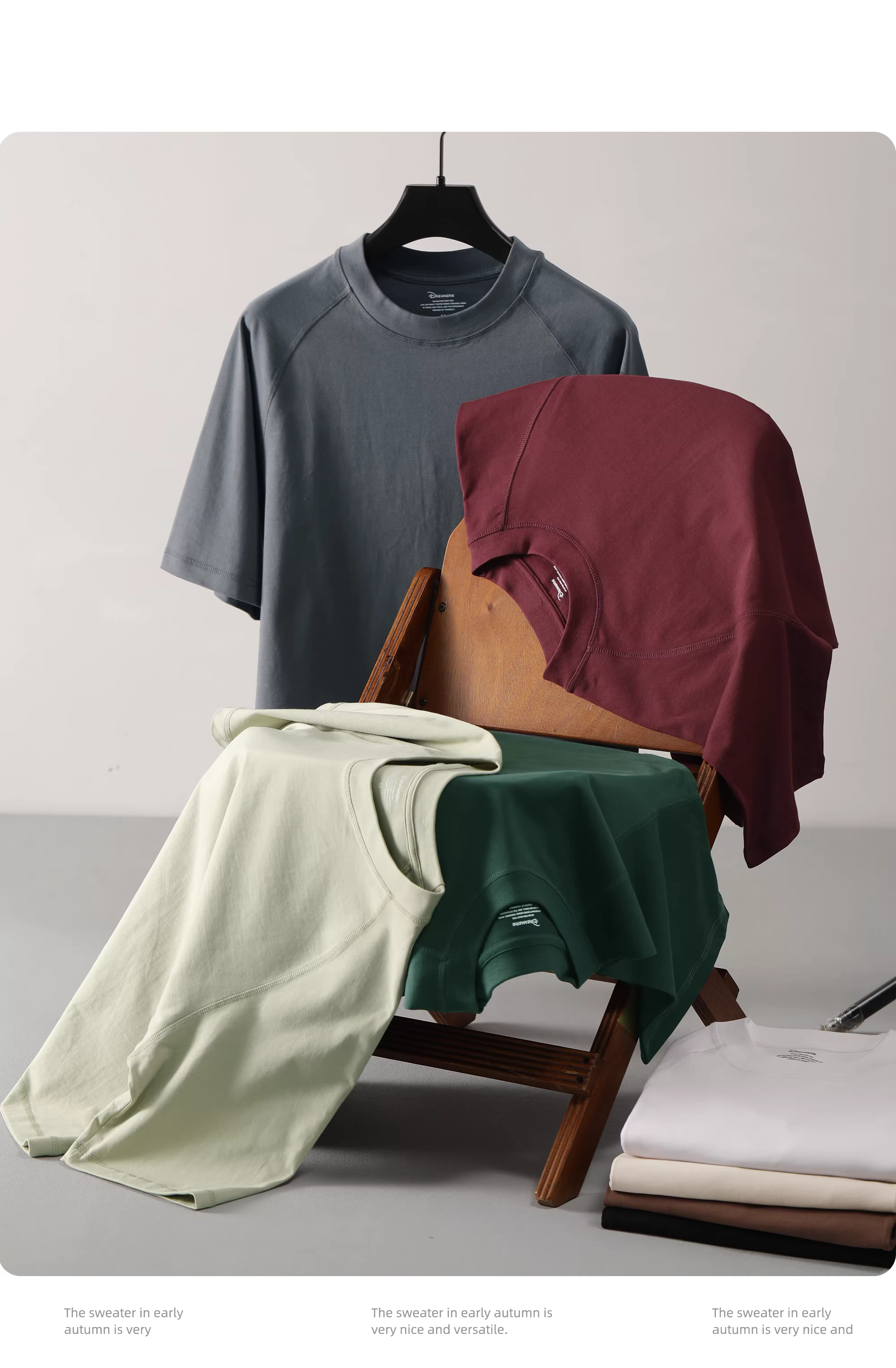 Áo thun JIEYI phong cách đơn giản, chất liệu cotton nguyên chất Tân Cương, unisex, màu trơn, chất dày 300G