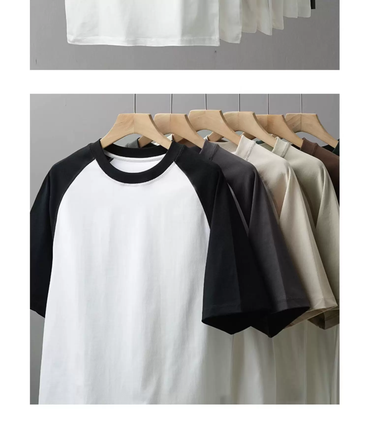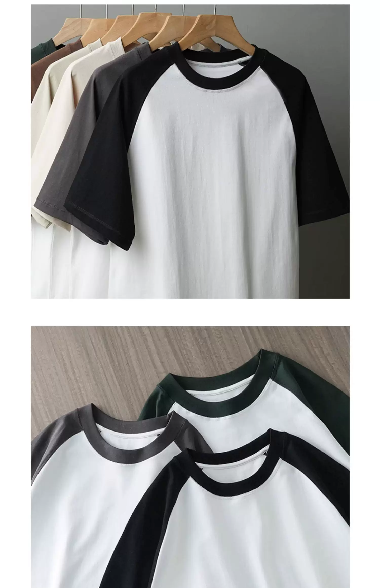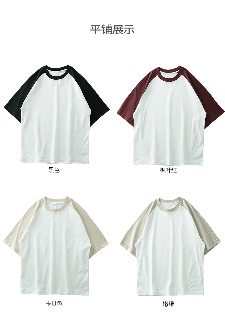 - Áo thun nam 300G chất liệu dày dặn, tay ngắn, kiểu mới hè 2025, tay raglan phối màu, dáng rộng, chất liệu cotton nguyên chất.