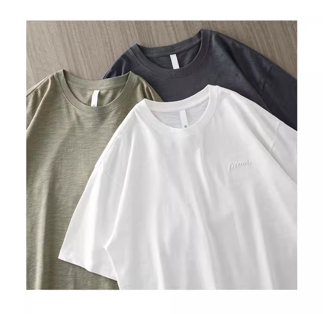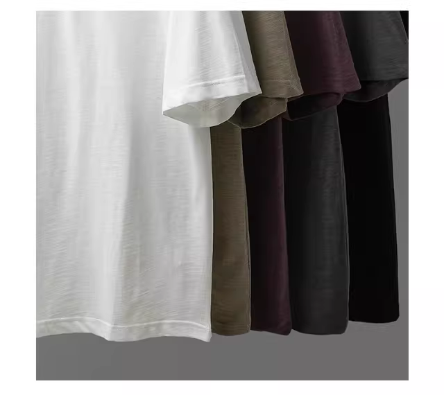 - Áo thun nam chất liệu cotton tre dày dặn, kiểu mới hè 2025, 100% cotton, thoáng khí, cổ tròn, dáng rộng, màu trơn, thêu họa tiết.