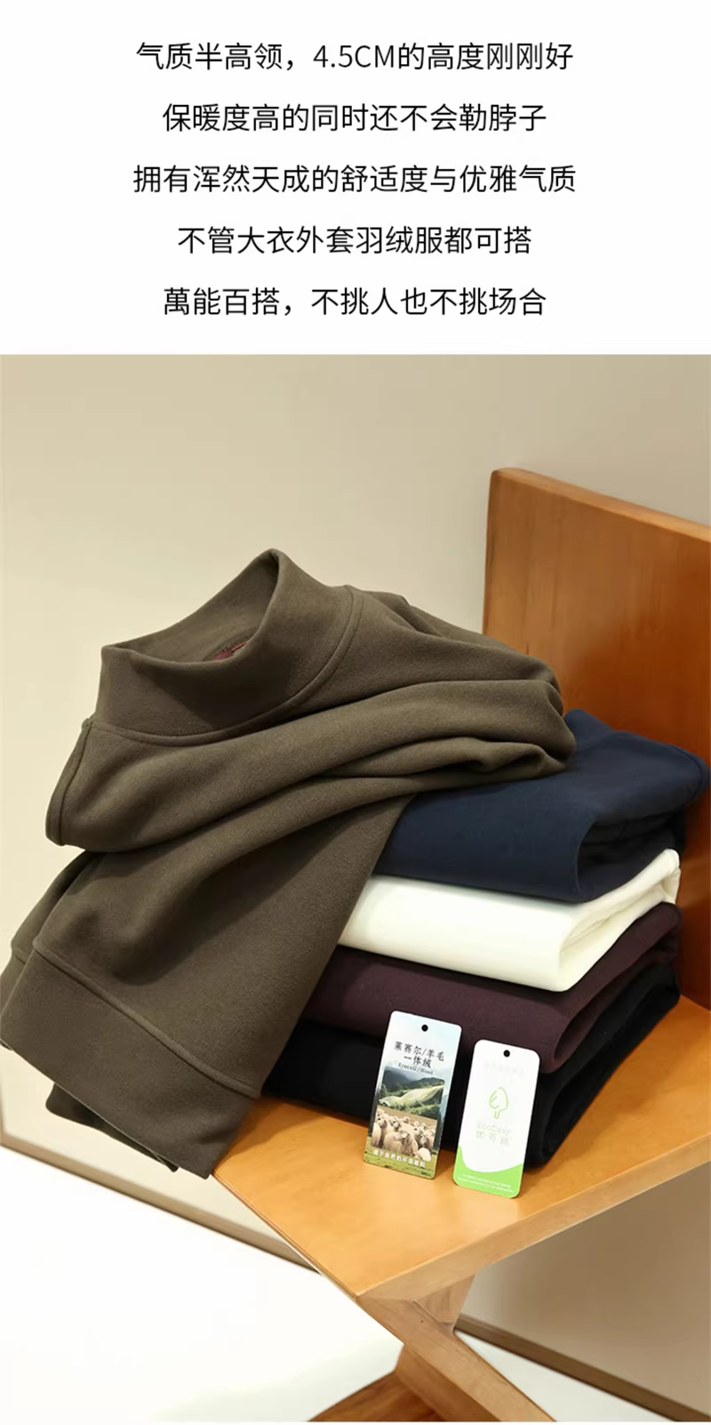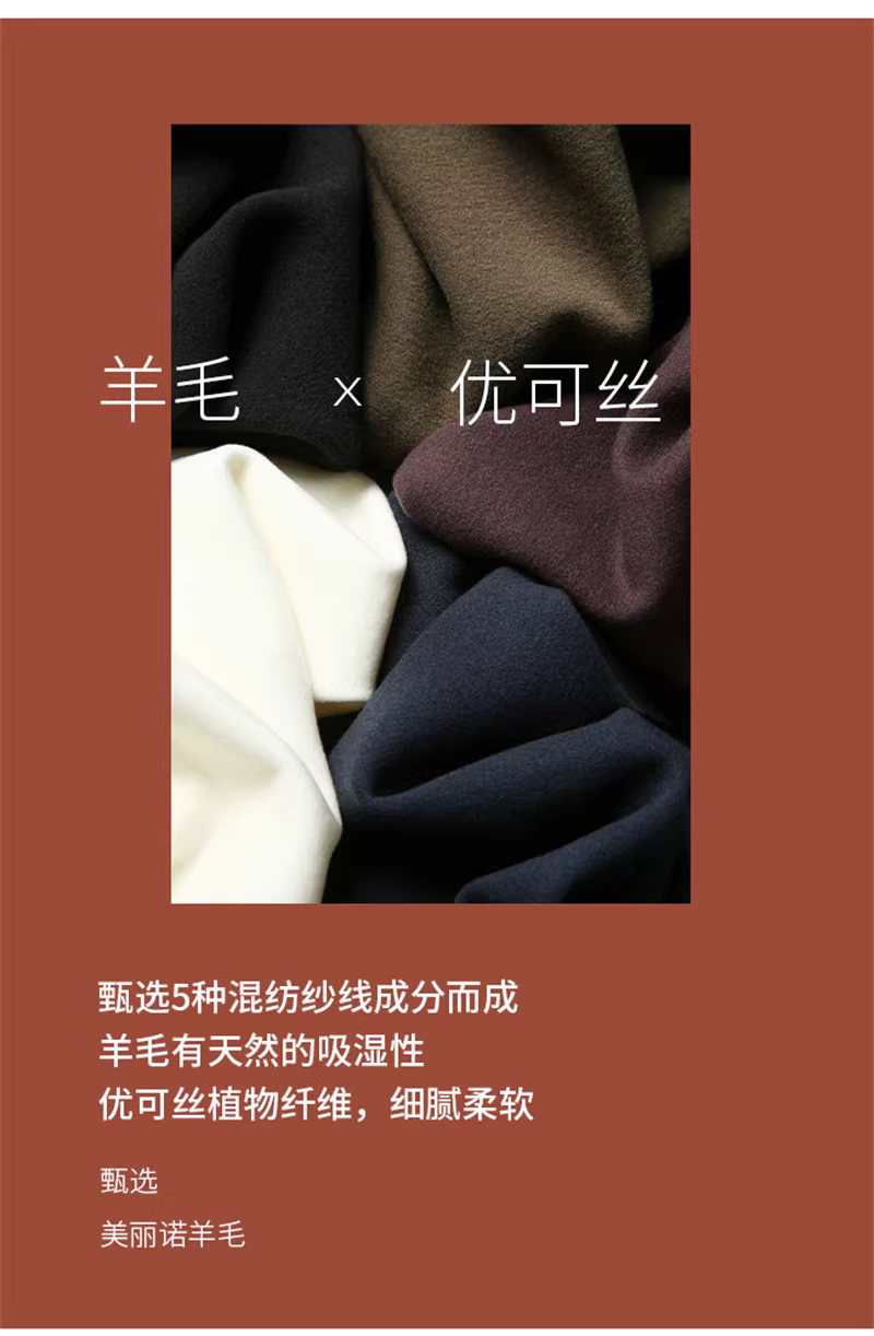 里层:43%再生纤维素纤维+37.9%腈纶+13.1%氨纶+6%绵羊毛
