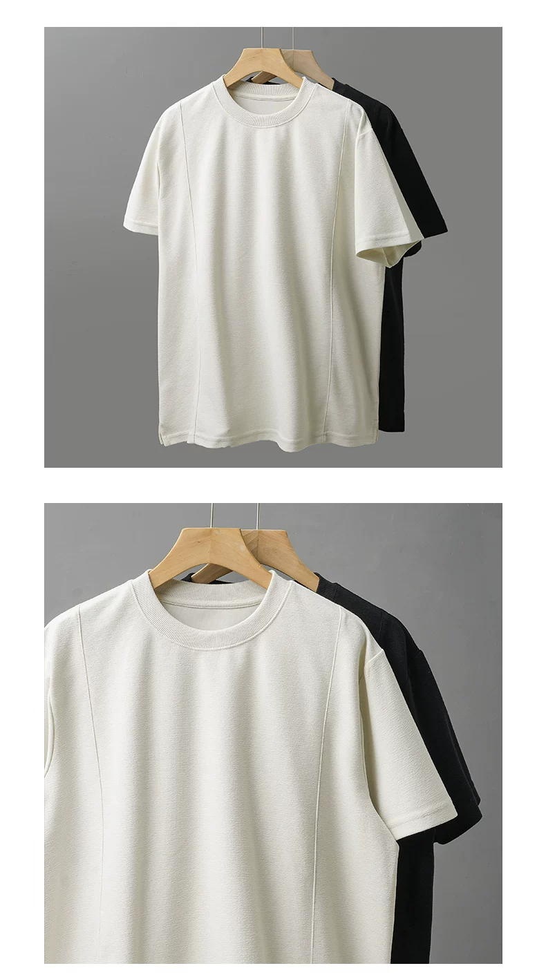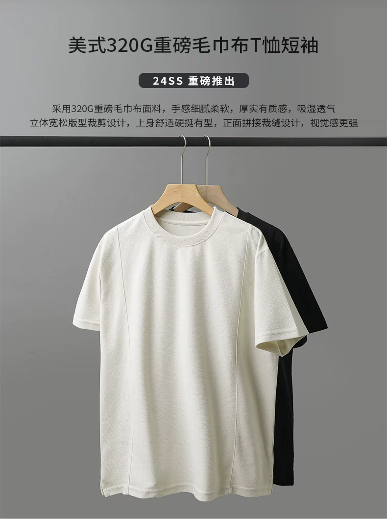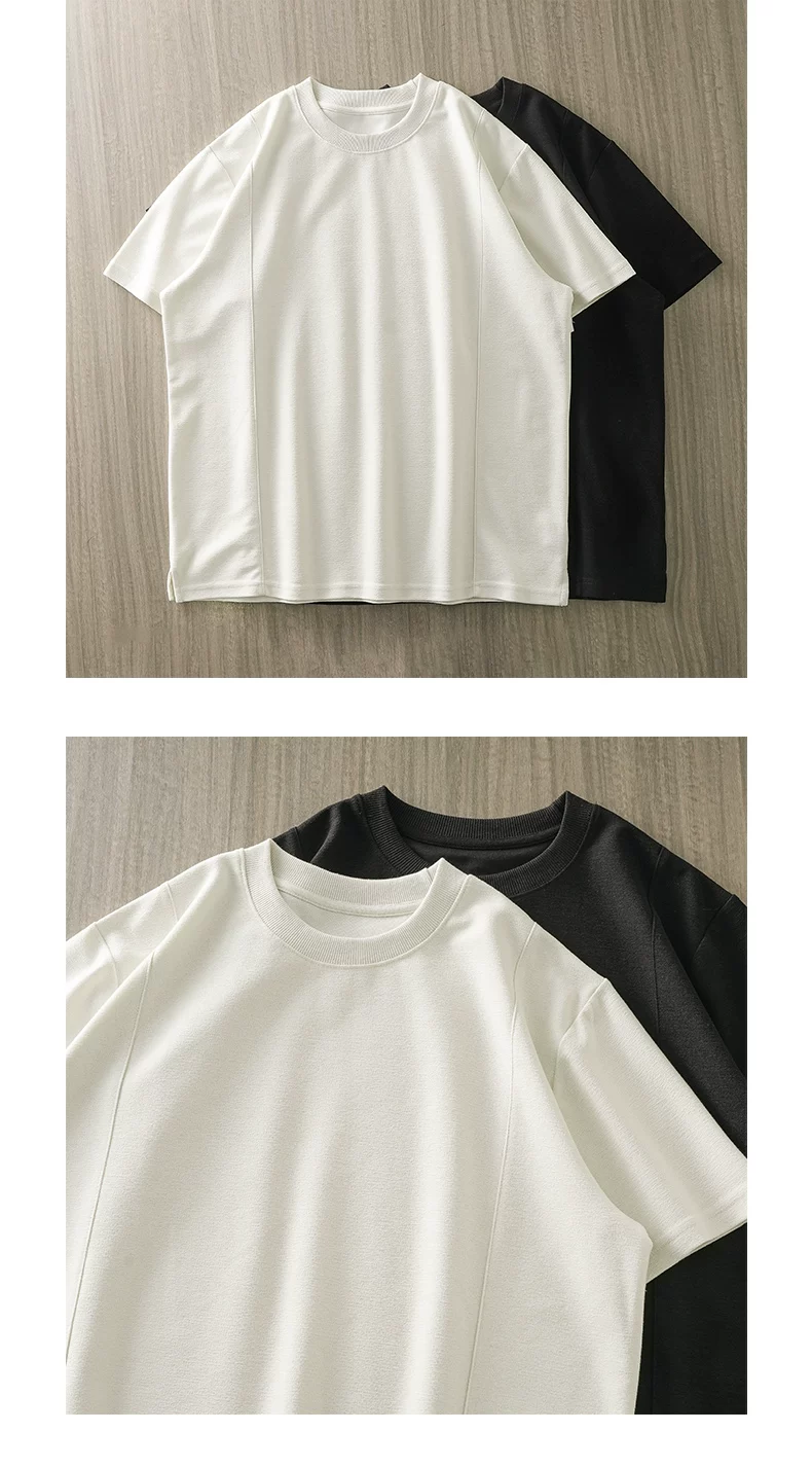- Áo thun nam chất liệu vải bông mềm 320G, tay ngắn, kiểu dáng sang trọng, cổ tròn, phong cách Mỹ, màu trơn, dáng rộng, mùa hè
