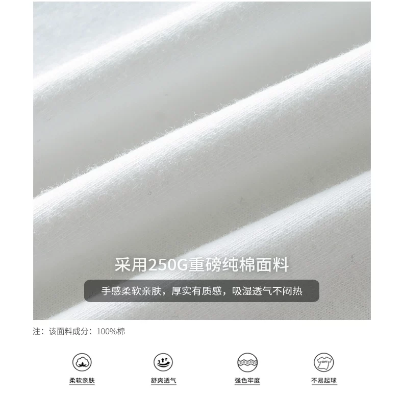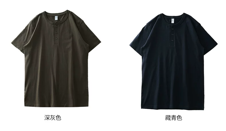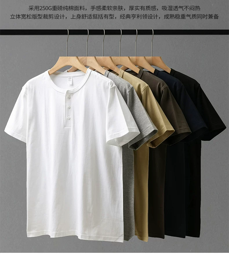 Áo thun nam cổ henley tay ngắn chất liệu cotton dày 260g, kiểu dáng vintage mạnh mẽ, màu trắng tinh khiết, mùa hè.