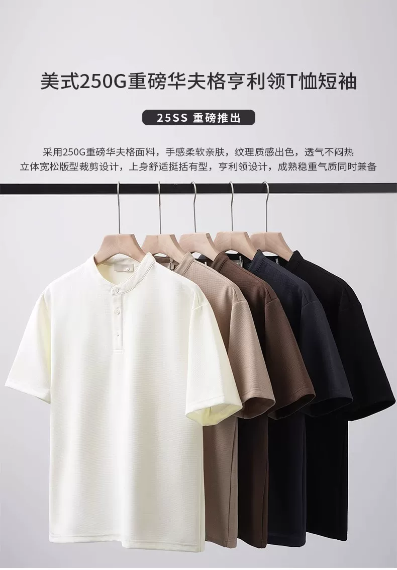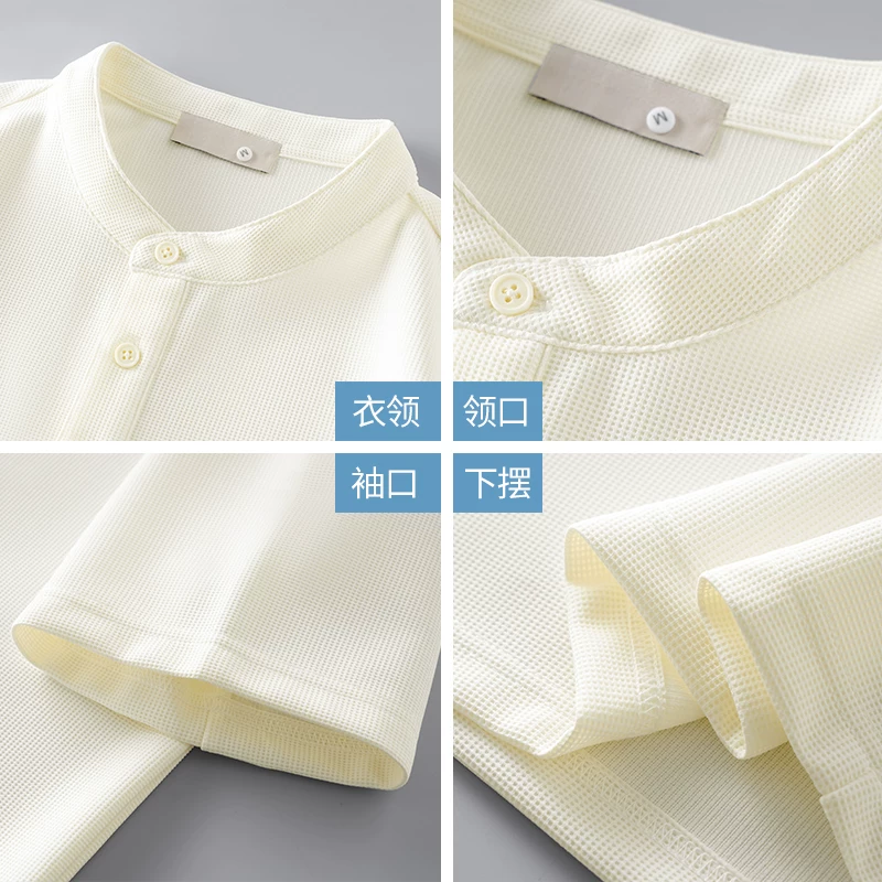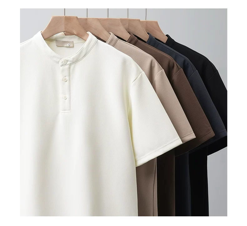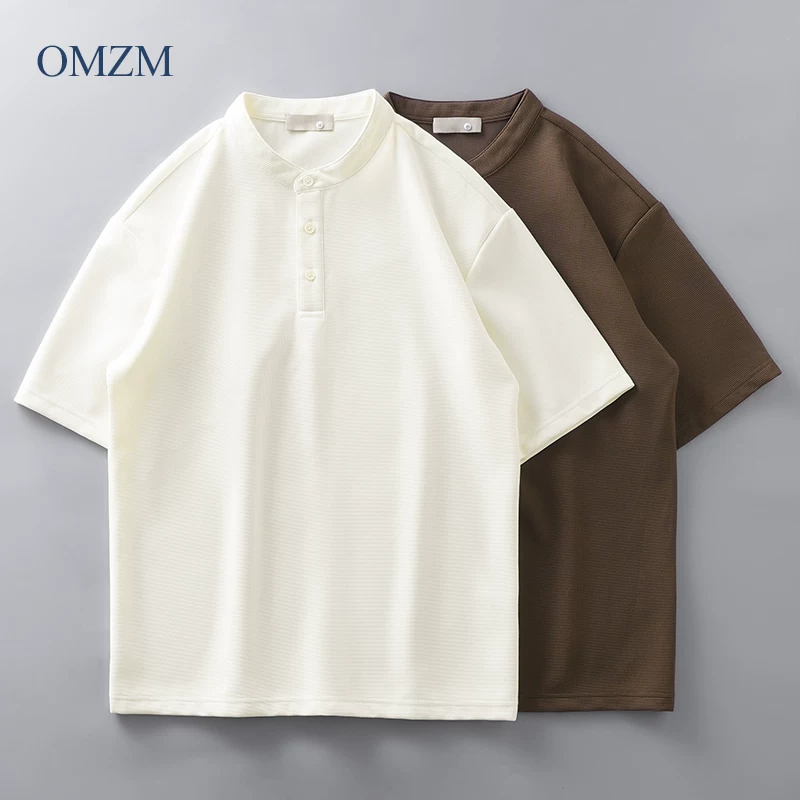 - Áo thun nam cổ henley tay ngắn OMZM250G, chất liệu vải waffle thoáng khí mùa hè, kiểu dáng Mỹ, màu trơn.