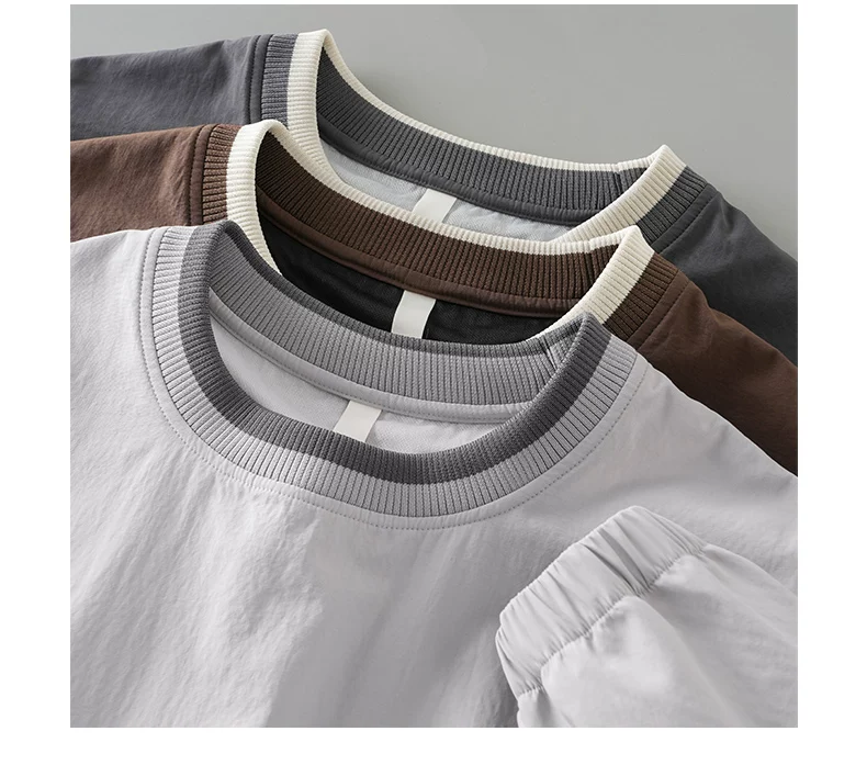 - Áo thun nam cổ tròn chống nước kiểu Mỹ, màu phối mới xuân 2025, áo lót thể thao nhanh khô, áo khoác dài tay