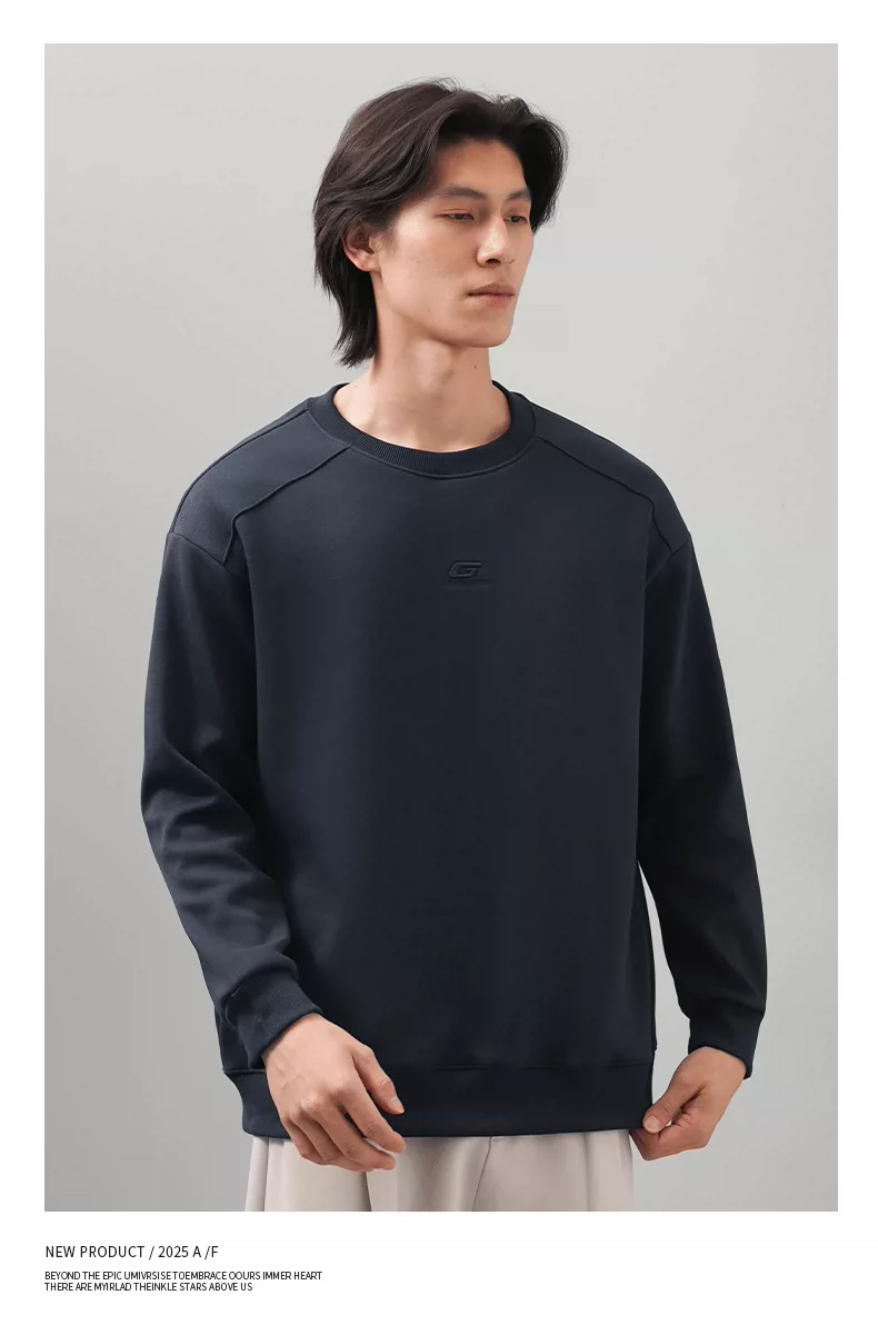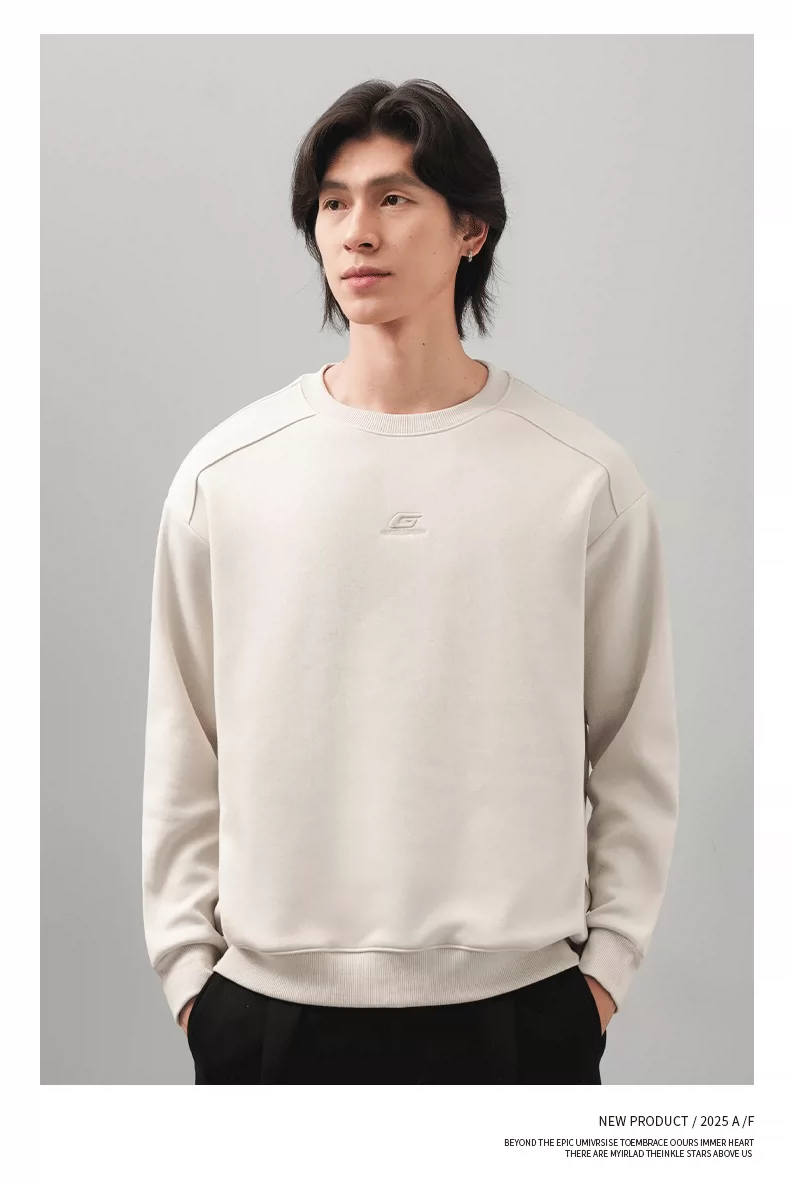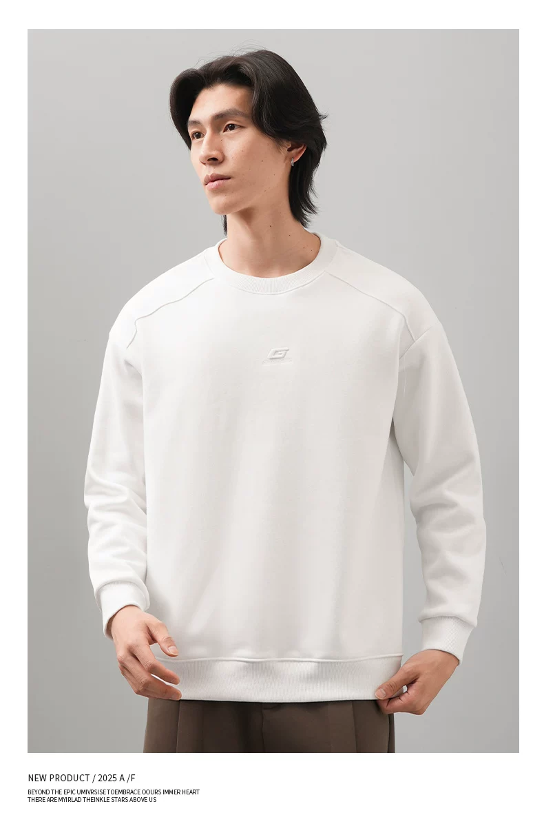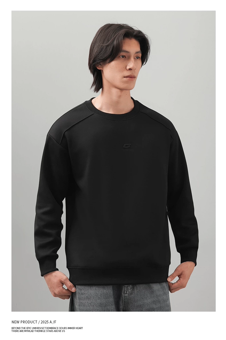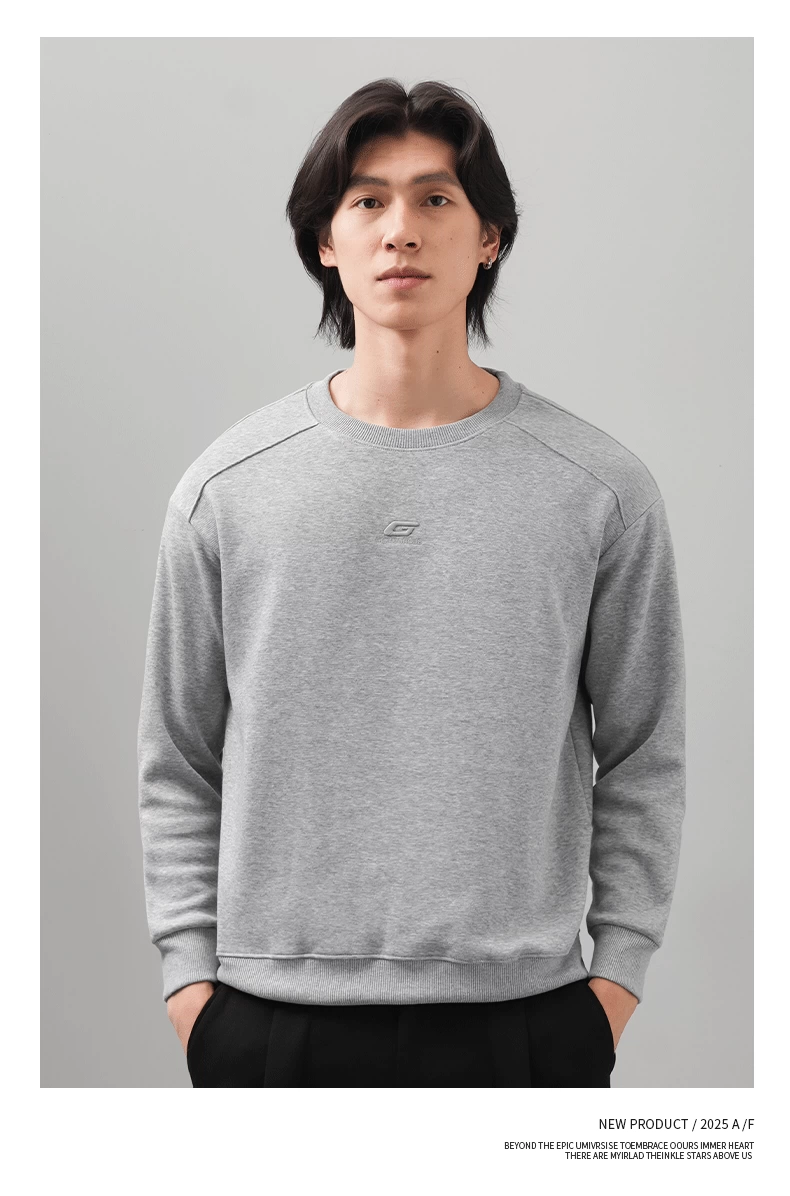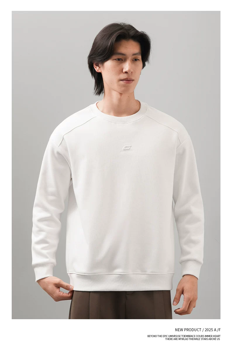 Áo thun nam cổ tròn thêu OMZM thu đông 2025, màu trơn đơn giản, kiểu dáng rộng rãi, tay dài, mặc trong, phong cách thường ngày
