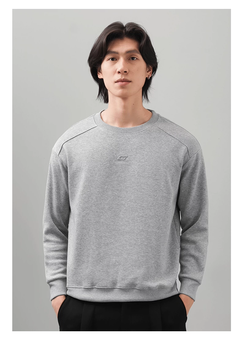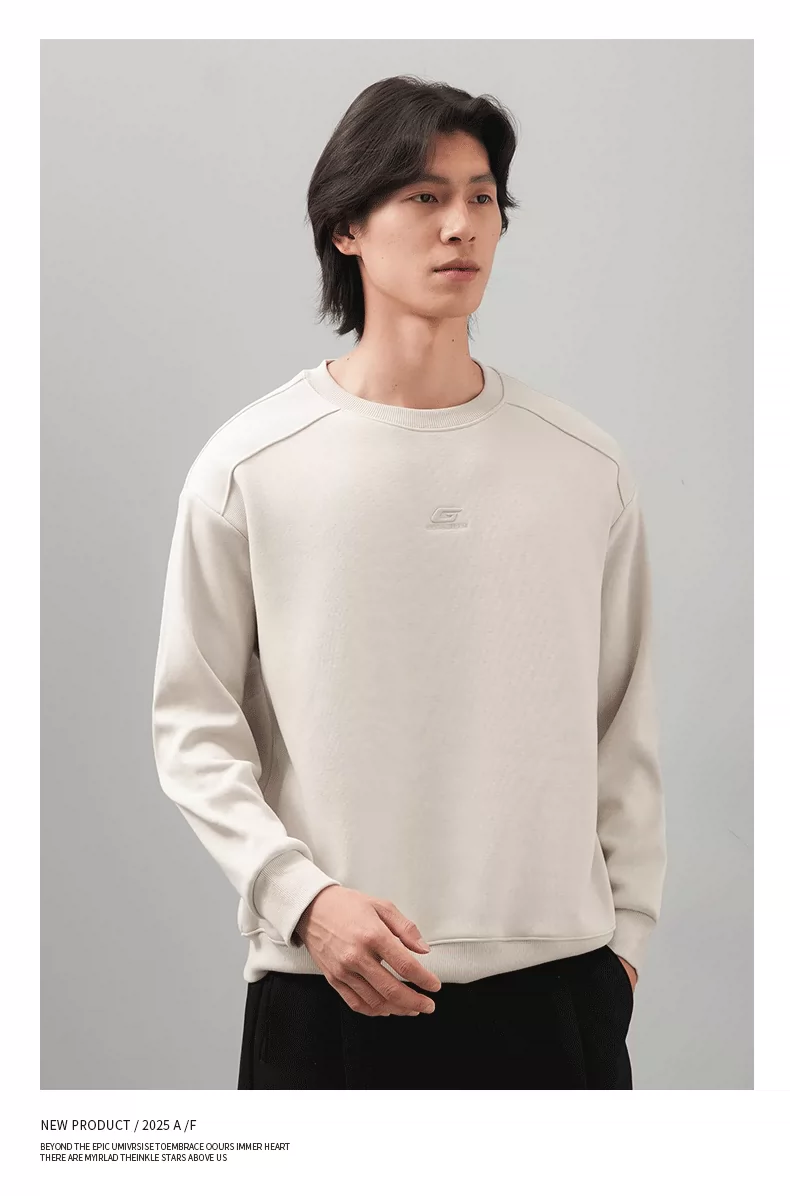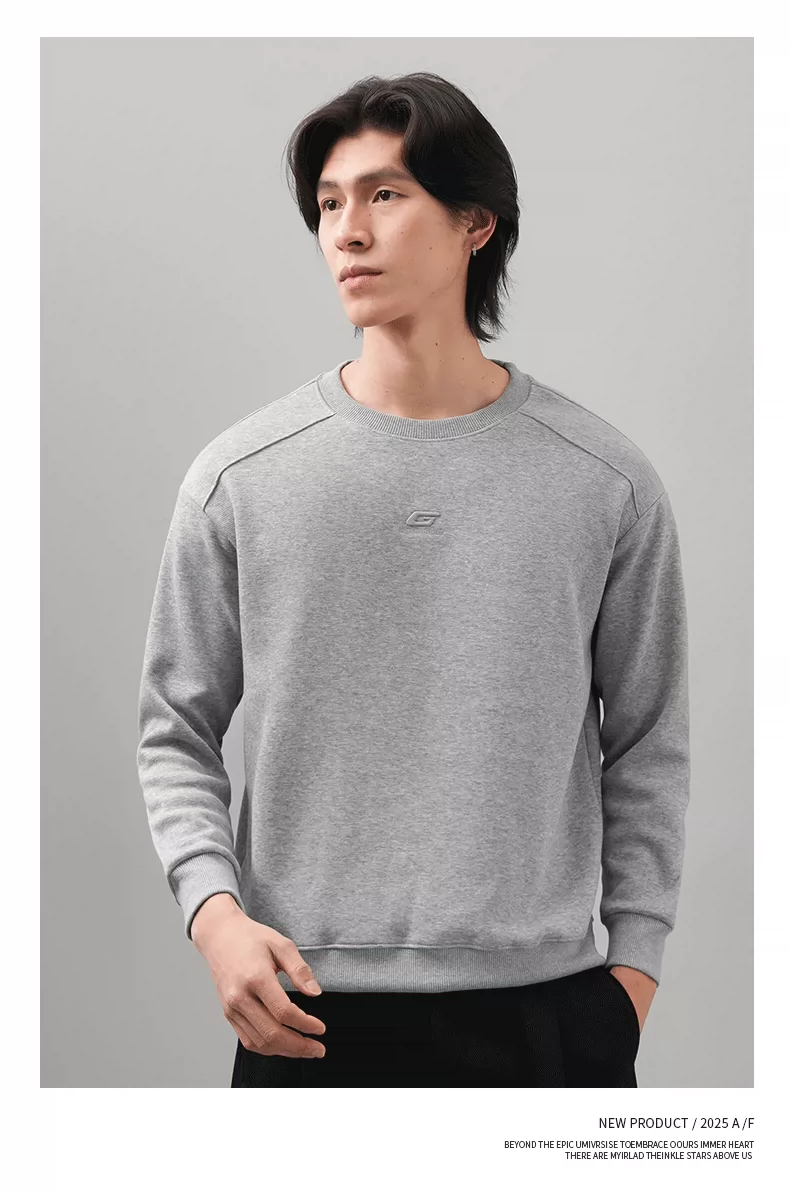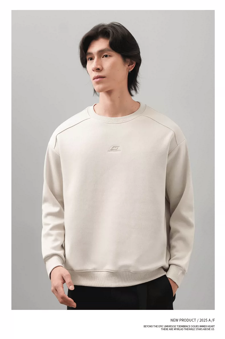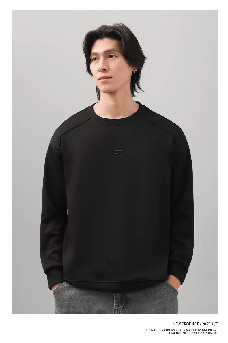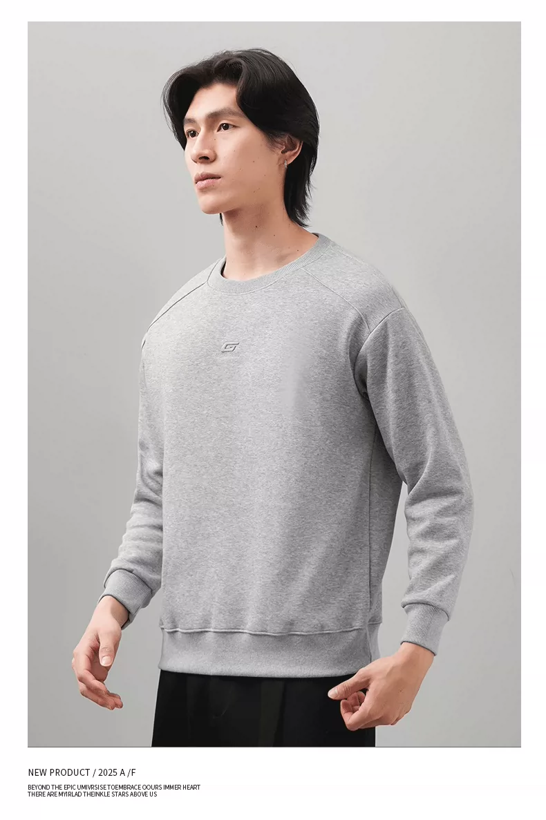 Áo thun nam cổ tròn thêu OMZM thu đông 2025, màu trơn đơn giản, kiểu dáng rộng rãi, tay dài, mặc trong, phong cách thường ngày